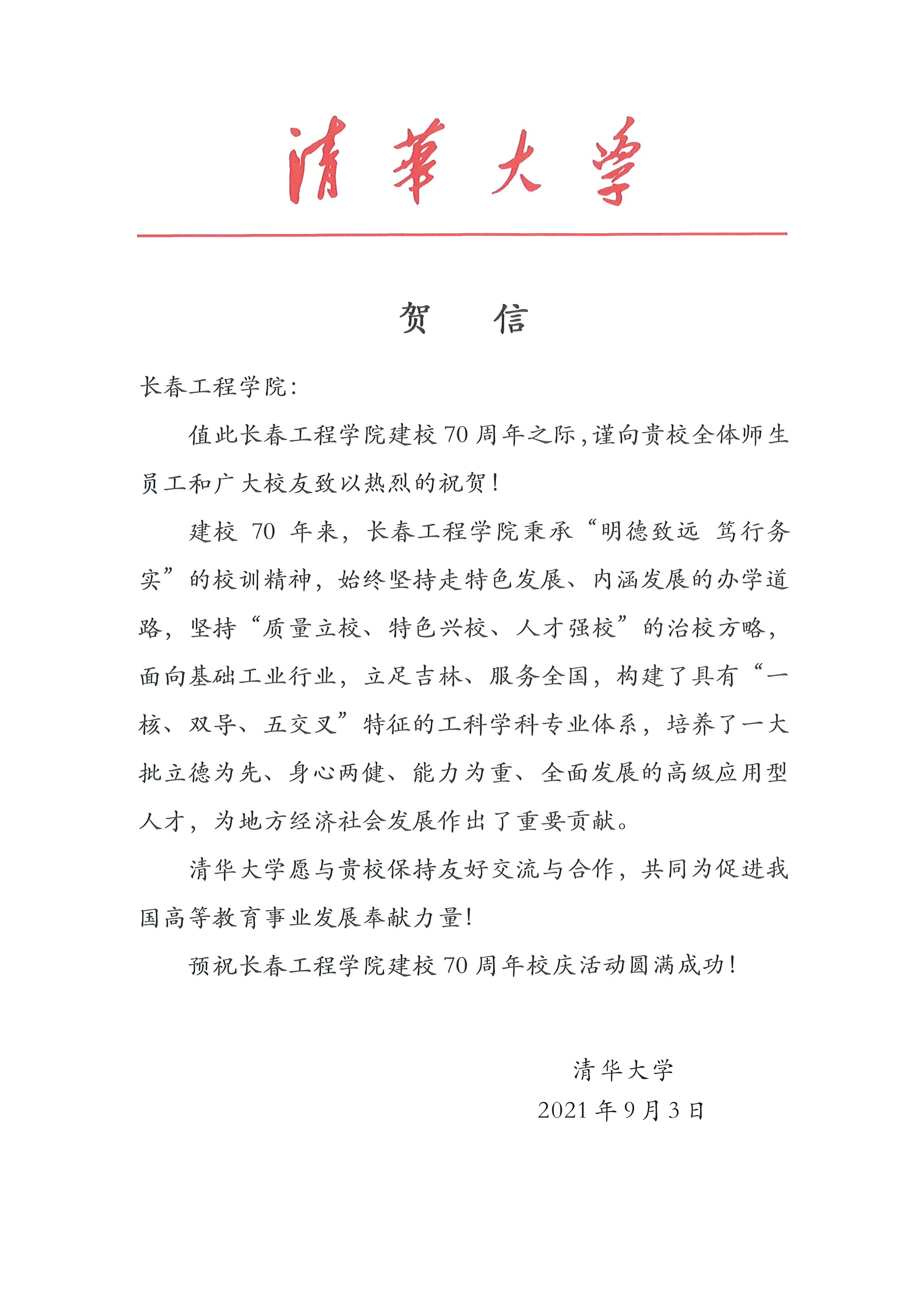 欣闻我校70周年华诞,清华大学等百余所国内外高校纷纷向心博在线平台(中国)官网发来贺信、贺词。字里行间,洋溢着对心博在线平台(中国)官网建校70周年的热烈祝贺及美好祝愿。