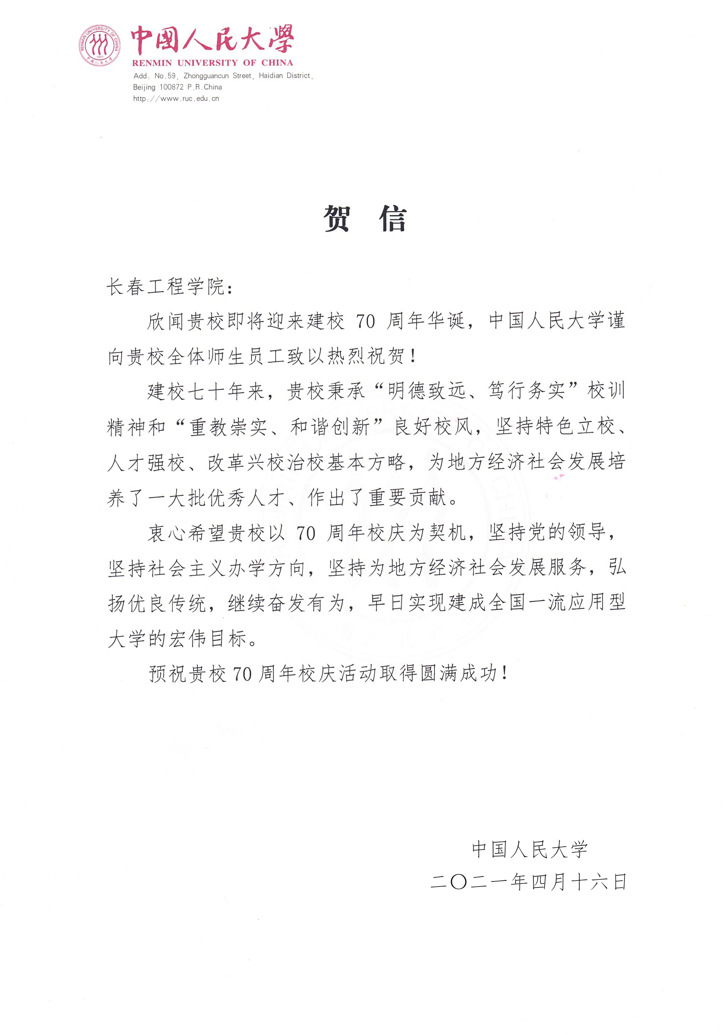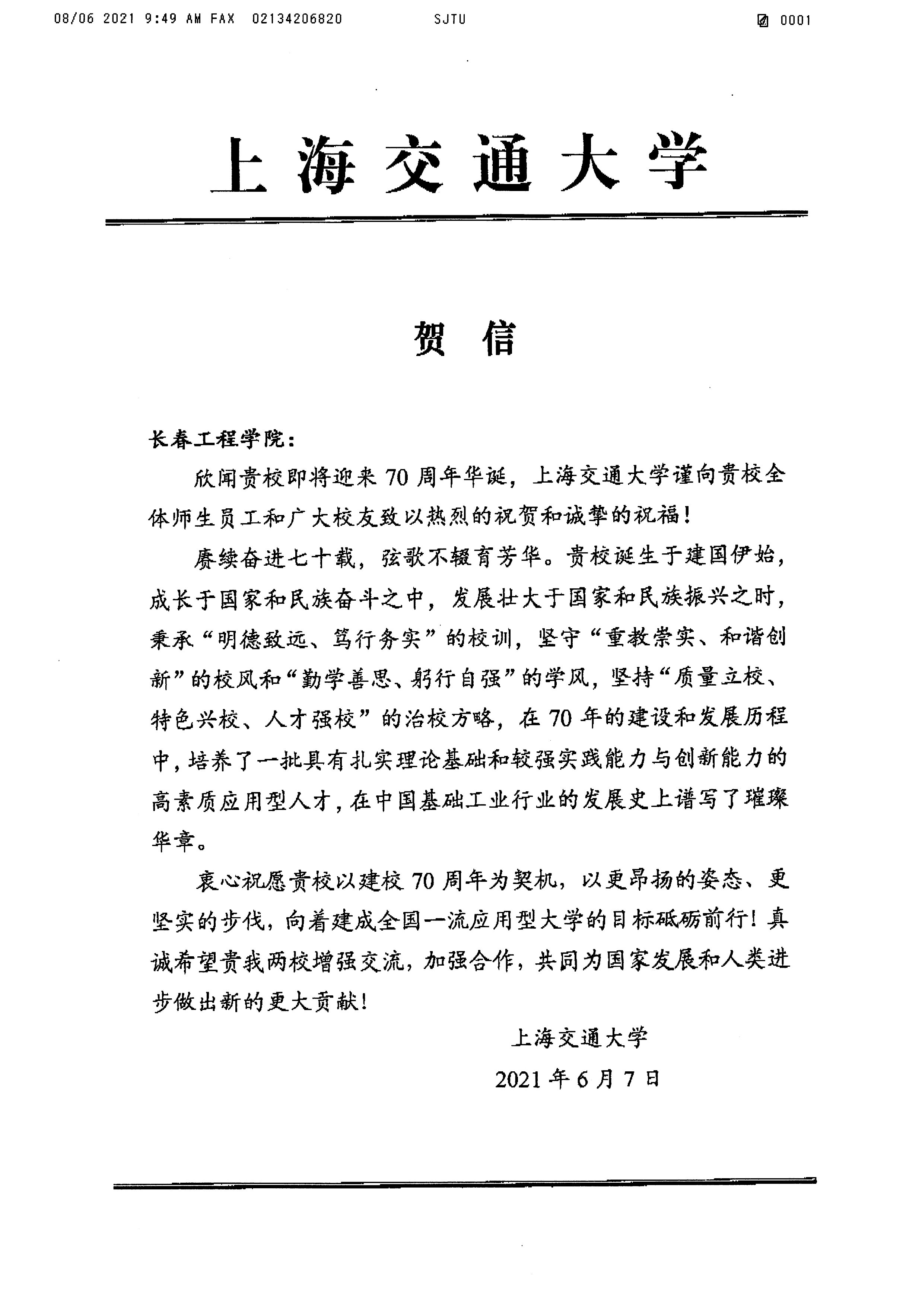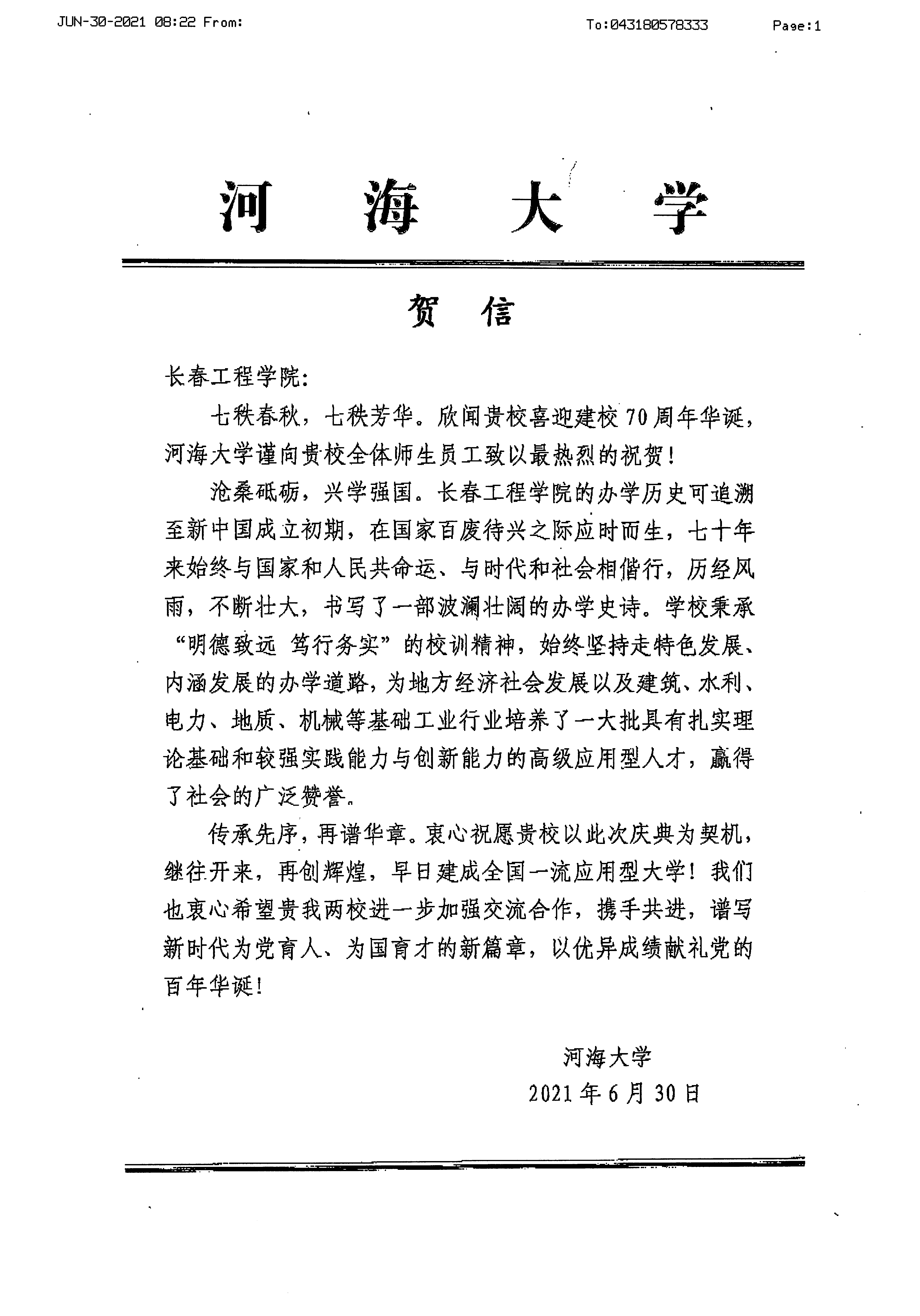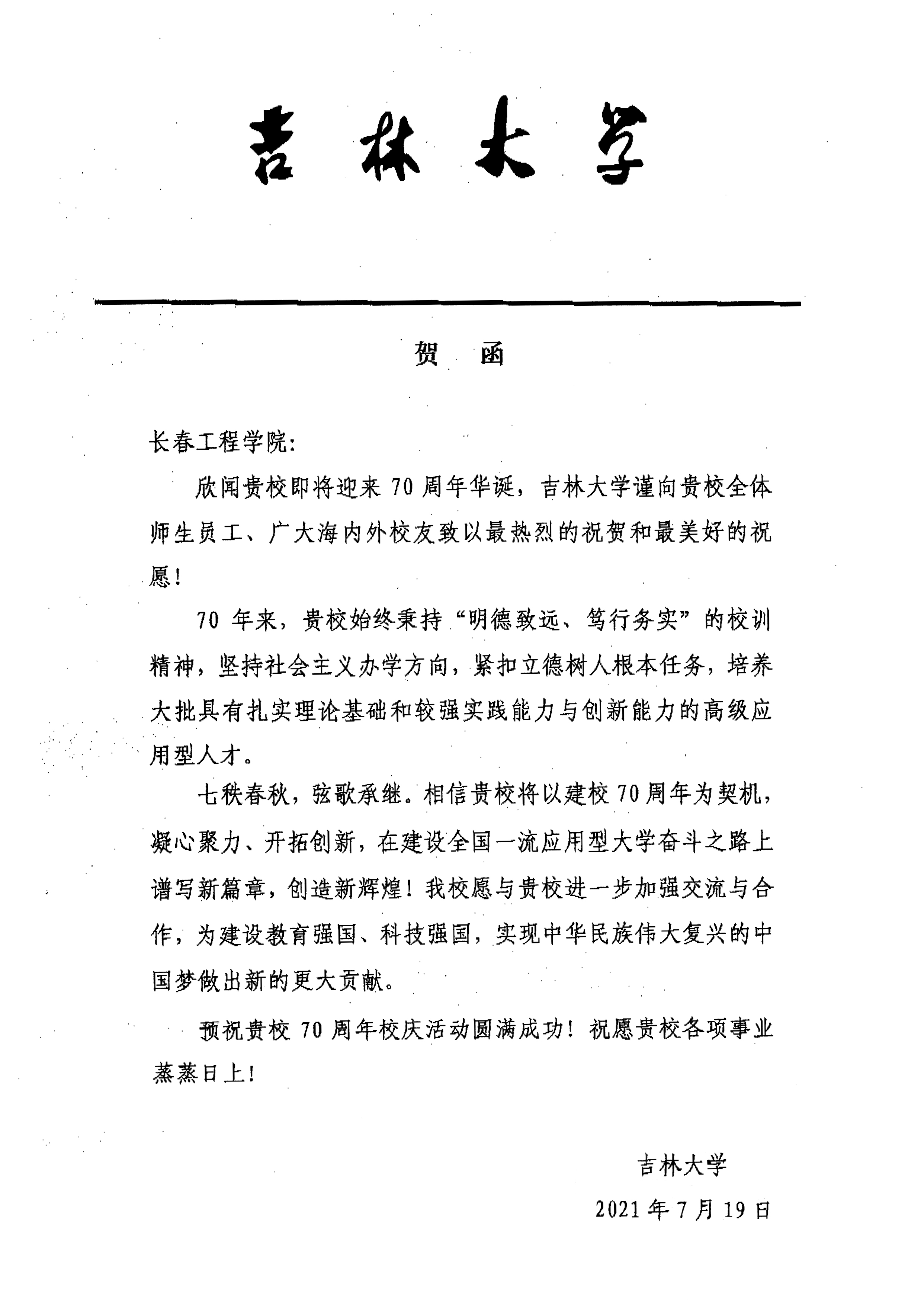 国内外多所高校发贺信祝贺心博在线平台(中国)官网建校70周年