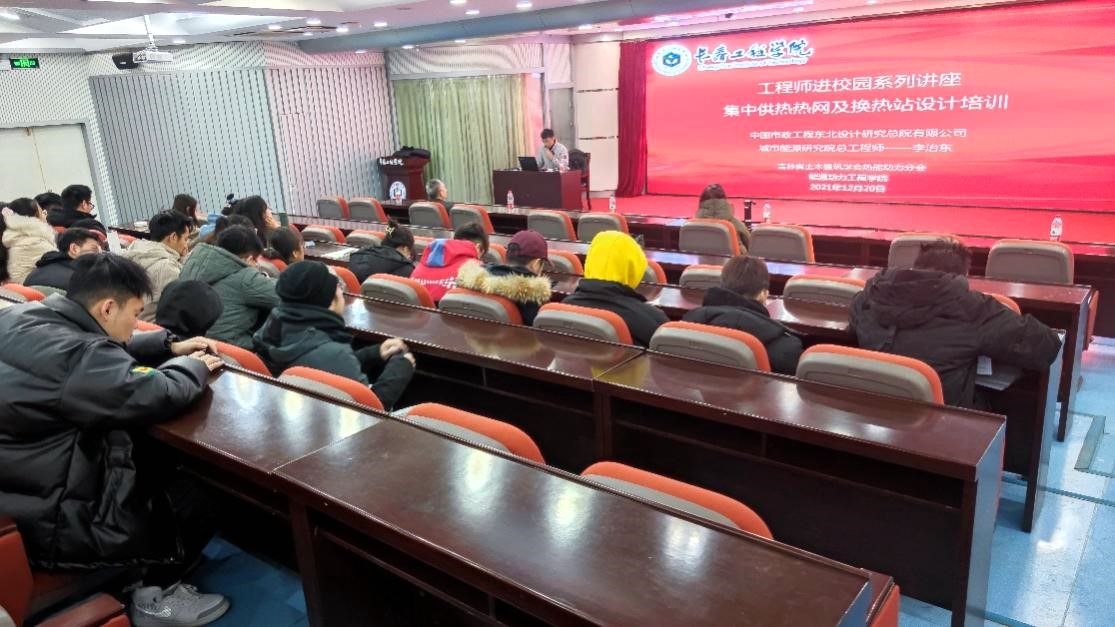 本次活动持续3天,邀请到了吉林省建苑设计集团有限公司、中国市政工程东北设计研究总院有限公司和吉林省石油化工设计研究院5位专家,主要围绕建筑暖通设计、建筑给排水设计、集中供热热网及换热站设计、城镇集中供热区域热水锅炉房设计及专业软件的使用注意事项等内容进行。为了扩大活动的受益面,活动采取线下+线上同步进行的方式,线下参加活动的主要是建环18级、建环19级、热动18级和热动19级学生,受益师生1000多人次。