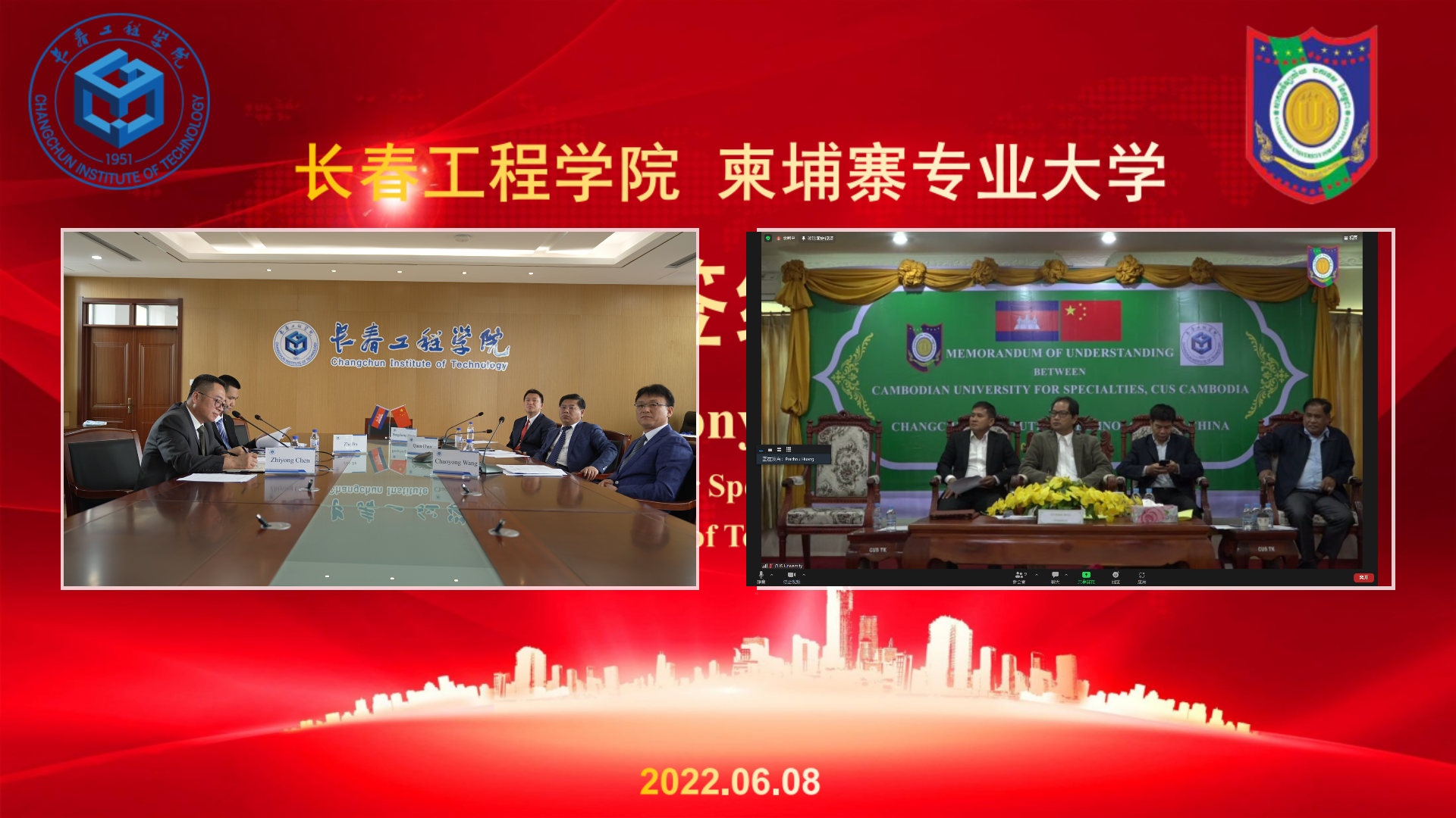 6月8日,我校与柬埔寨专业大学签署合作备忘录,就开展国际合作与交流事宜达成一致。签约仪式以视频会议的方式在我校和柬埔寨专业大学同步举行。