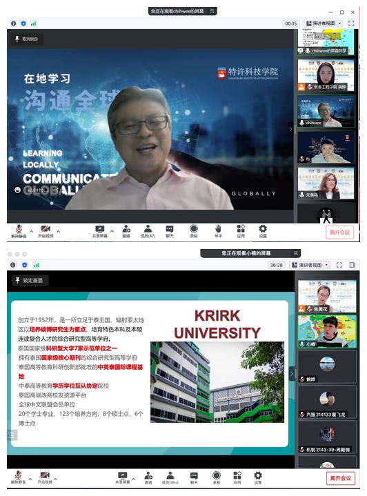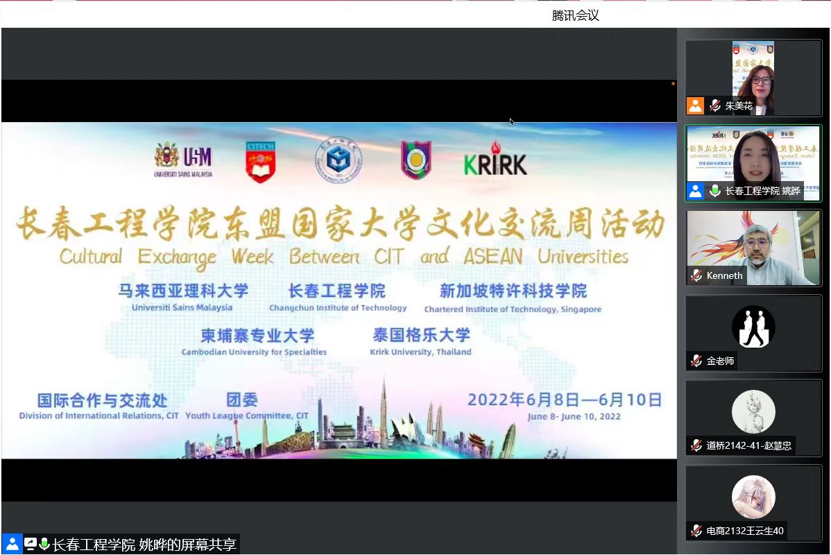 柬埔寨专业大学英语学院院长Chhorn Than博士、马来西亚理科大学中国中心负责人Kenneth Quah先生、新加坡特许科技学院高级讲师Siow Chih Wee先生、泰国格乐大心博在线平台(中国)官网长助理赵楠博士等四位老师,分别以“Introduction of CUS and Cambodia—来自文明古国柬埔寨”“马来西亚多元素文化与马来西亚理科大学介绍”“新加坡人文地理风貌及新加坡高校校园文化”“泰友好、泰享受之泰国文化及留学”为主题,以视频、讲解等多样的方式,面向全校学生介绍东盟国家及城市的地理、风俗、文化,展示了柬埔寨专业大学、马来西亚理科大学、新加坡特许科技学院、泰国格乐大学的魅力和故事,实现了“云访问、云介绍”,使同学们领略了独具特色的东南亚各国风情,增进了对东盟国家大学文化的了解。近700名学生线上参加了此次活动。