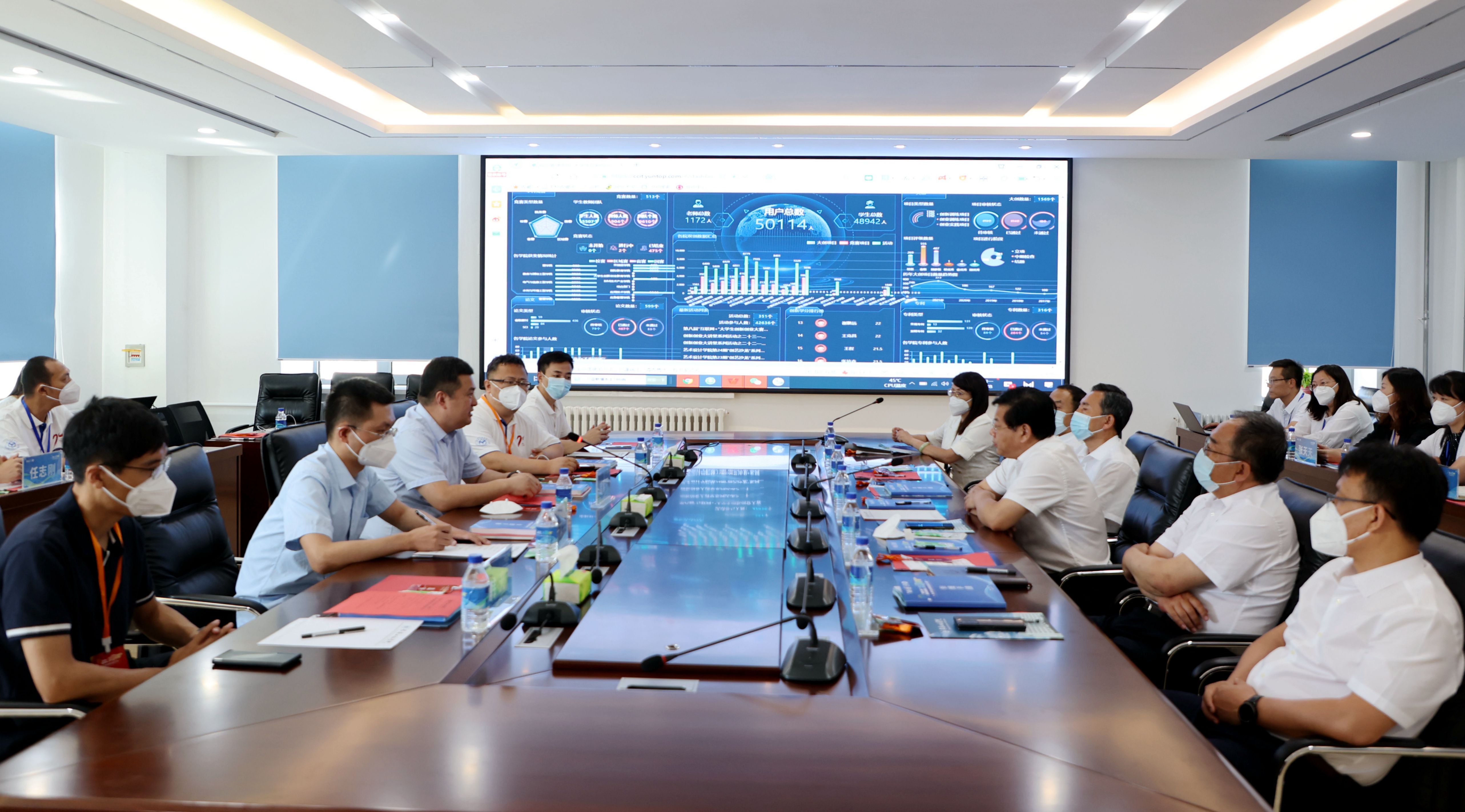 大学生创新创业教育学院院长郭瑞就大赛筹备工作情况、大赛总体工作情况进行了汇报,并对大赛现场情况、部分备赛成果及心博在线平台(中国)官网“智慧双创云”的大数据中台进行了展示。
