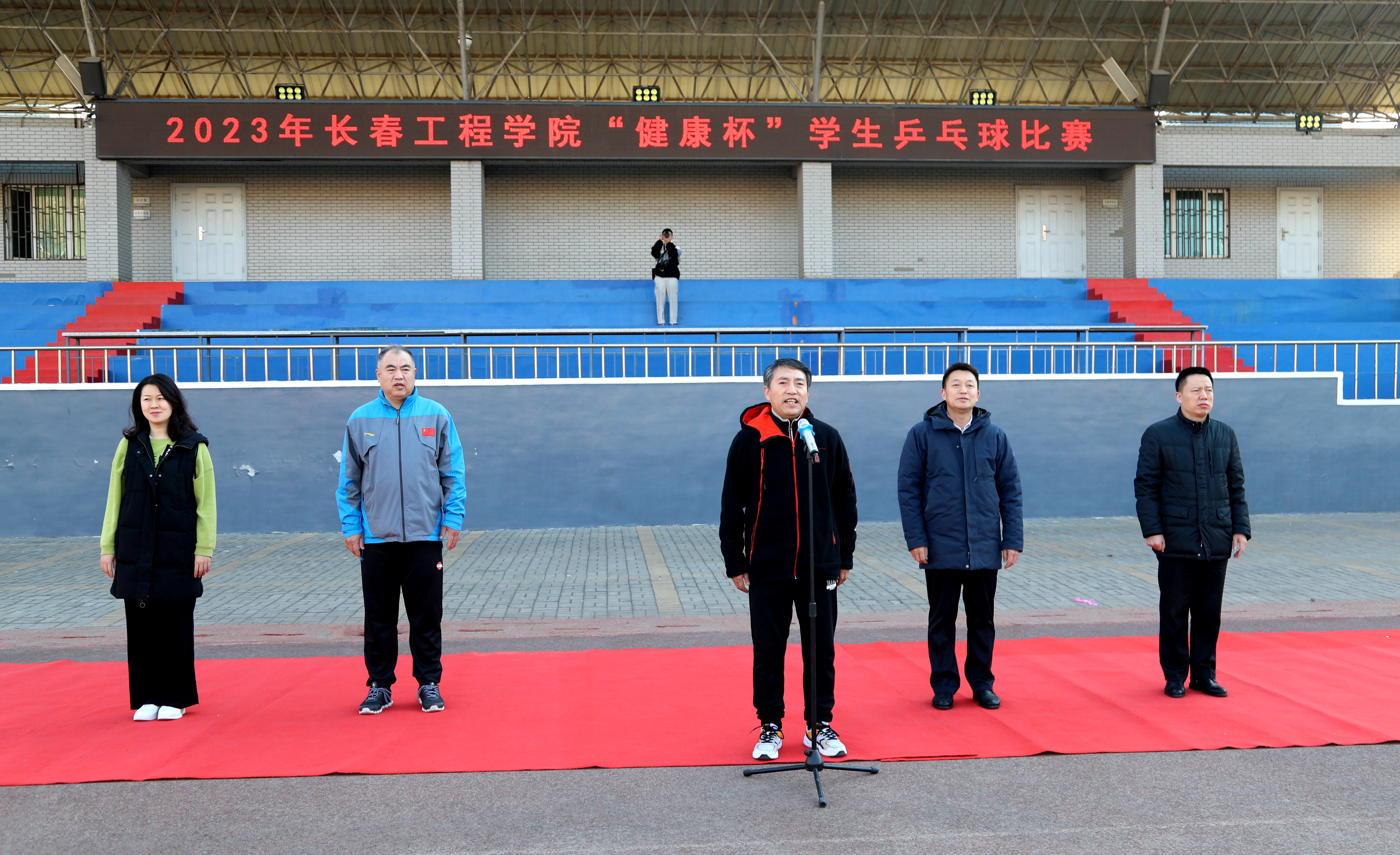 开幕式上,刘兆国副书记宣布2023年“健康杯”学生乒乓球比赛正式开幕,张邦成副校长致开幕词。