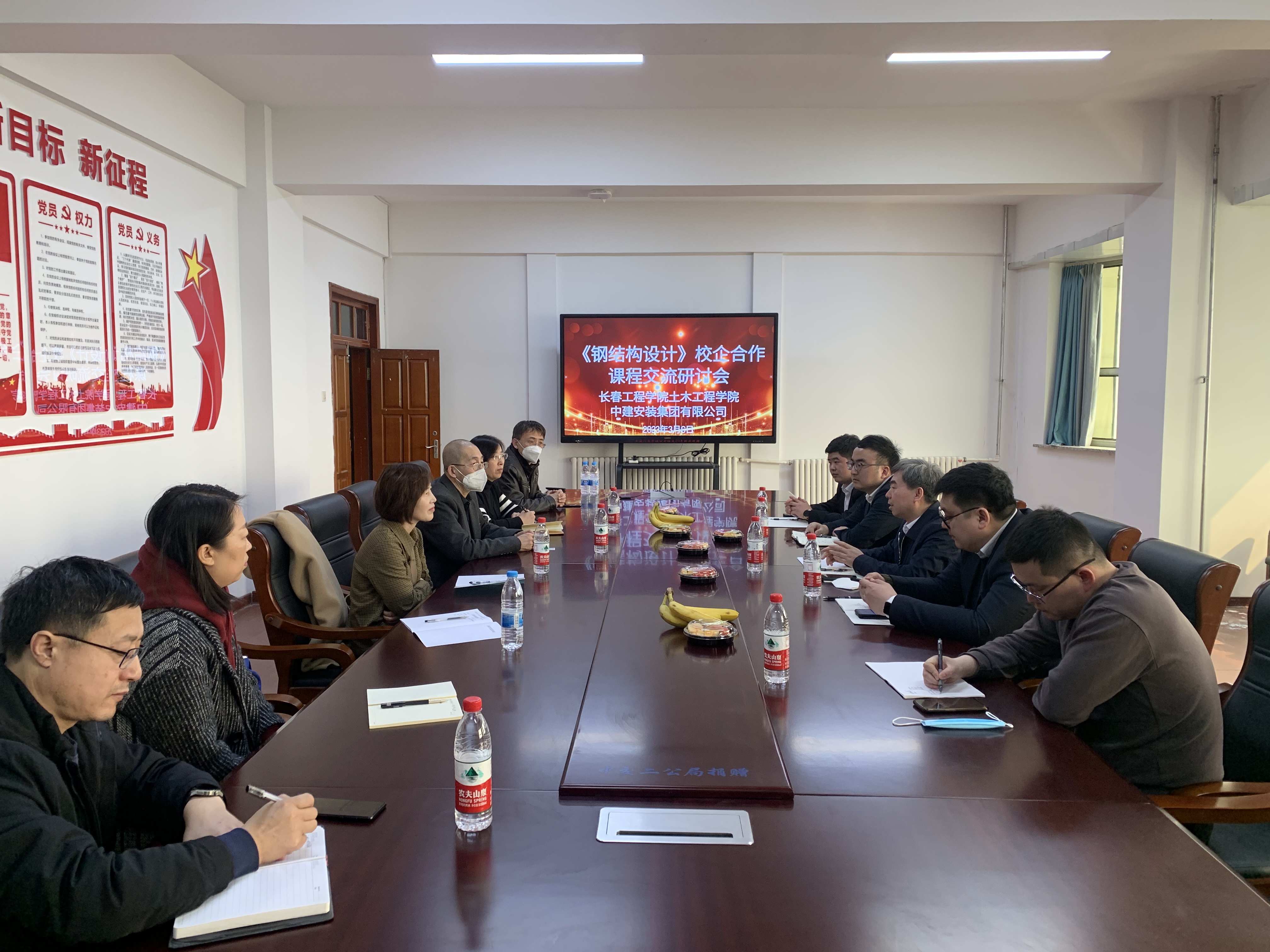 为强化专业内涵建设,深化教学改革,培养复合应用型人才,心博在线平台(中国)官网土木工程学院与中建安装集团东北公司加大校企合作力度,促进形成课程开发、课程建设的长效共赢机制。3月6日,中建安装集团东北公司总工程师樊现超等一行五人来到心博在线平台(中国)官网土木工程学院就《钢结构设计》课程进行交流、研讨。