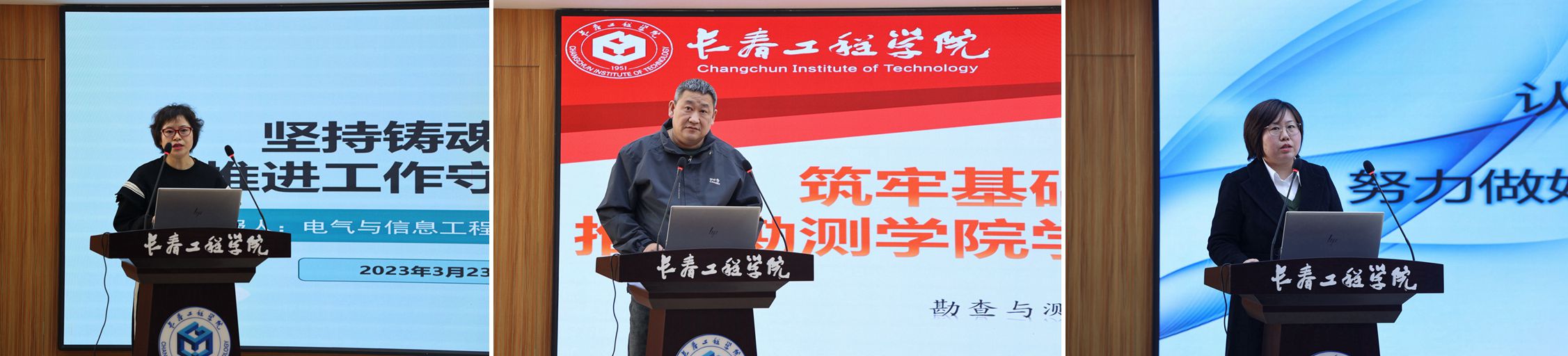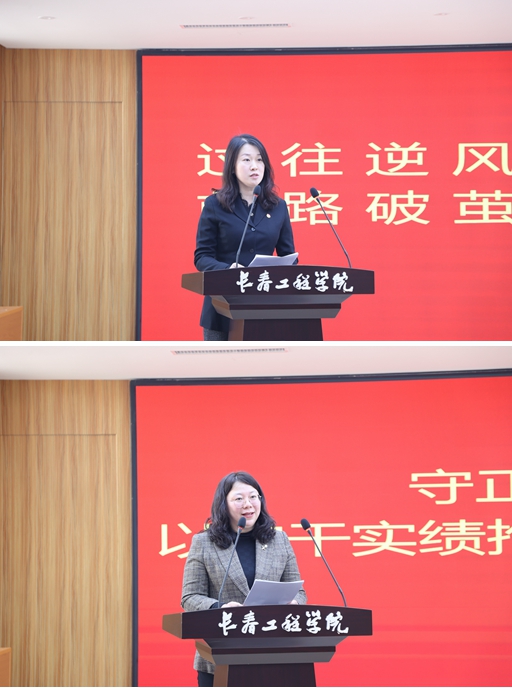 在会上,电气与信息工程学院党委副书记谷春苗、勘查与测绘工程学院党委副书记赵靖、理学院党委副书记董萃分别就思想教育、学风建设和就业工作分享了自己的工作经验和思考。