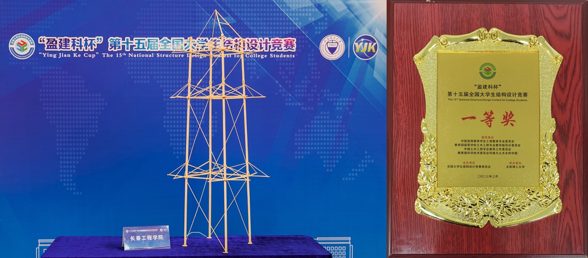 3月22日-26日,第十五届全国大学生结构设计竞赛总决赛在太原理工大学隆重举行,由我校土木工程学院智造2041班李帅奇、焦俊、黄昊组成的代表队在指导教师倪红光、温泳的倾力指导下,以稳定的出色发挥,凭借模型自重158克、加荷重量45公斤的满载成绩,斩获一等奖。这是我校参加全国大学生结构设计竞赛历史上首获一等奖,也是吉林省高校参赛历史上首获一等奖,实现了零的突破。