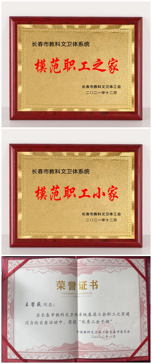近日,我校工会喜获长春市教科文卫体系统“模范职工之家”荣誉称号,电气与信息工程学院分工会获得“模范职工小家”荣誉称号,校工会王馨苑同志被评为“优秀工会工作者”。