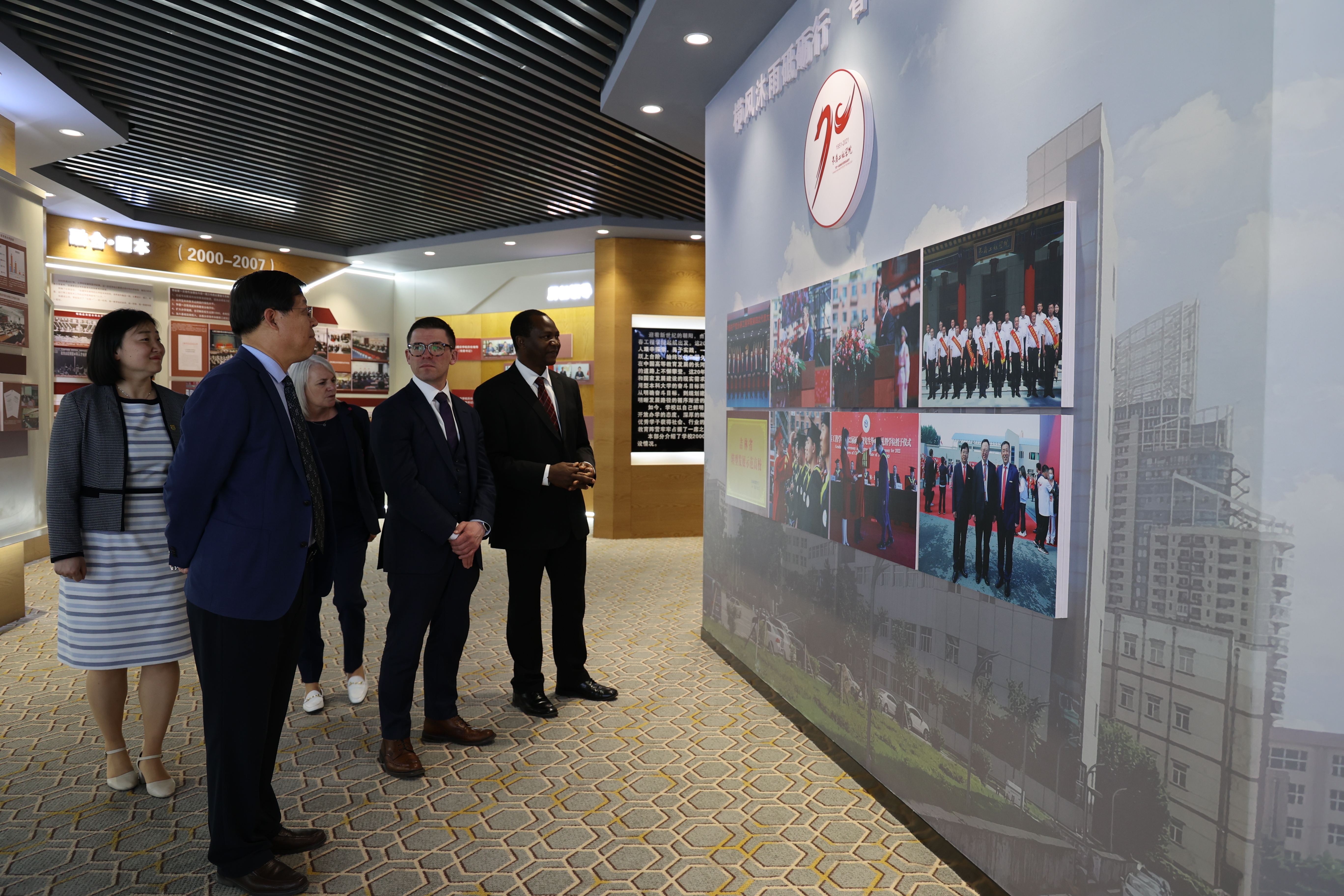 访问期间,代表团参观了吉林省水利电力工程物理级仿真与安全科技创新中心、土木工程学院结构实验室、校史馆及两校共建的英语学习中心。