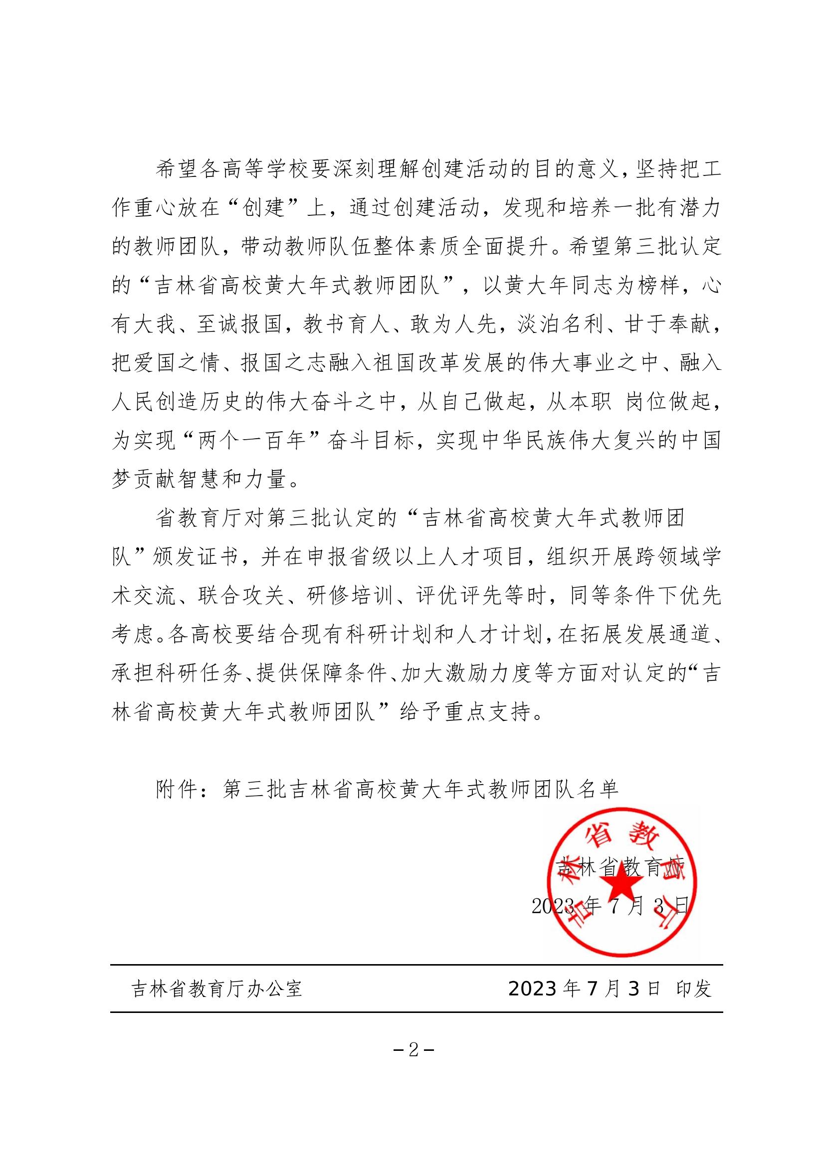 近日,吉林省教育厅开展第三批吉林省高校黄大年式教师团队创建活动,我校原副校长、土木工程学院窦立军教授负责的“土木工程教师团队”获批为“吉林省第三批高校黄大年式教师团队”。
