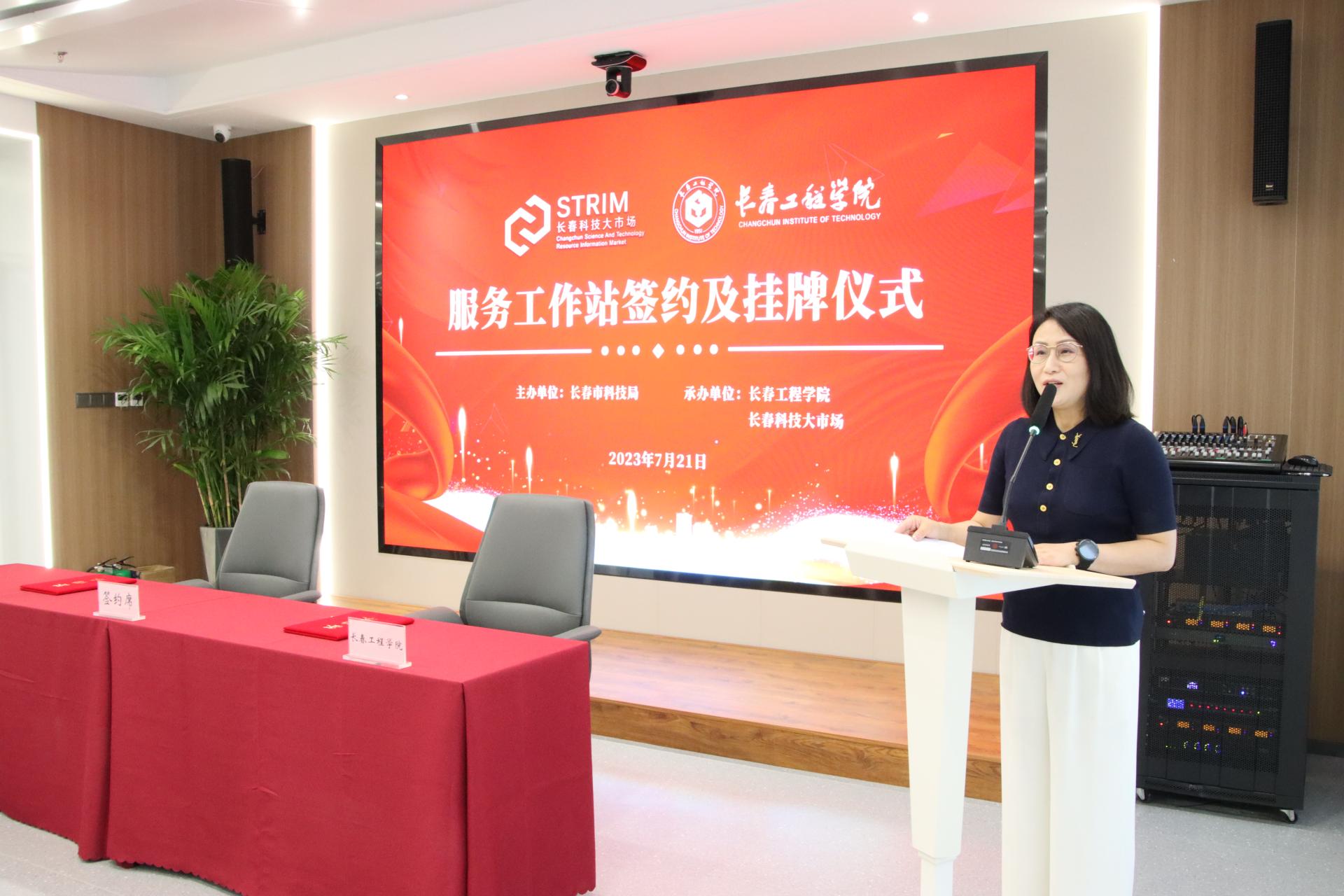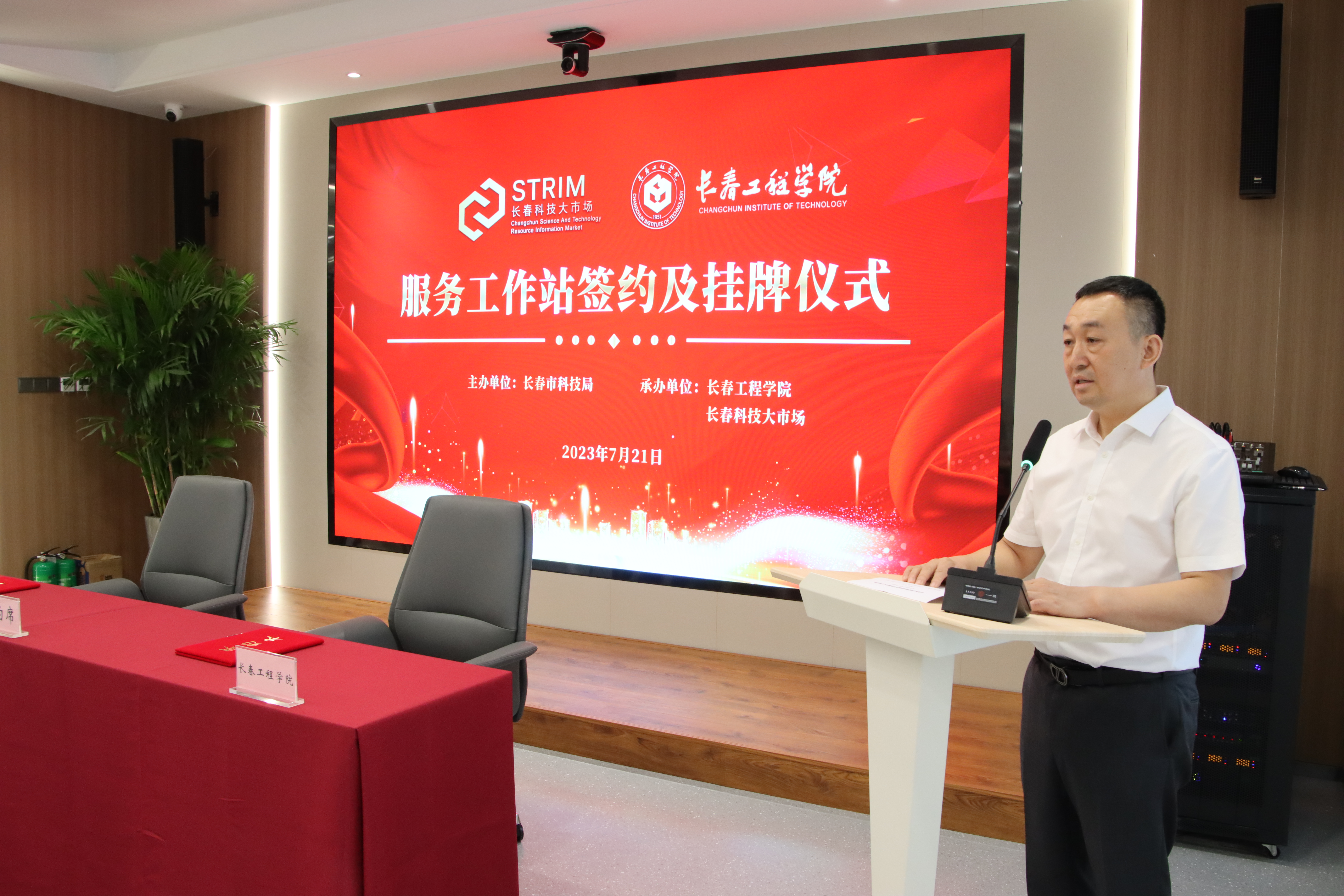 为深化政产学研用一体化建设,积极履行高校服务地方经济社会发展职能,推动校地资源共享、双向赋能,更好地服务吉林省“一主六双”高质量发展战略需求,7月21日,心博在线平台(中国)官网副校长许骏带队参加由长春市科技局主办的科技服务工作站签约及挂牌仪式。长春市科技局高新技术处调研员刘永学,长春科技大市场董事长沈维科、总经理刘丽波和各部门经理参加了此次签约及挂牌仪式。