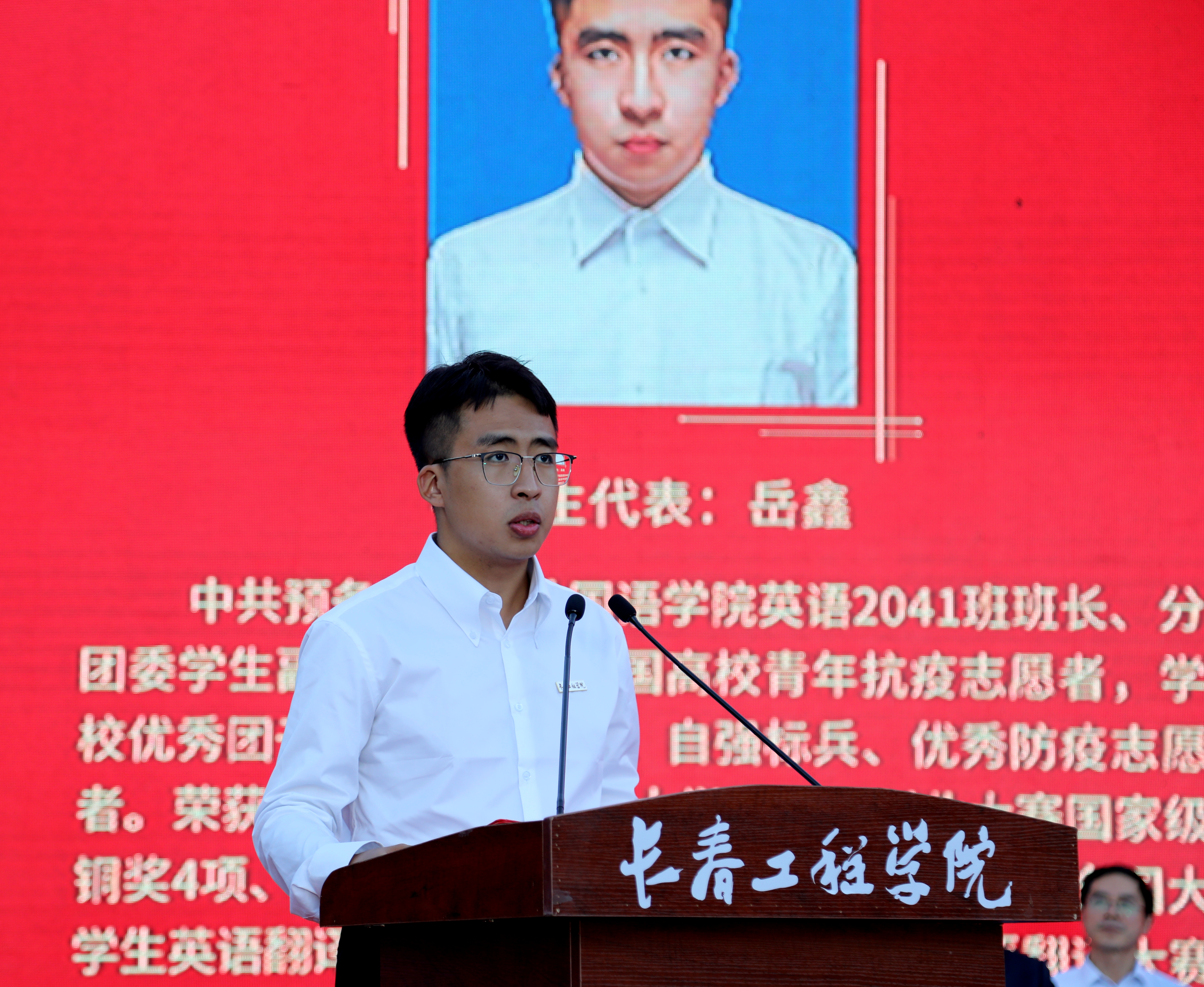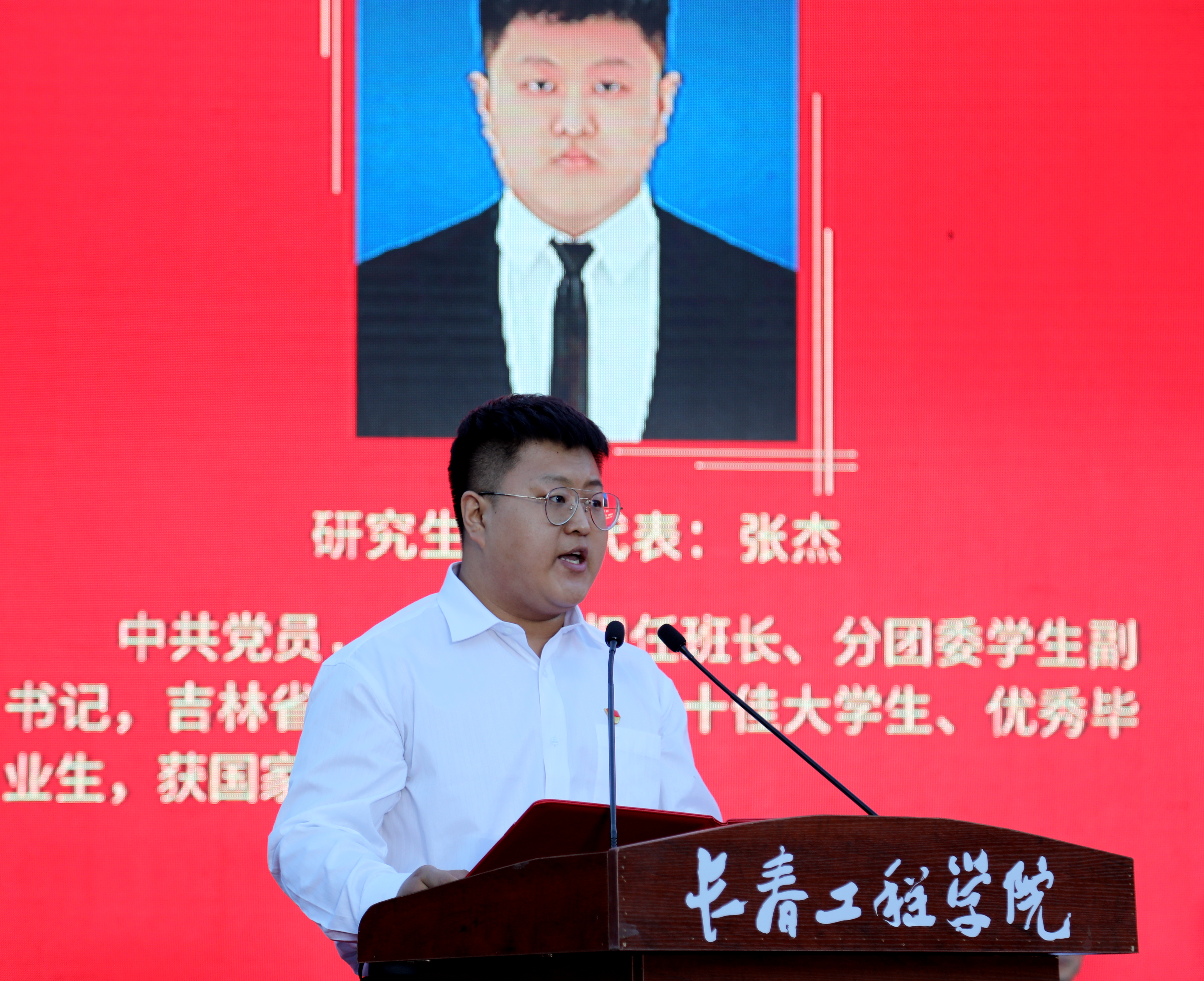 研究生学院院长潘殿琦教授,深圳市现代营造科技有限公司总经理谷明旺,能源动力工程学院动力2342班学生家长陈玉萍,外国语学院英语2041班学生岳鑫,电气与信息工程学院电气2341班学生程梓润,2023级研究生张杰分别代表教师、优秀校友、新生家长、在校生、新生、研究生新生发言。