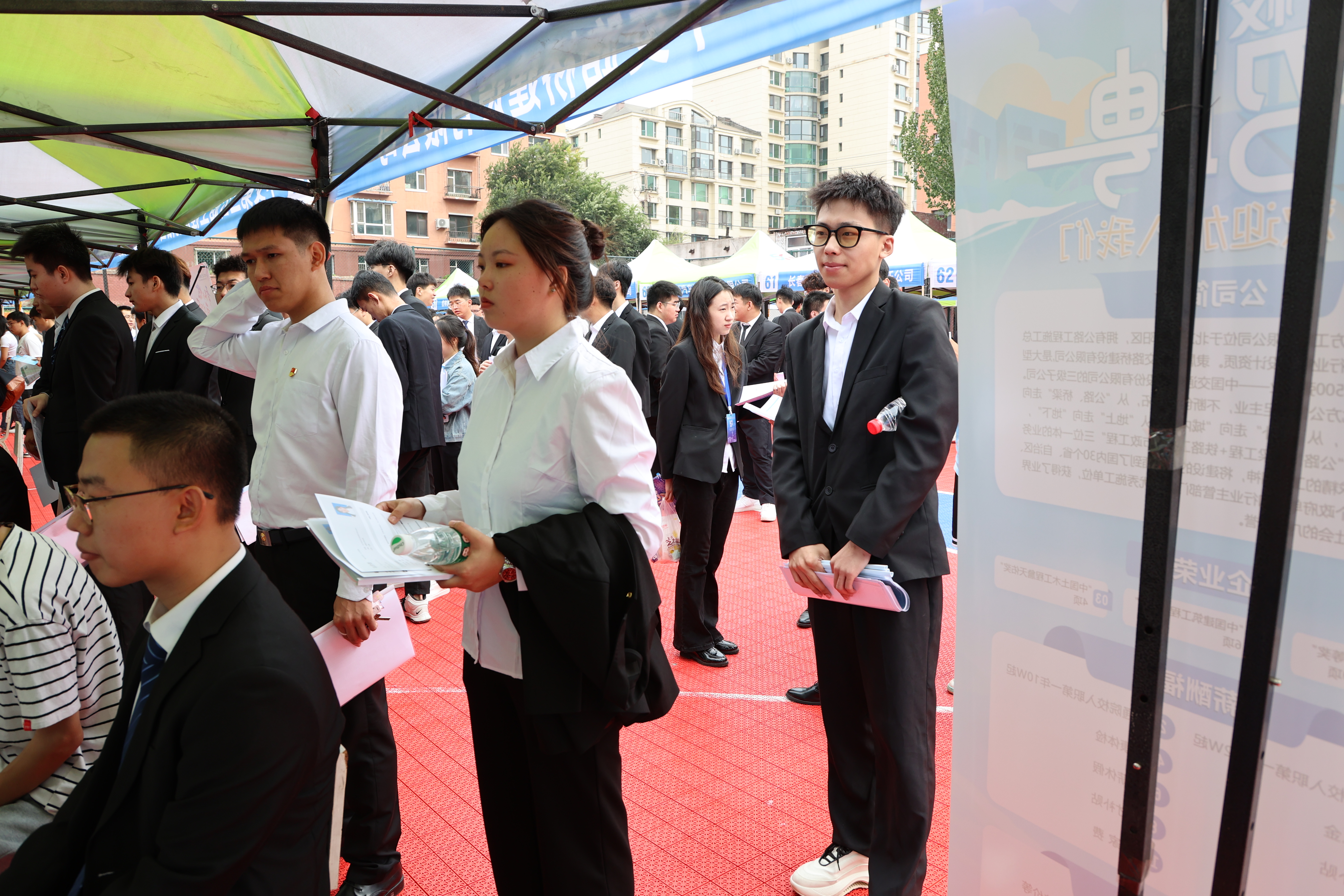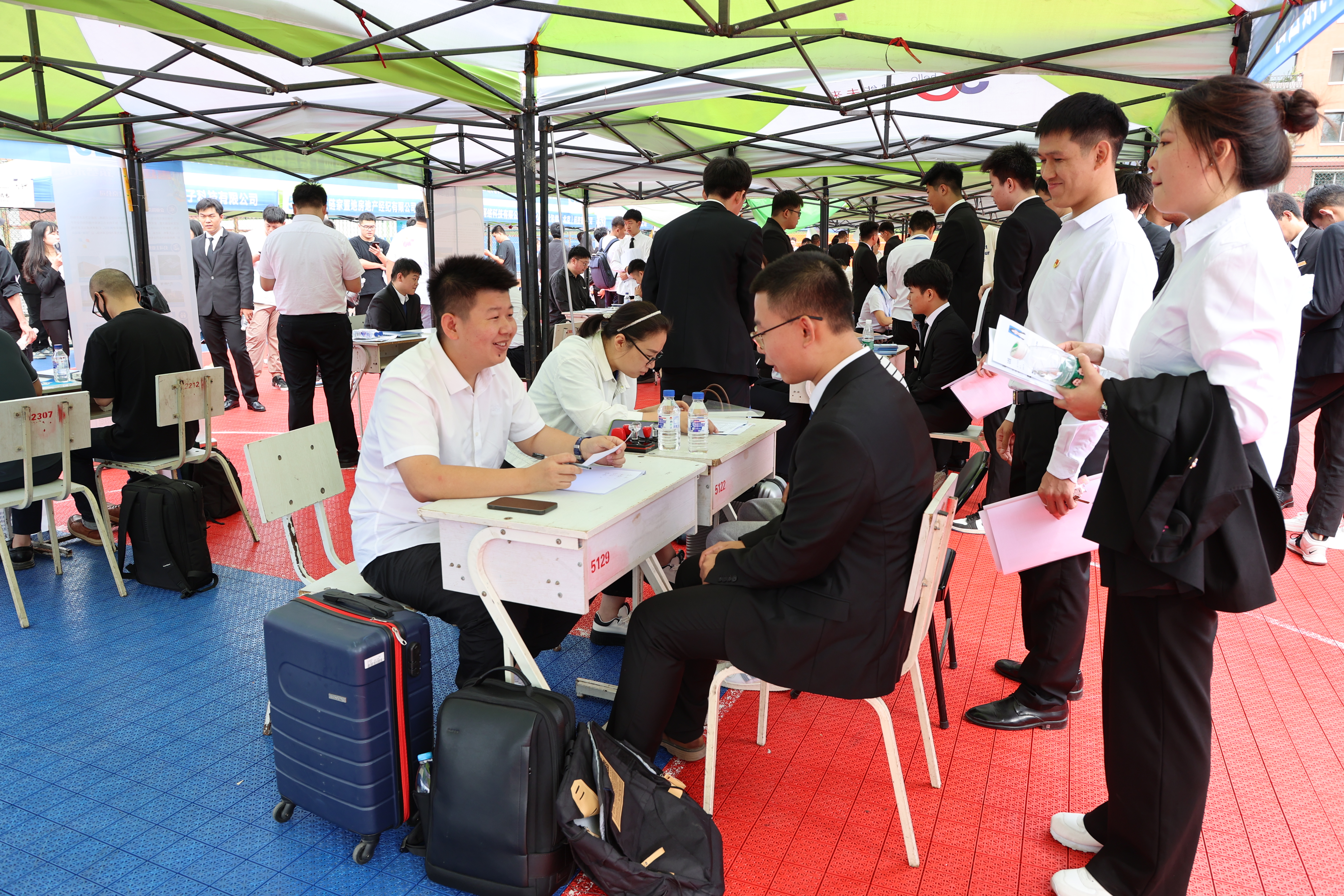 吉林省高校毕业生就业指导中心领导莅临招聘现场指导工作。本次双选会共邀请了100家用人单位到校招聘,包括中国建筑集团、中国能源建设集团、中国交通建设集团、中国水利水电集团、中铁建设集团、中国电力建设集团、中国冶金科工集团的分公司、子公司38家,省内优质企业51家。企业涵盖了建筑、能源、制造、水利、冶金和电力等10余个行业,累计提供6600个就业岗位,1000余名毕业生积极应聘,气氛热烈。