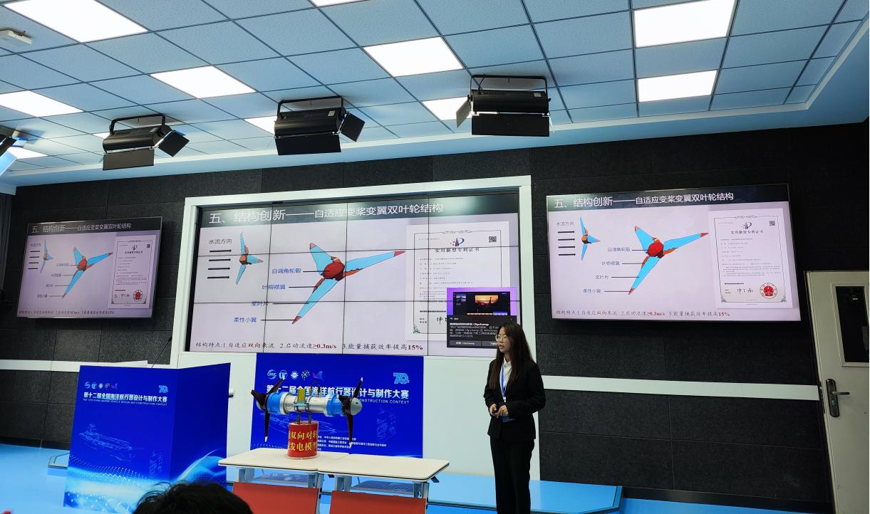 日前,由中国科学技术协会指导,中国造船工程学会、中国船舶集团有限公司、国际船舶与海洋工程创新与合作组织、共青团黑龙江省委员会、黑龙江省科学技术协会联合主办,中国高等教育学会支持,哈尔滨工程大学承办的第十二届全国海洋航行器设计与制作大赛落下帷幕,由我校能源动力工程学院教师张萧指导,新能源科学与工程专业2021级金晶同学团队的参赛作品《低流勇进——基于低流速海域特征下的双叶轮对转式潮流能机组》获得国赛A类(新概念创意设计)二等奖。