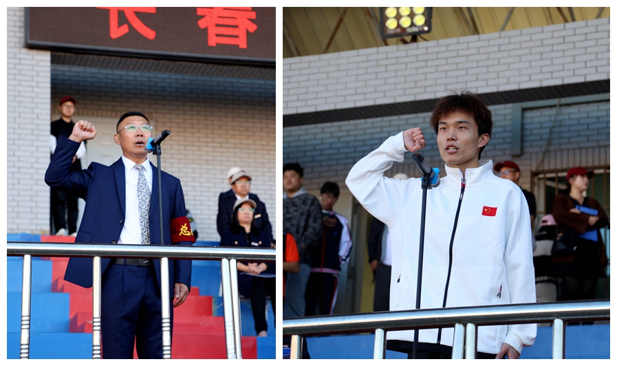 在开幕式上,体育教研部副主任徐振军和电气与信息工程学院学生喻勤分别代表裁判员和全体运动员进行宣誓,表达了裁判裁决公平公正的决心和运动健儿全力以赴参赛的信心。