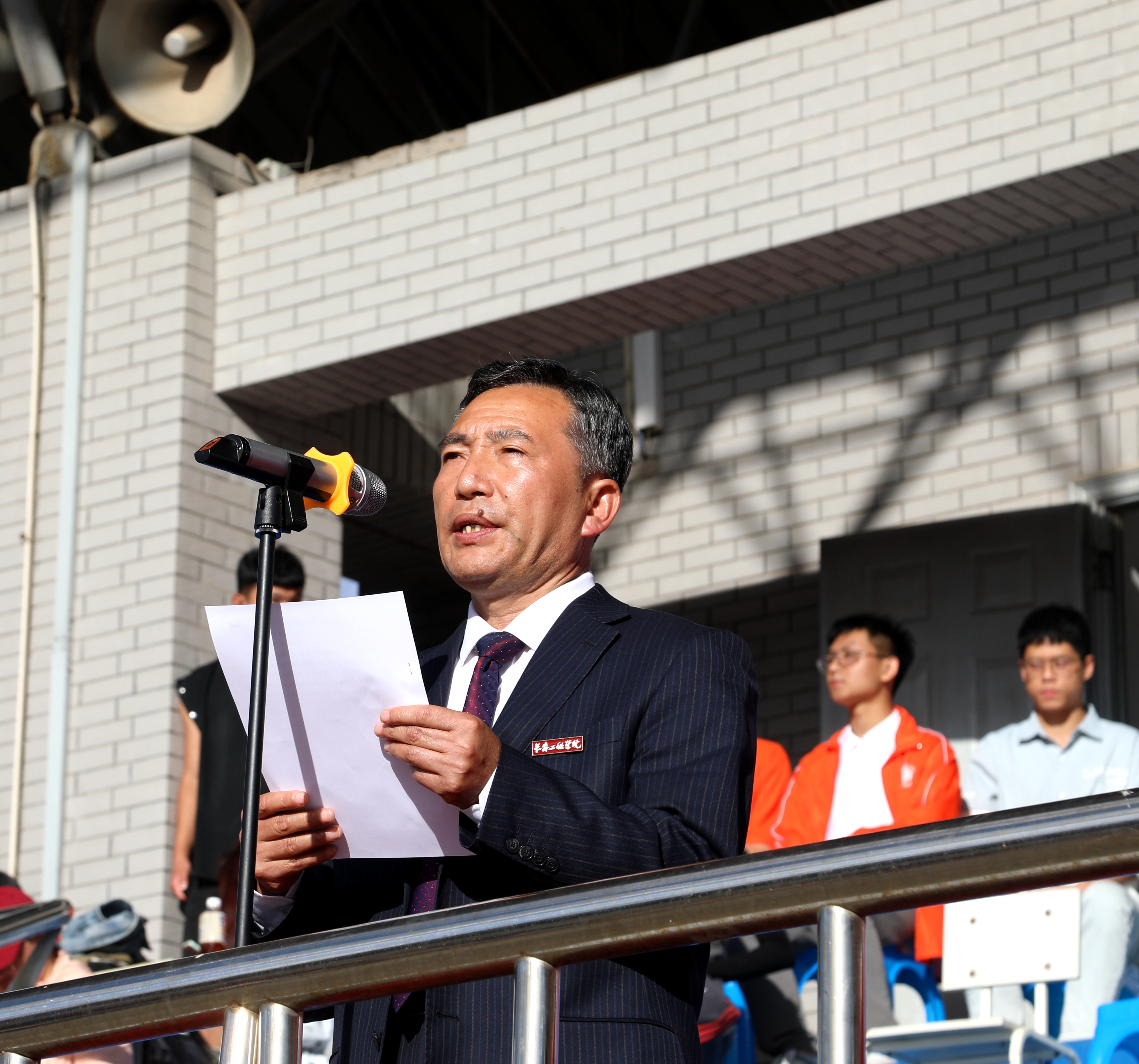 校长陈权致开幕词。他指出,近年来,在“五育并举”教育方针指引下,我校的体育工作取得了丰硕成果,群众性体育运动丰富多彩,竞技性体育运动捷报频传,师生体育素质不断提高。一年一度的田径运动会,不仅是对我校体育教学水平的集中检阅,也是对全体师生精神面貌、身心素质、团队和拼搏精神的一次全面检阅。希望全校师生能以此次田径运动会为新起点,牢固坚持健康第一的教育理念,不断强化体育在立德树人中的积极作用,将体育工作融入到人才培养全过程;积极响应“每天锻炼1小时、健康工作50年、快乐生活一辈子”的号召,把体育运动当成一种习惯,让身心健康成为一种追求,“放下手机,走出宿舍,走向操场”,积极投身到体育运动之中,着力营造“热爱运动、强健体魄、快乐生活”的良好氛围,让“更高、更快、更强”的体育精神和“永远向前”的运动理念融入到我们的学习、工作和生活之中,以健康体魄、充沛精力为我们的学业奠基、为我们的幸福人生奠基!
