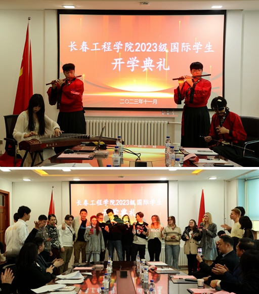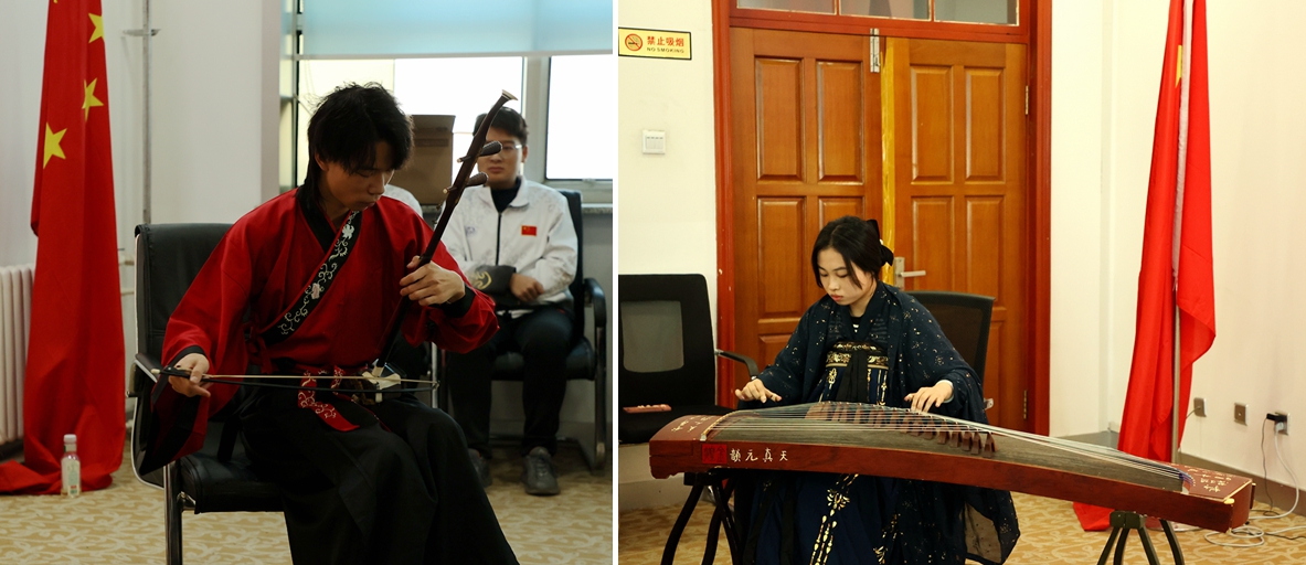 典礼上,国际教育学院的学生带来了中国传统器乐表演,还与俄罗斯籍的学生们合唱了歌曲《喀秋莎》。