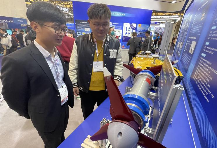 在展会现场,我校研究生们展示了这一创新装置,并向参观者详细介绍了其研发背景、先进技术特点以及在实际应用中的前景。这款基于海洋潮流能发电技术的电能补给装置为克服海上仪器电能供给难题提供了有效解决方案,其创新性设计引起了业界的广泛关注。