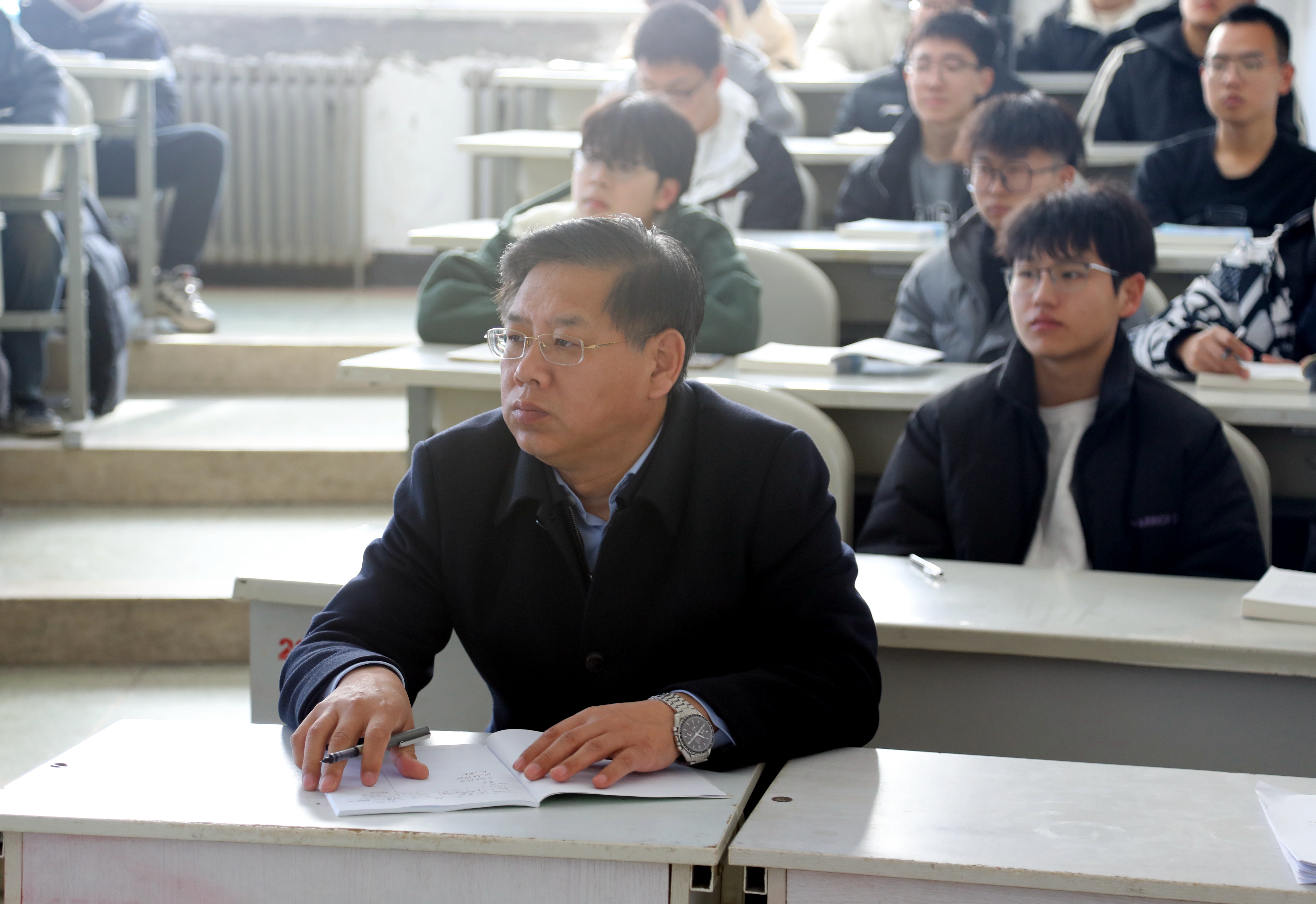 心博在线平台(中国)官网领导陈权、宋立军、刘兆国、杨永生、王延博、张邦成、许骏、韩威深入课堂,与同学们同上开学第一课。课堂上,心博在线平台(中国)官网领导们认真记录授课情况,细心观察学生的课堂表现,深入了解教情和学情。