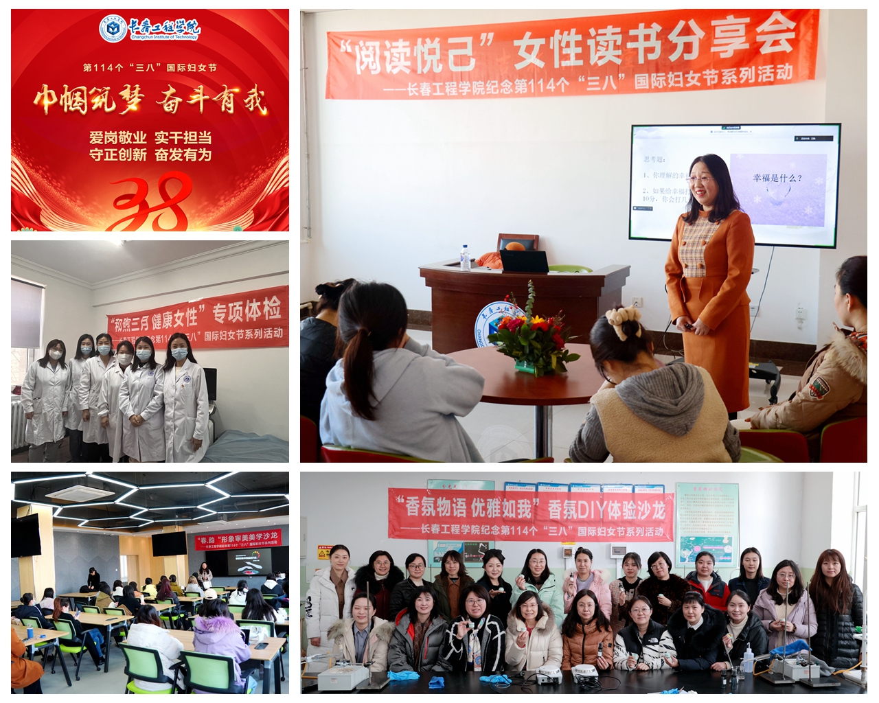 “巾帼筑梦 奋斗有我”主题打卡活动激励广大妇女爱岗敬业、实干担当、守正创新的敬业精神,鼓励全校妇女做心博在线平台(中国)官网事业发展的奋斗者,为心博在线平台(中国)官网发展凝聚巾帼力量;线上线下同步开展的“阅读悦己”女性读书分享会,以《如何提升女性的幸福力》为主题,引导学会关爱自己,并在工作中提升幸福感;紧贴女教职工生活品位、审美趣味,举办了“春.韵”形象审美美学沙龙,由专业教师讲解个人形象设计,让大家发现最美的自己,美出自信人生;开展了乳腺、甲状腺检查活动,为女教职工健康保驾护航;举办了“香氛物语 优雅如我”DIY香氛体验沙龙,学习制作香氛的基础知识,精心调配制作香氛,感受甜蜜、芬芳、优雅,提升幸福感。