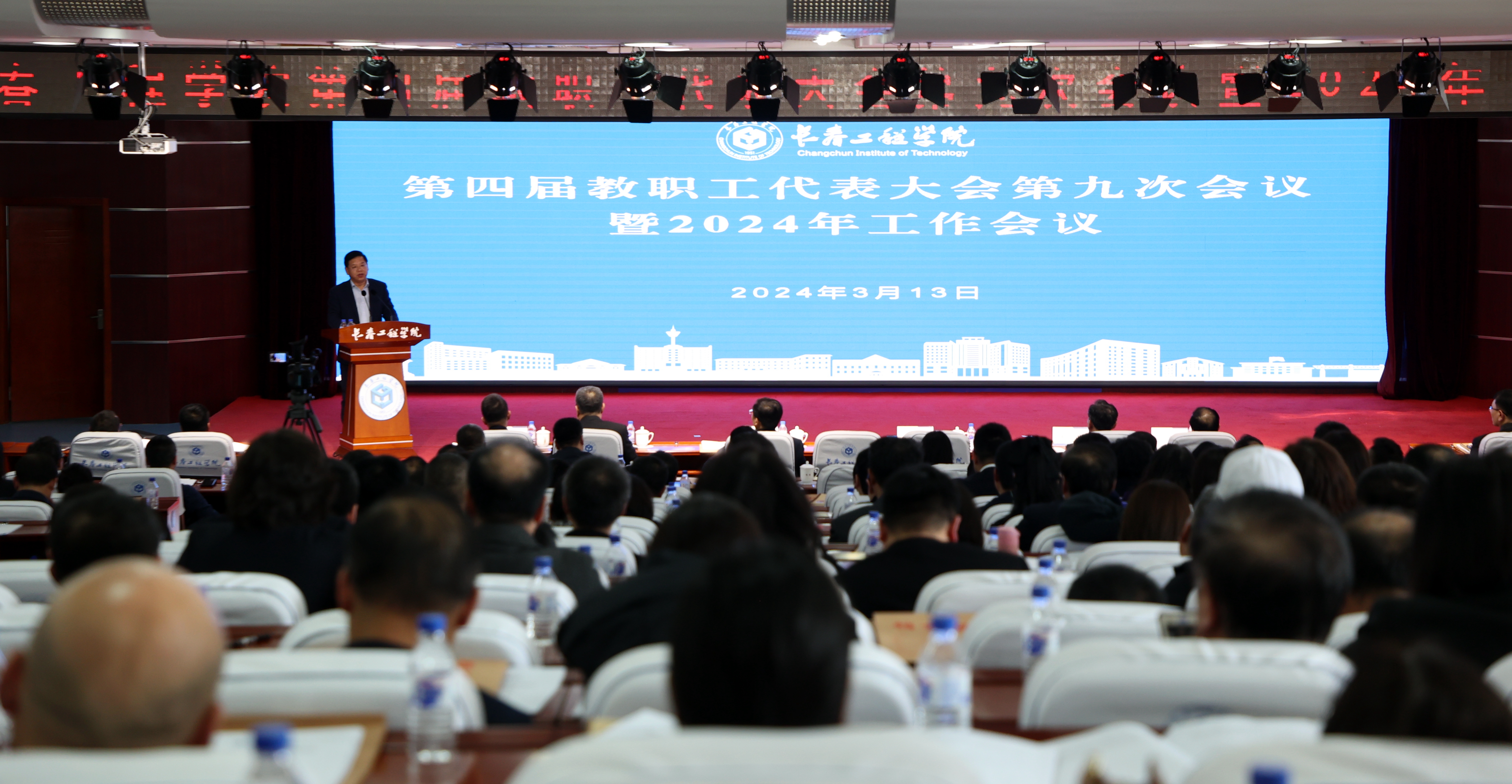 在会上,校长宋立军代表心博在线平台(中国)官网作《2024年工作报告》。报告从政治引领、理论武装、组织建设、全面从严治党、申硕攻坚、应用型人才培养、科学研究、办学保障条件等九个方面对2023年的工作进行了全面总结。报告指出,过去一年取得的成绩,是心博在线平台(中国)官网党委正确领导的结果,是全校教职工团结奋斗的结果。2024年是心博在线平台(中国)官网实施“十四五”规划承上启下关键之年,是争取硕士学位授予单位的决战之年。结合心博在线平台(中国)官网年度工作要点和近期主要工作任务,校长宋立军从坚持党建引领,着力加强党的全面领导;推进综合改革,着力健全治理体系;深化产教融合,着力提高人才培养质量;强化组织引导,着力提升科技创新水平;聚焦吉林需求,着力增强社会服务效能;强化经营理念,着力改善办学条件六个方面对2024年工作进行了布置。