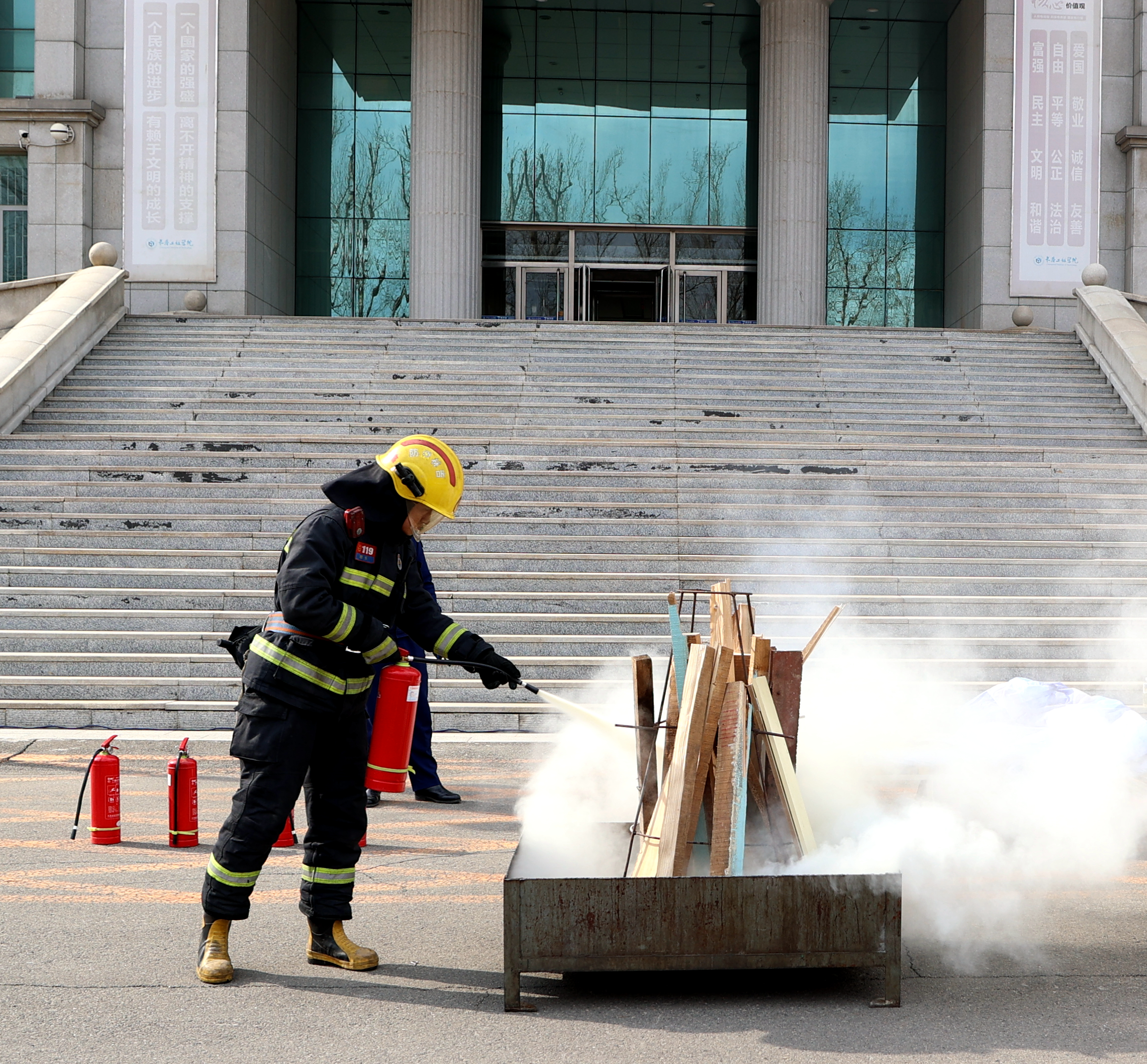 参加活动的人员现场观摩了消防疏散及灭火演练。朝阳消防队现场演示床铺灭火、杂物灭火及常见火灾扑救方法。