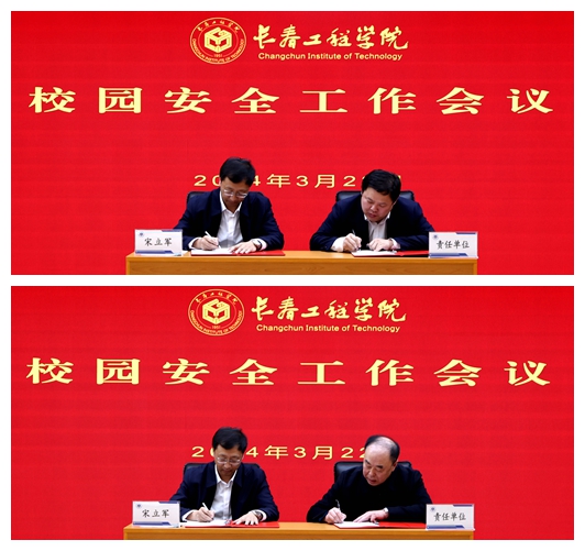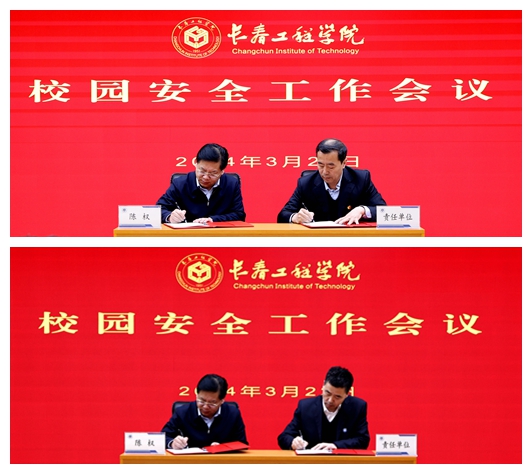 陈权书记与基层党组织书记代表签订了综合治理责任书,宋立军校长与基层单位负责人代表签订了安全生产工作责任书。