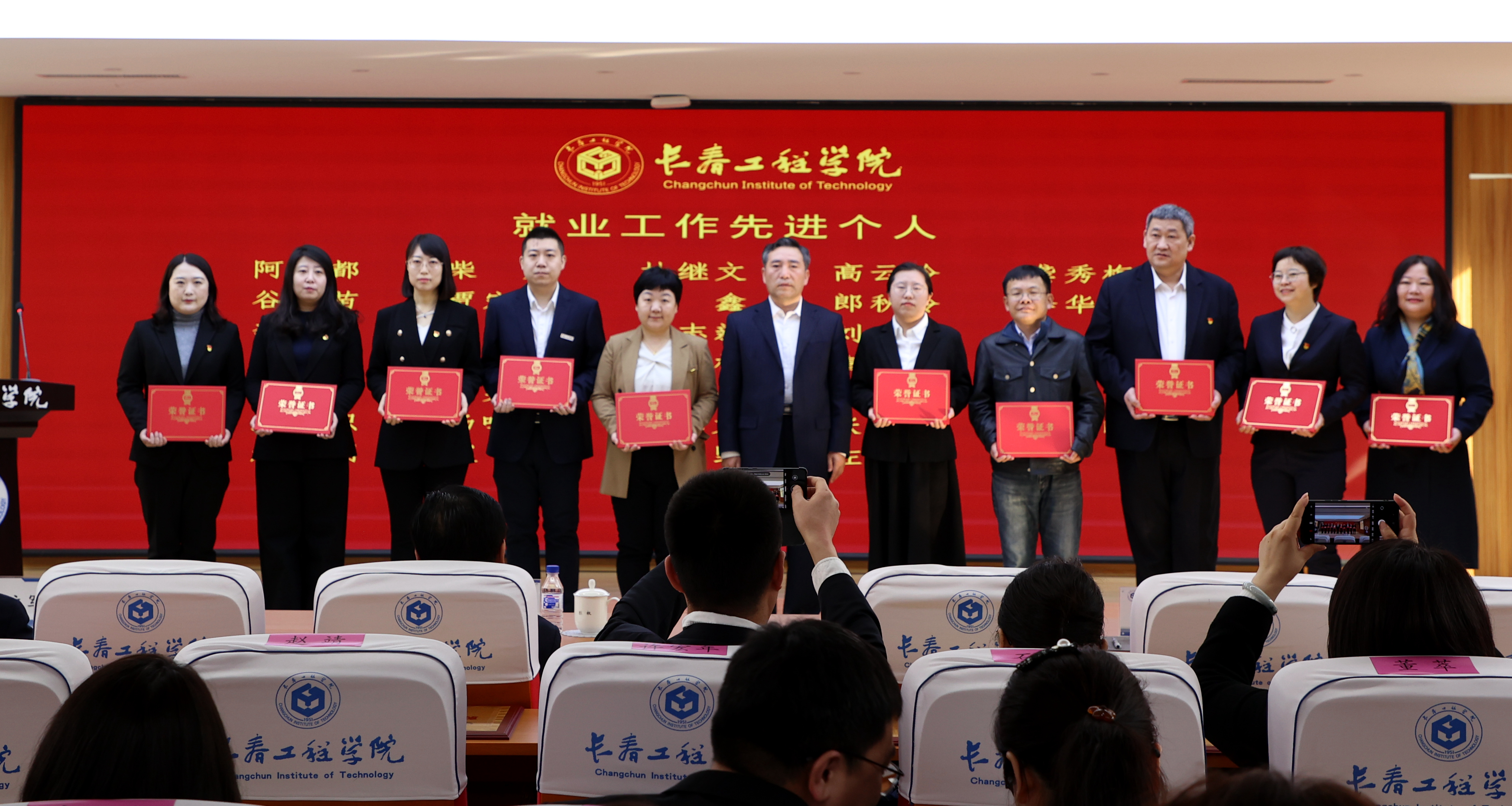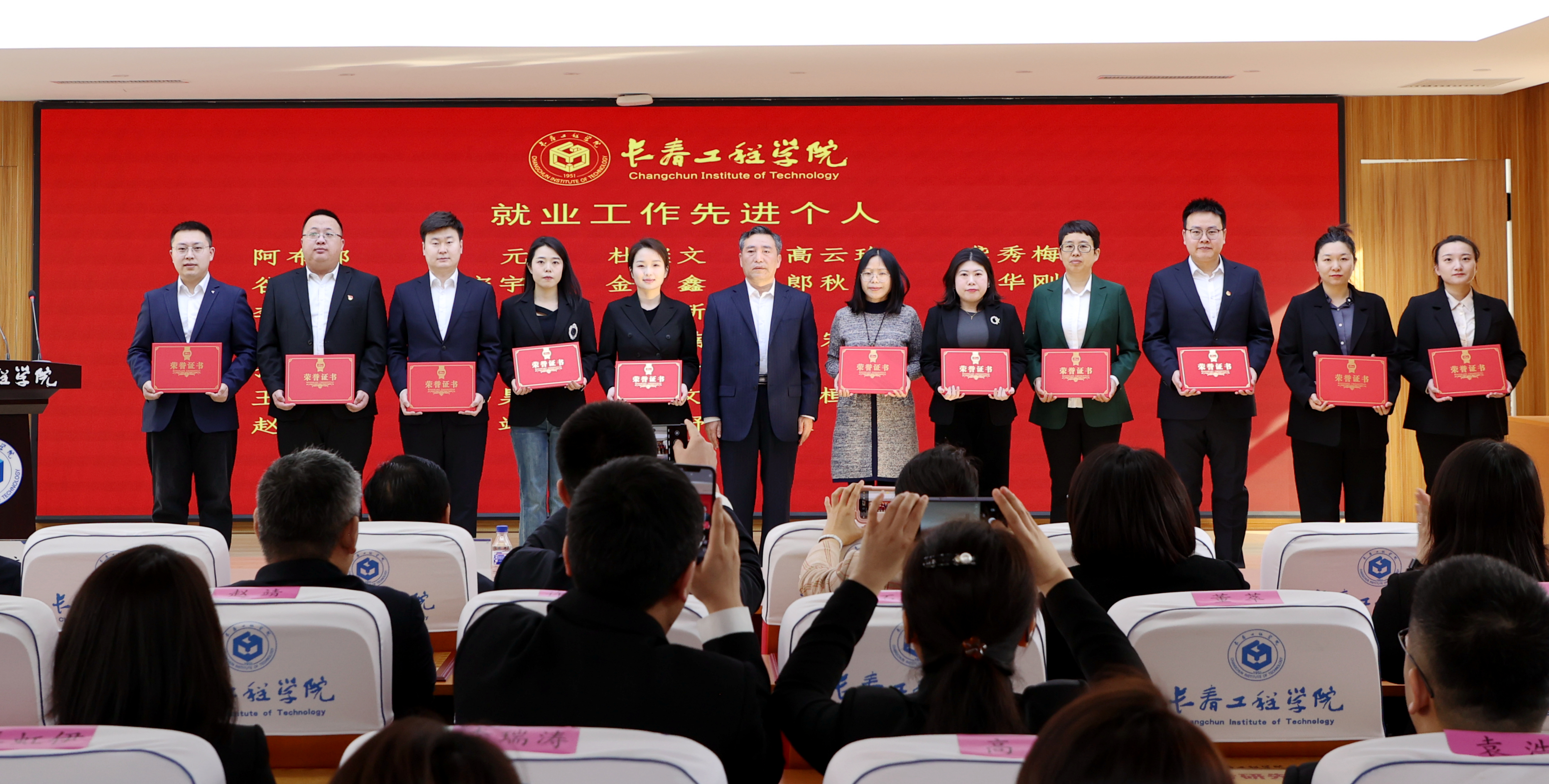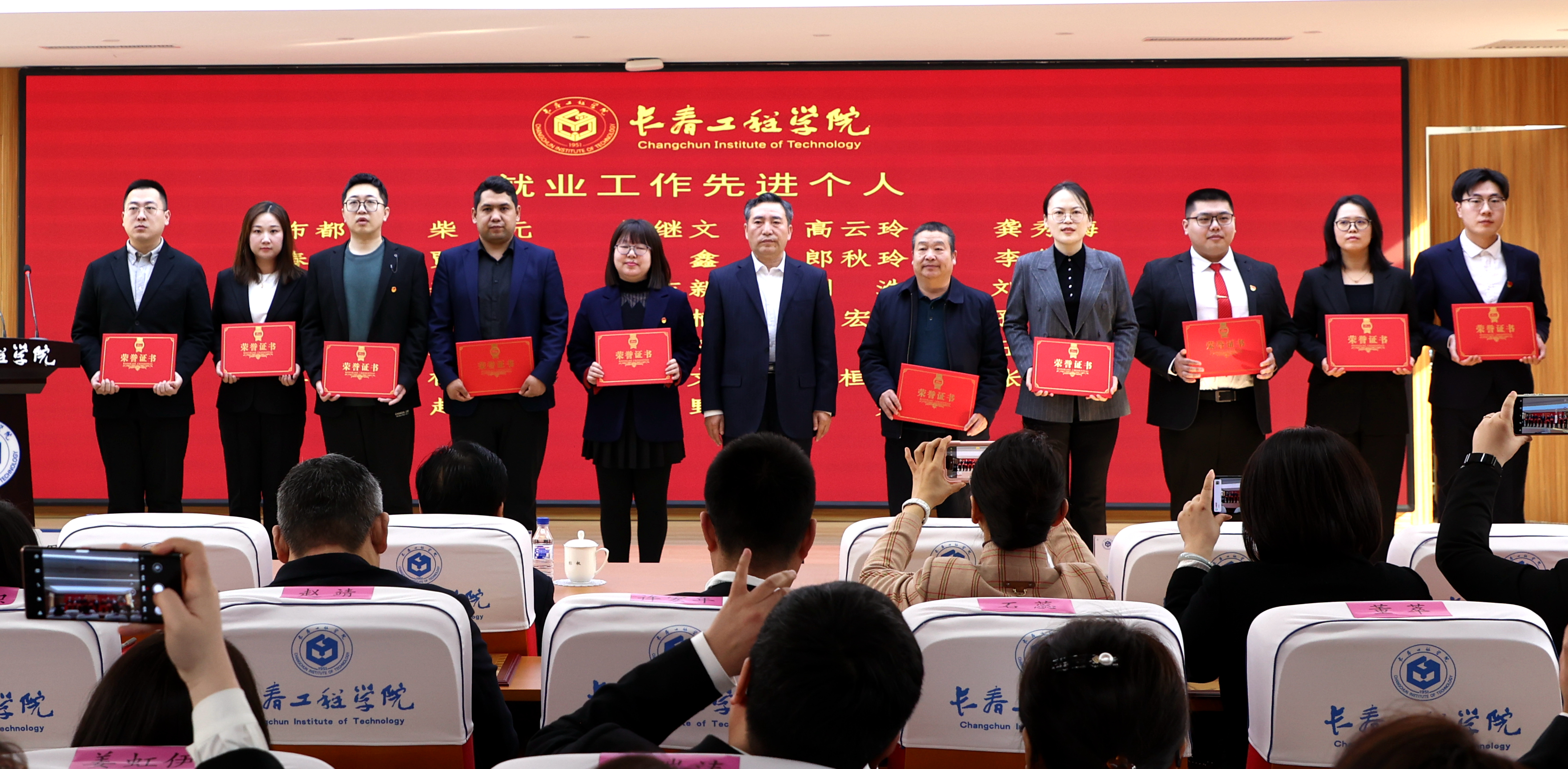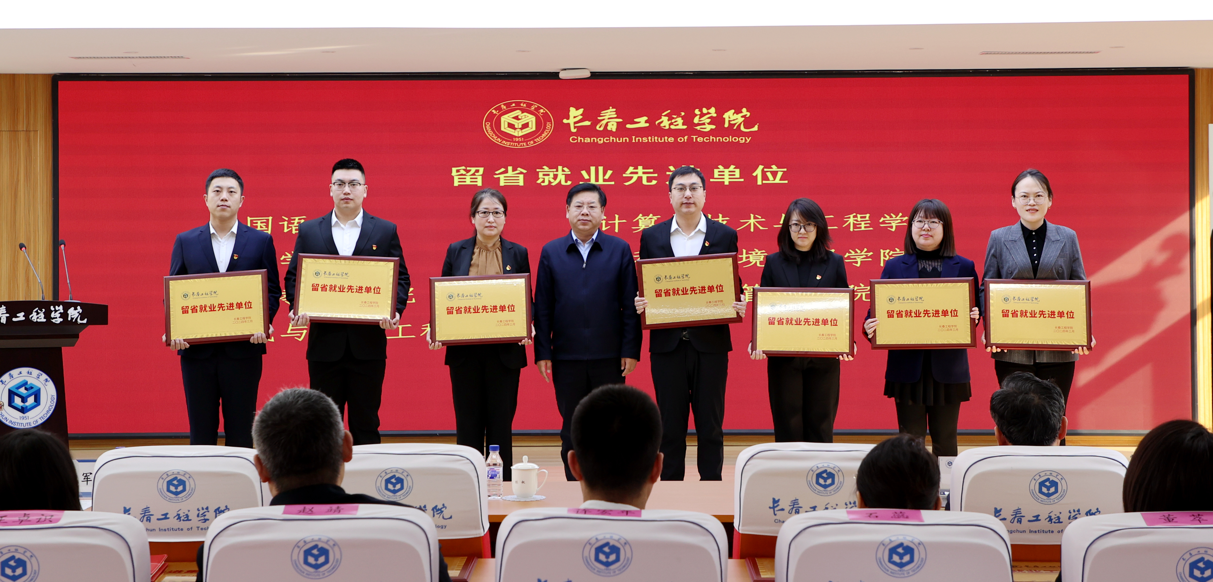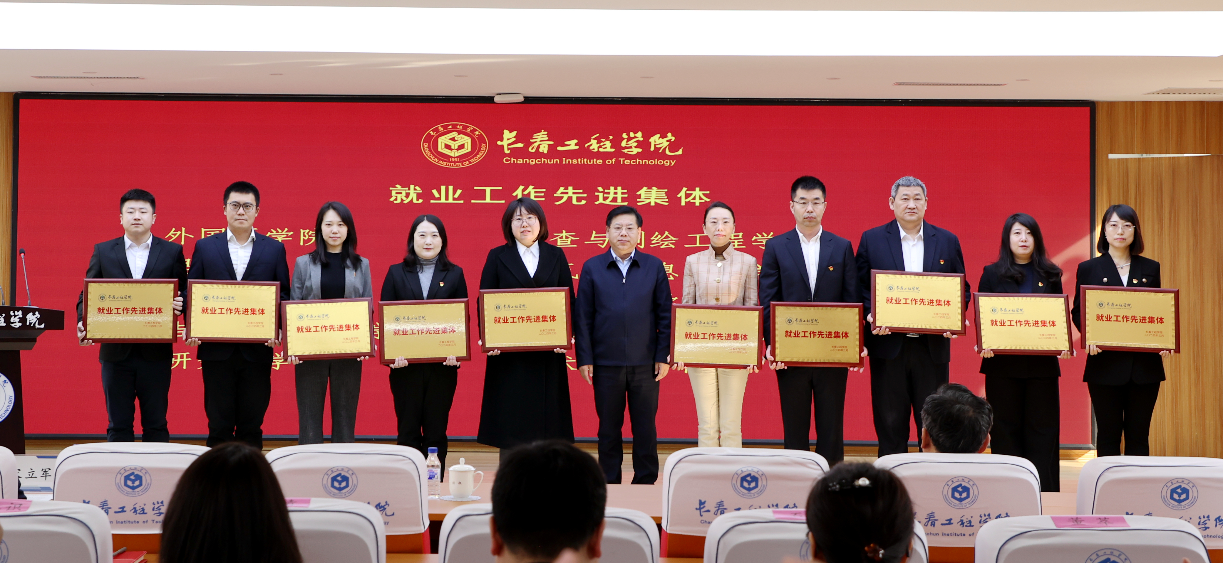 大会表彰了2023年我校就业创业工作先进集体及先进个人。勘查与测绘工程学院院长吴景华、电气与信息工程学院院长张运波、吉林应急管理学院院长张以晨、机电工程学院党委副书记王娜、国际教育学院辅导员刘浩代表先进集体和个人做了交流发言。