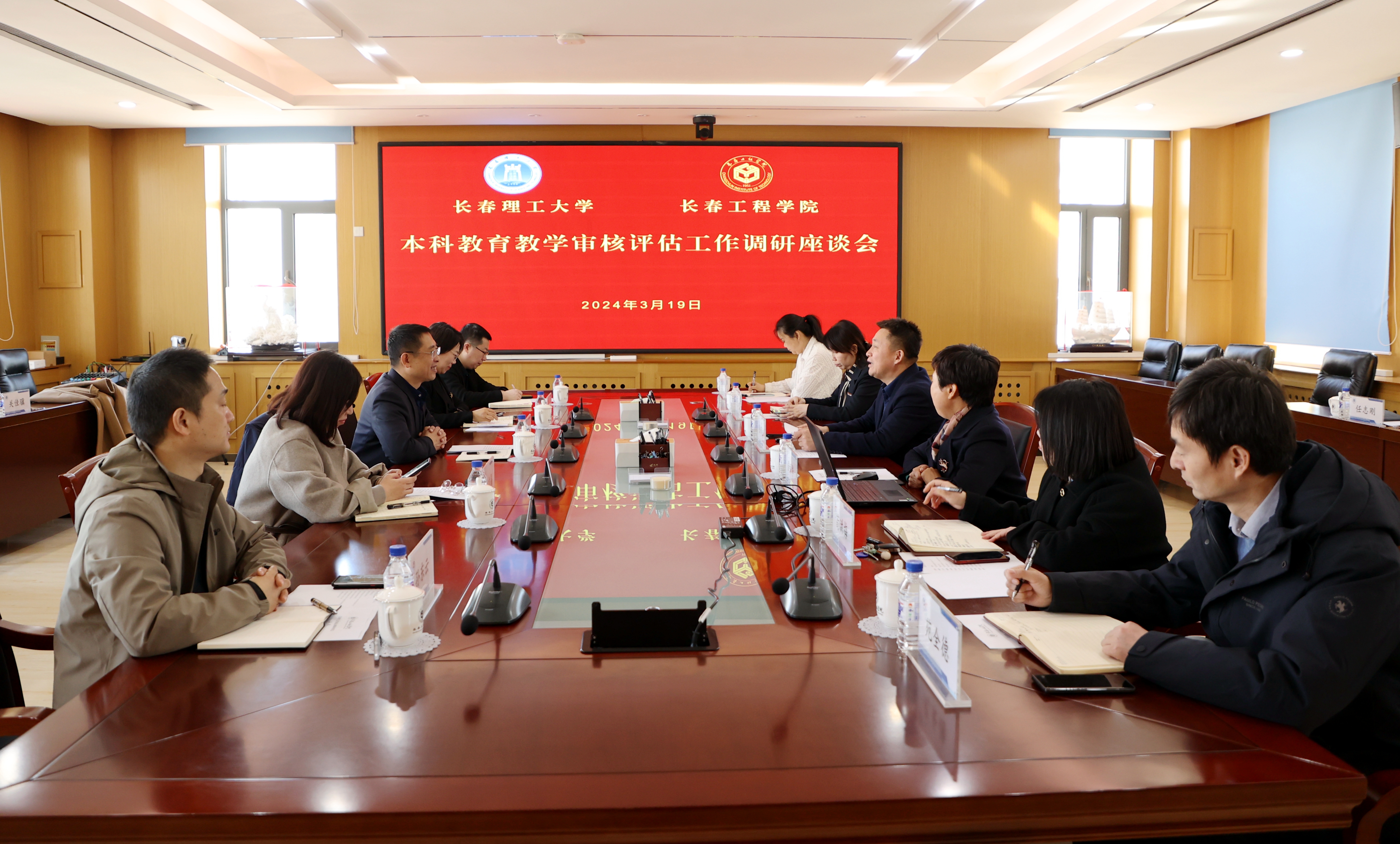 近日,长春理工大学副校长付跃刚一行10人来我校就本科教育教学审核评估工作进行调研交流。我校副校长张邦成主持会议。