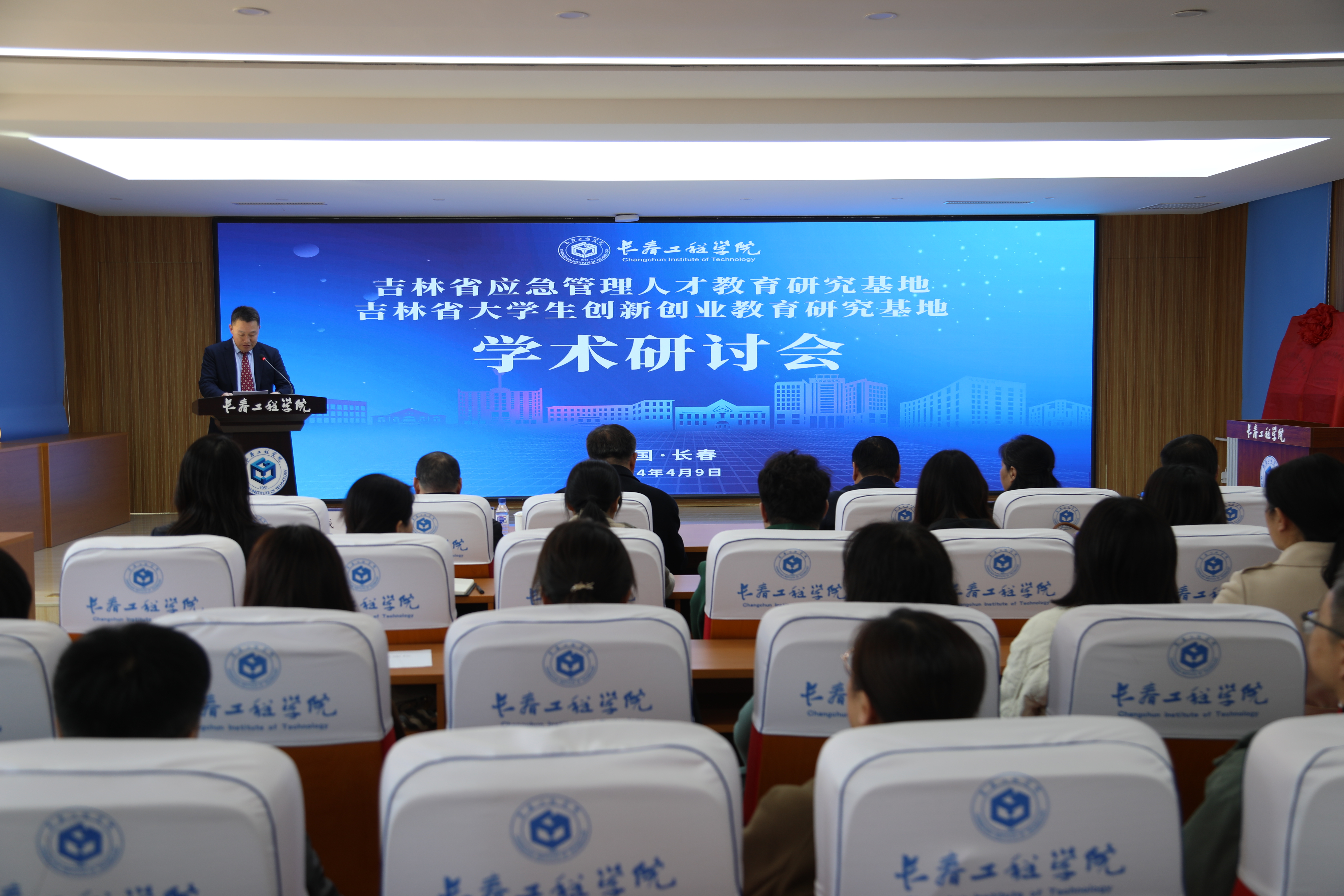 吉林省应急管理人才教育研究基地常务副主任、我校吉林应急管理学院常务副院长张以晨以及吉林省大学生创新创业教育研究基地常务副主任、我校大学生创新创业教育学院院长郭瑞作基地建设情况介绍。