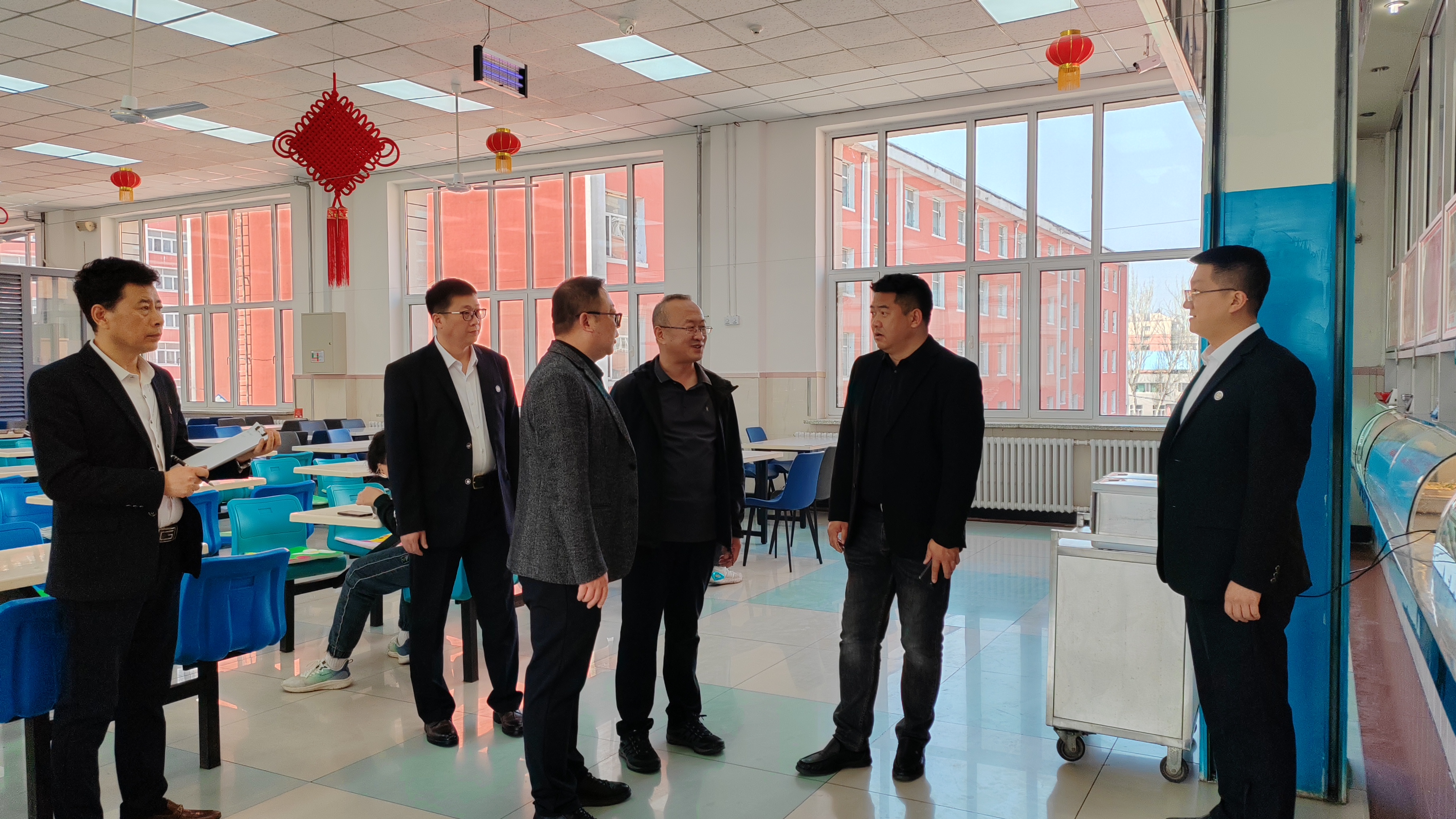 韩威副校长检查了售卖窗口、后厨、食材、菜品、仓库物资、餐具消毒等每个环节。韩威副校长对饮食服务中心的食品安全工作表示认可,并对食品安全管理的重点、难点、薄弱环节提出了更高的要求。他强调,食品安全工作必须严管控、严要求,饮食服务中心必须严格执行“日管控、周排查、月调度”的制度,确保每一位师生“舌尖上的安全”。