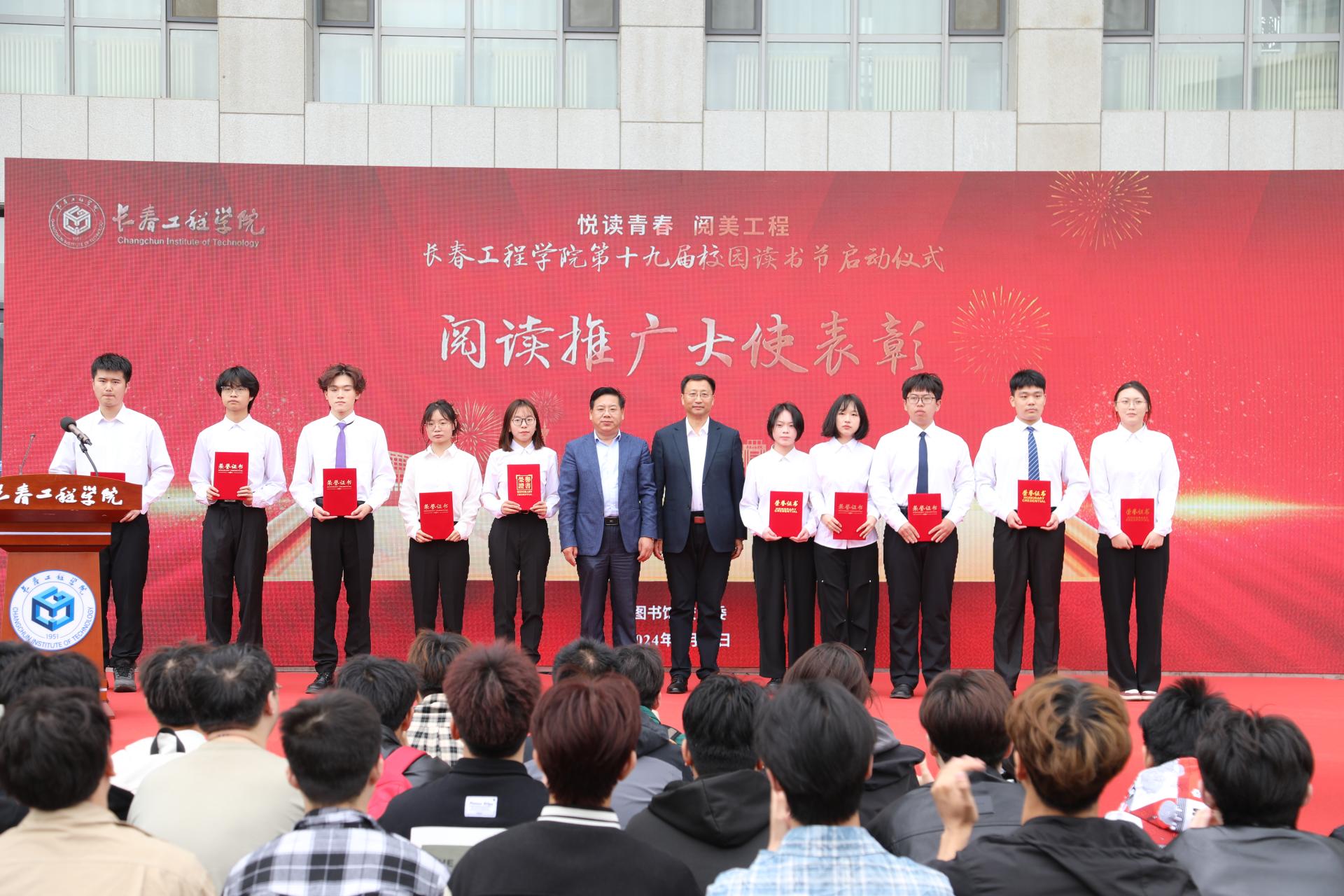 副校长韩威宣读了心博在线平台(中国)官网表彰2023年度“阅读推广大使”和图书馆“优秀志愿者”的决定,能源动力工程学院侯彦茹等10名同学荣获2023年度“阅读推广大使”称号,土木工程学院张水源等6名同学荣获图书馆“优秀志愿者”称号。