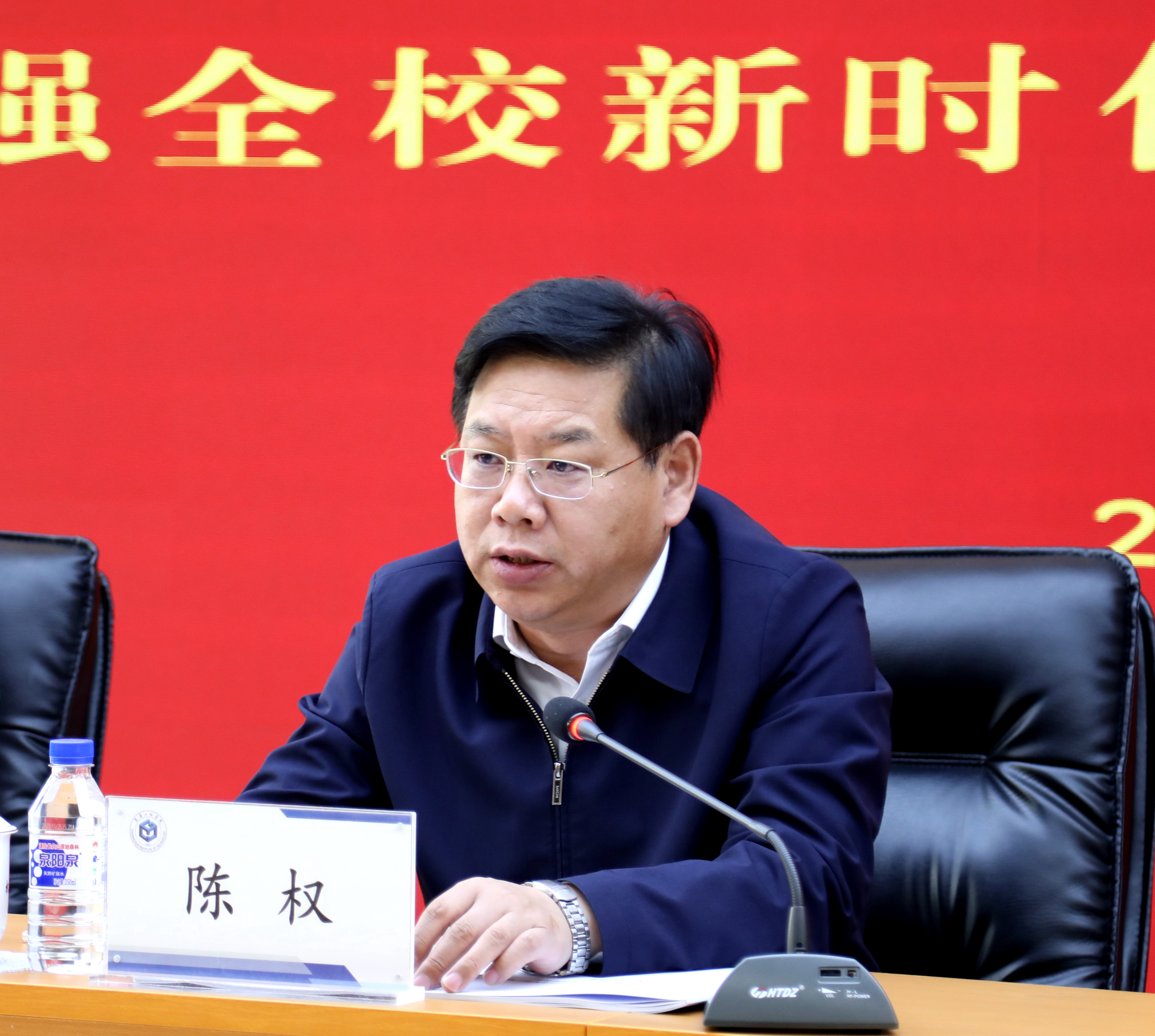 陈权书记围绕加强新时代我校思想政治工作对全体教师提出三点要求。一要强学习,切实提高政治意识和政治站位,同时加强业务知识的学习,不断提高专业技能,着力解决本领不足、本领恐慌、本领落后的问题;二要强责任,要坚持目标和问题导向,以时不我待的紧迫感和责无旁贷的使命感,自觉扛起肩上职责,不负我们教育人的初心使命;三要强落实,全体思想政治工作者,特别是各学院党组织负责人,一定要领导带领各自工作团队,以真抓的实劲、敢抓的狠劲、善抓的巧劲、常抓的韧劲,把各项工作落实到位。