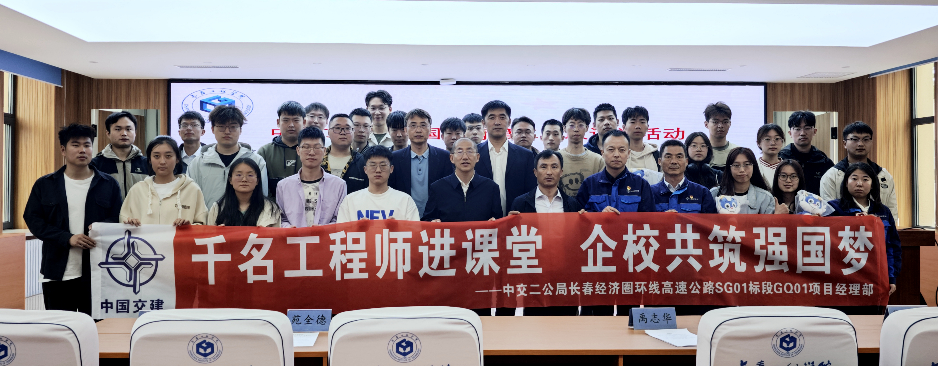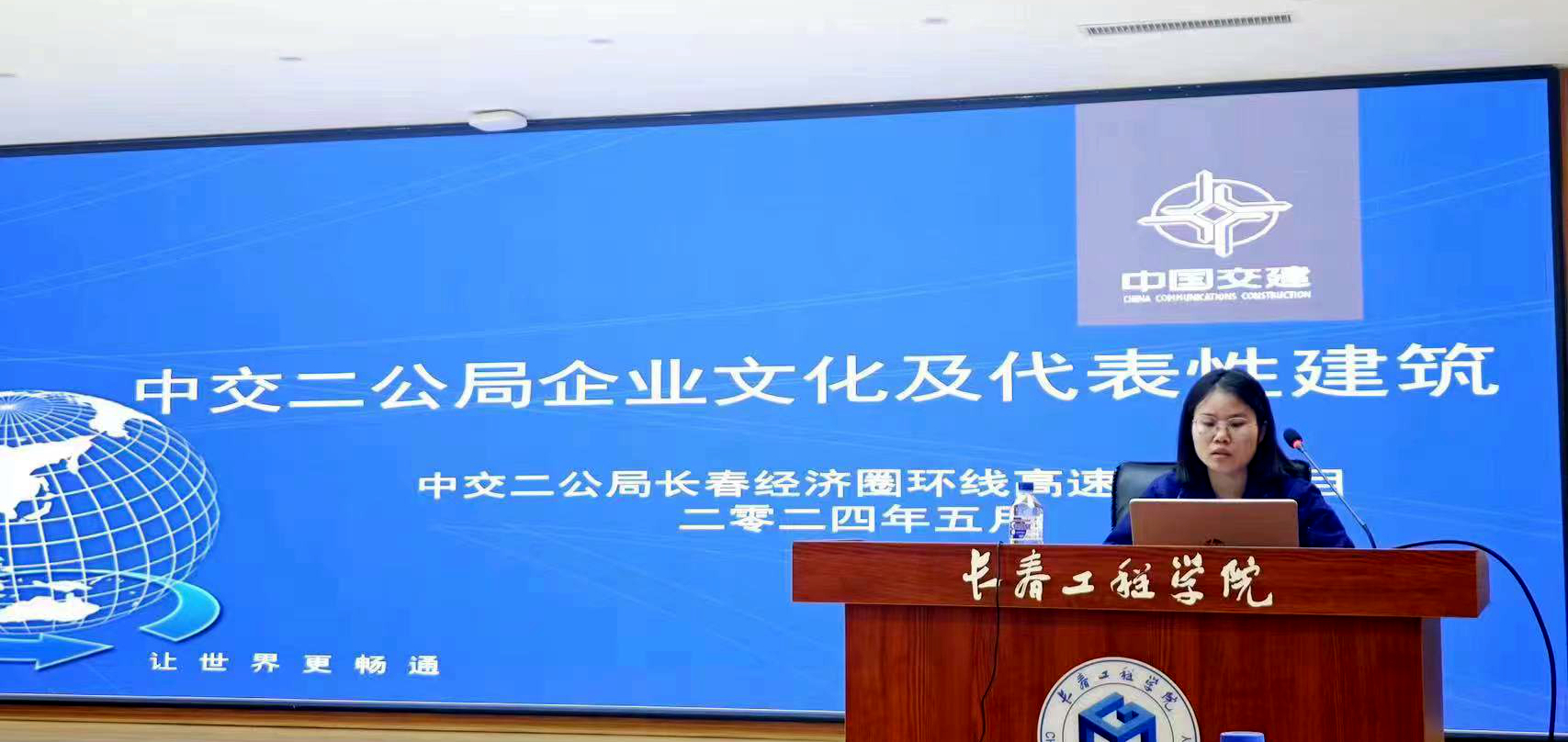 活动中,中交二公局长春项目宣传员党碧盈向师生们介绍了中交二公局企业概况、企业文化及代表性工程;中交二公局长春项目副总工程师张甫浩向师生们系统讲述了中国公路发展情况及中国公路的分类,介绍了中交二公局代表性公路建设以及长春经济圈环线高速公路项目的项目概况、建设意义、项目亮点;中交二公局长春项目总经理禹志华与参加活动的师生进行了互动交流,并就师生们提出的交通建设行业领域方面的问题进行了解答。与会的领导、嘉宾、师生共同观看了中交二公局宣传片。