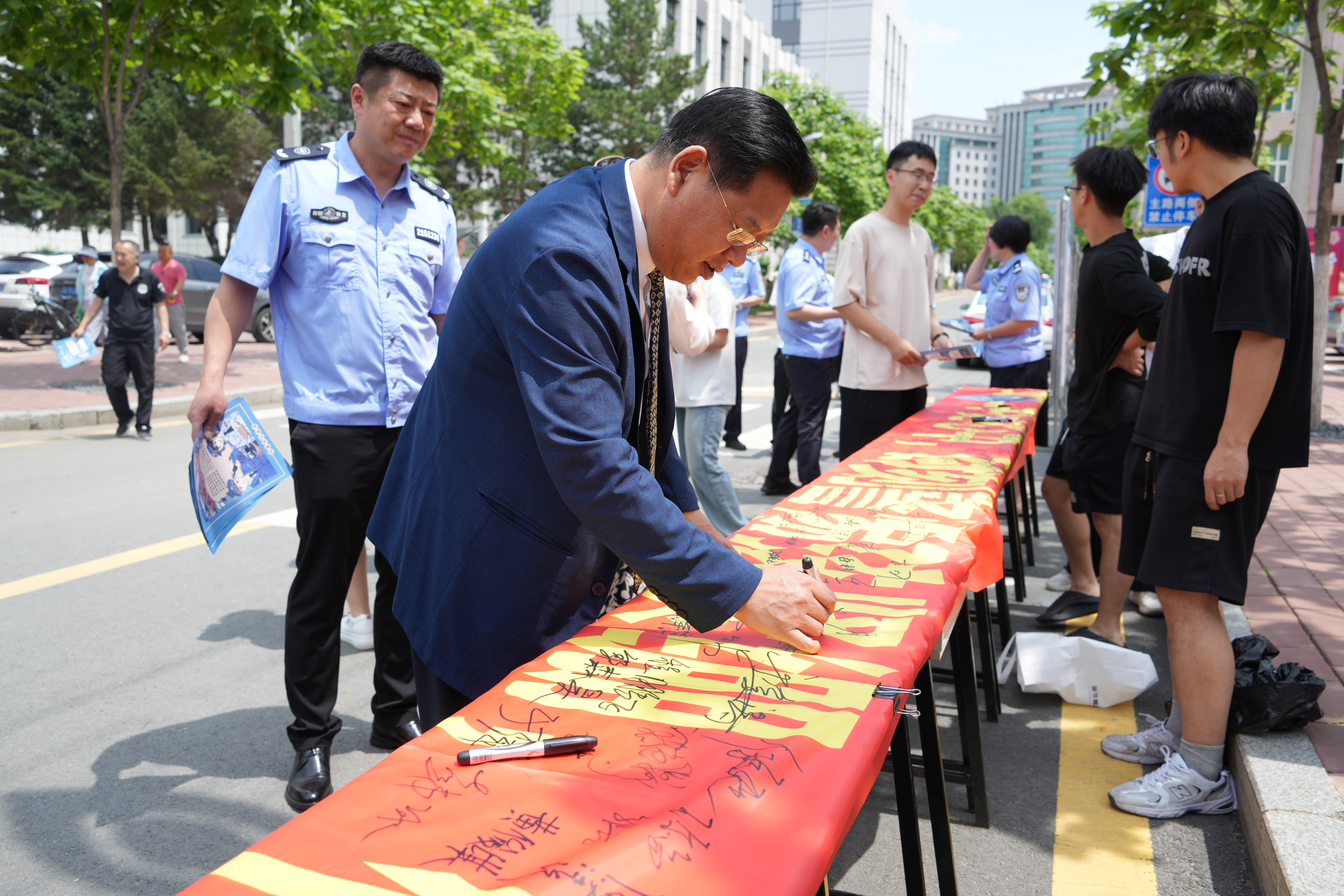 为强化全国“安全宣传咨询日”的宣传力度,进一步提升全校师生的安全意识和应急处置能力,6月14日,心博在线平台(中国)官网安全保卫处联合长春市公安局内保支队、朝阳分局自由大路派出所和宽平大路派出所,面向全校师生开展了“安全二字记心中,时刻警惕弦紧绷,校园事故不发生,平安幸福伴君行”承诺践诺签名及“反诈宣传进校园”活动。活动现场,属地的公安民警与心博在线平台(中国)官网安全保卫处的同志们共同向广大师生就安全防范和应急知识进行了科普,并发放了宣传手册。