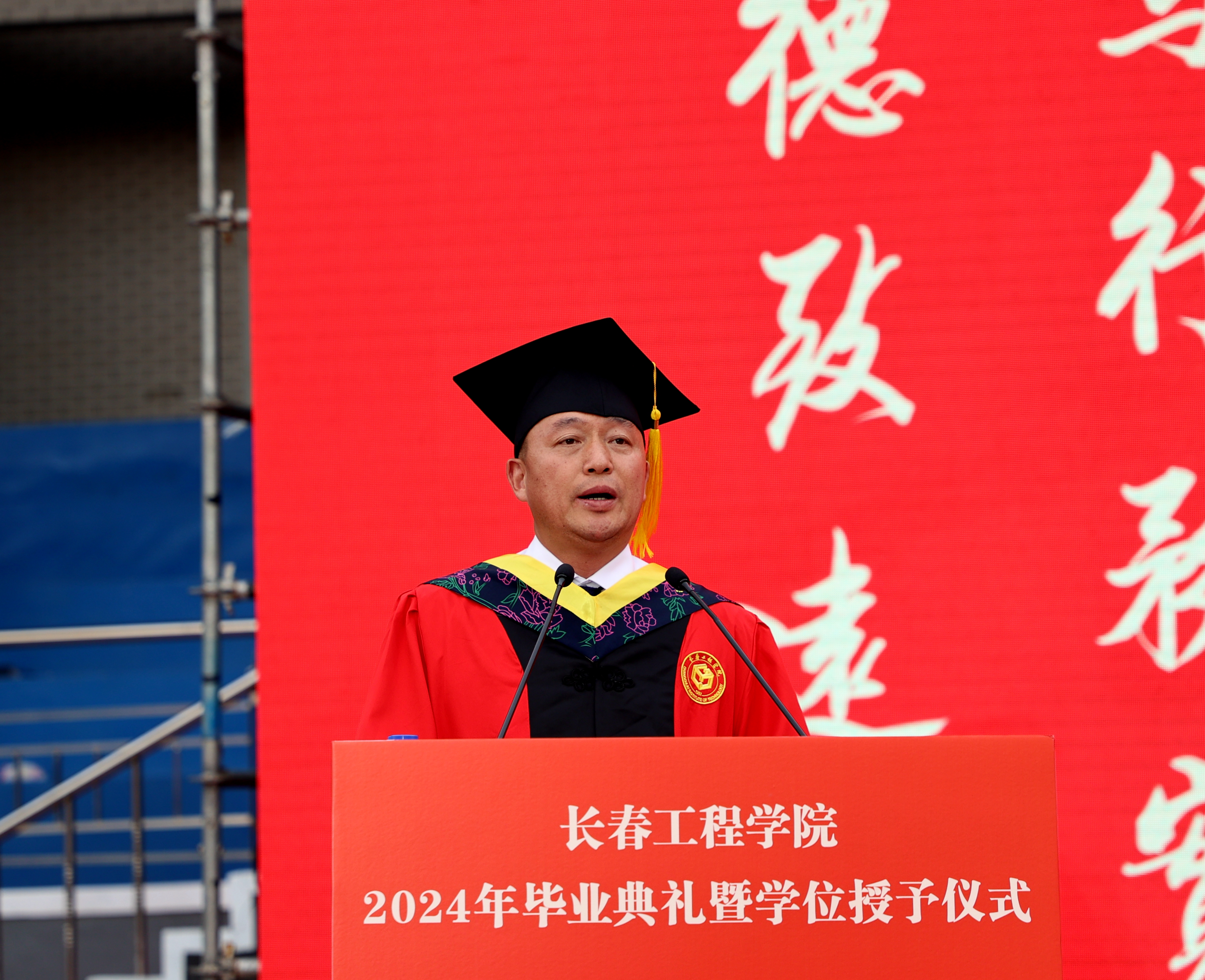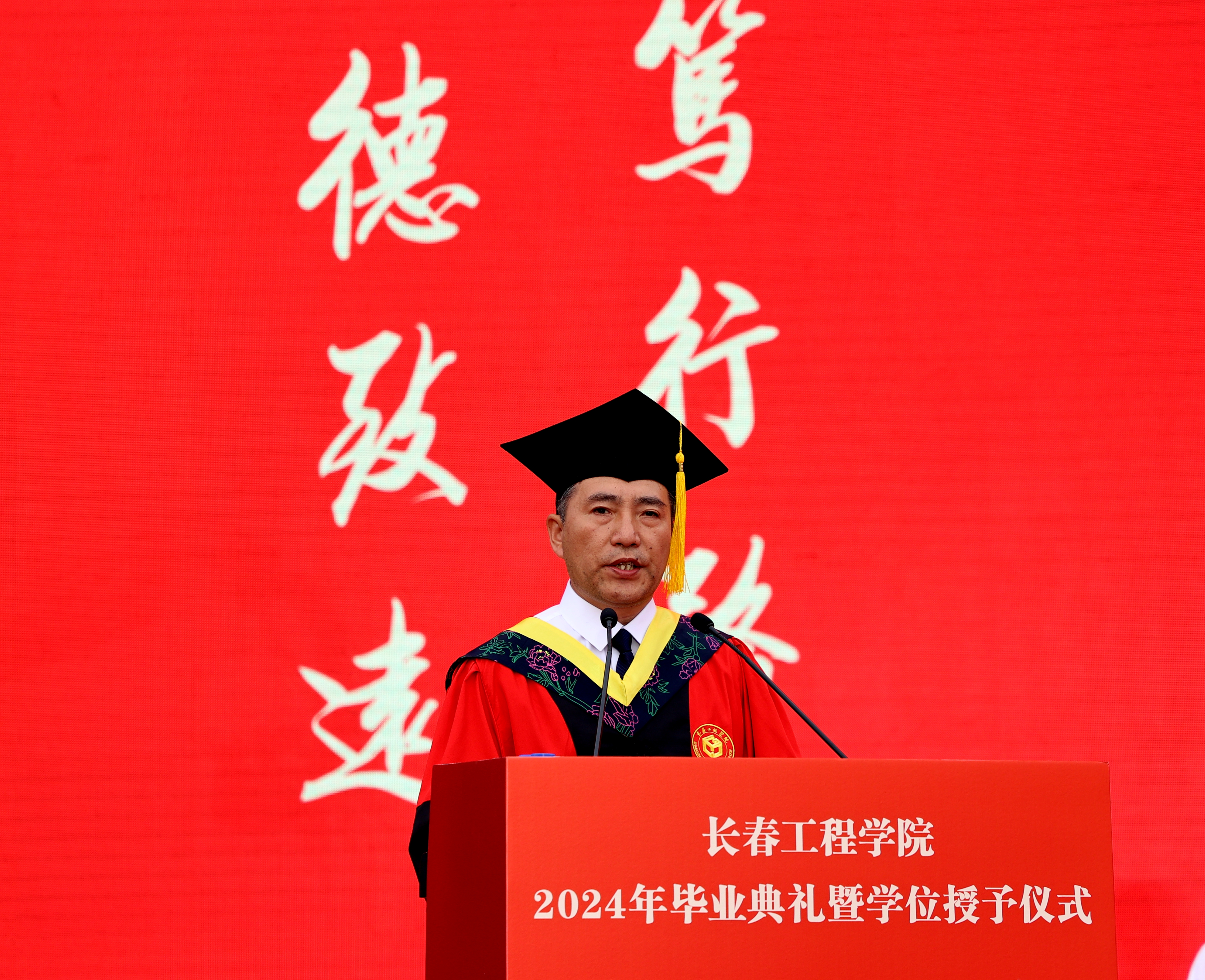 宋立军校长在典礼上讲话,他代表心博在线平台(中国)官网向圆满完成学业并顺利毕业的同学们致以热烈的祝贺。他殷殷叮嘱毕业生同学们,“一定要心怀感恩之情,感恩养育你们的父母,为了你们能够健康成长,学有所成,他们不辞辛劳,倾尽所有;感恩培育你们的恩师,为了你们练就过硬本领、筑牢专业之基,他们始终辛勤耕耘、无悔付出;感恩我们伟大的祖国,是祖国的繁荣昌盛,给予你们追逐梦想的强大动力和未来广阔的人生发展空间。”