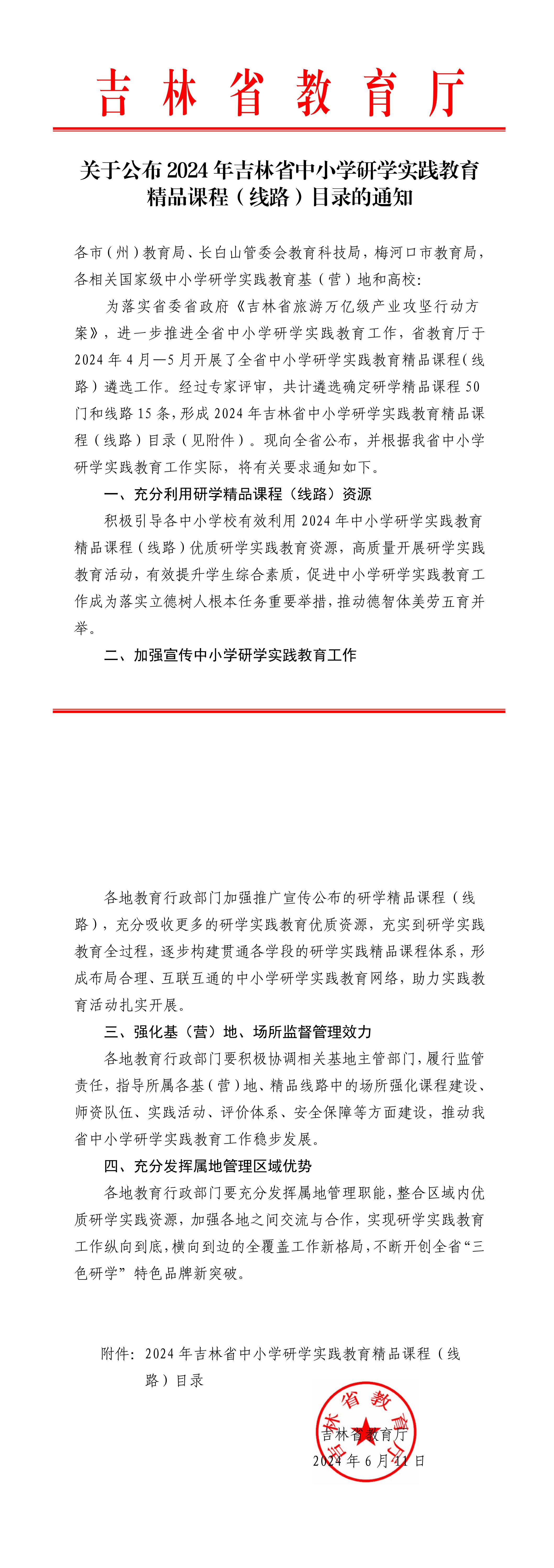 我校入选2024年吉林省中小学研学实践教育精品课程(线路)