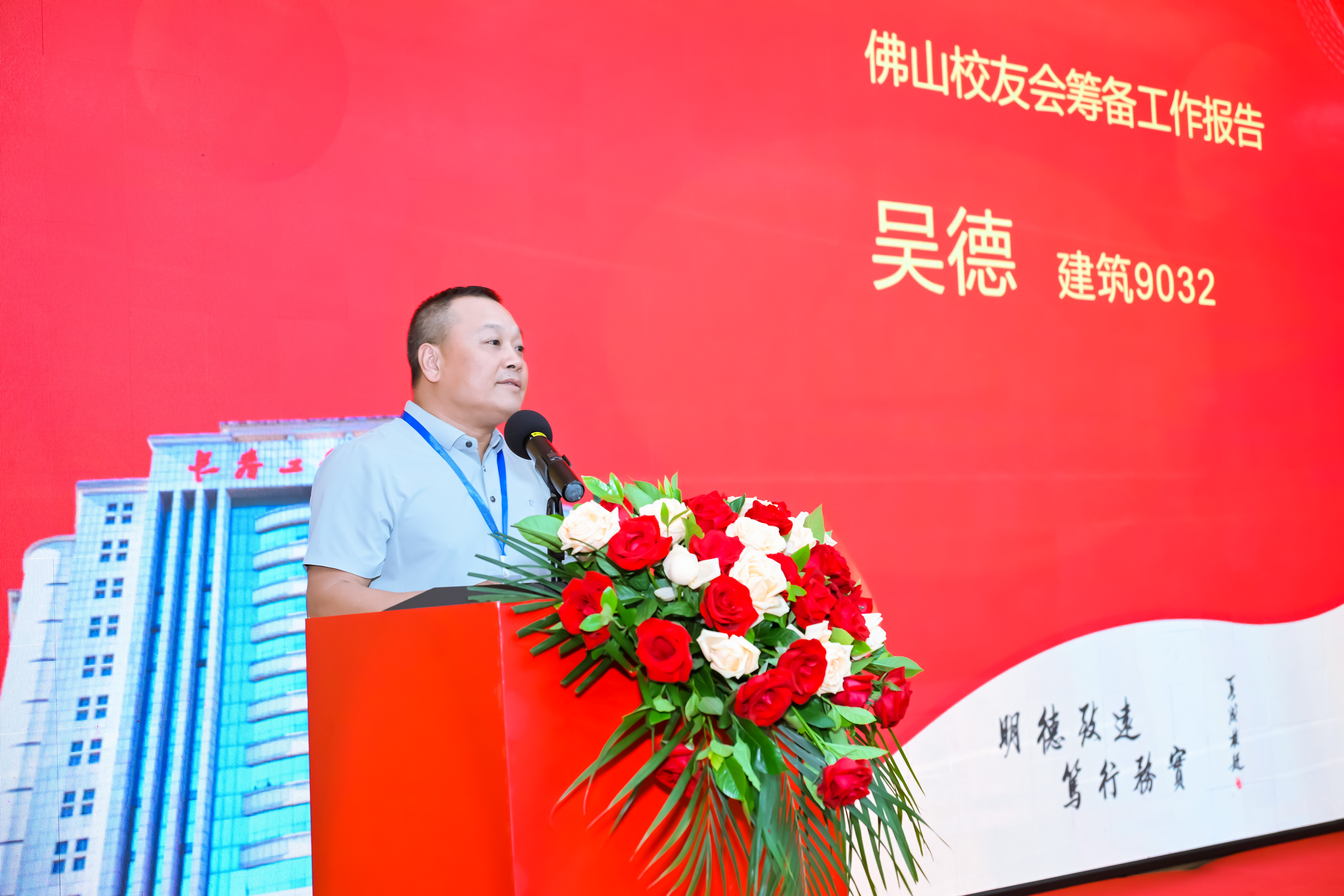 胡国勇校友代表第一届理事会讲话,他表示,当选会长深感荣幸,也深感责任重大。他表示,将带领佛山校友们永远铭记“明德致远,笃行务实”的校训,秉承“团结友爱,联系友情,互助互惠,为母校多作贡献”的宗旨,开展好校友会工作。他将为校友们搭建平台,促进校友之间的联系、交流和互助;同时,架起校友会与母校沟通联系的桥梁,激发校友热爱母校、宣传母校、建设母校的热情,积极为母校贡献佛山校友会的力量。