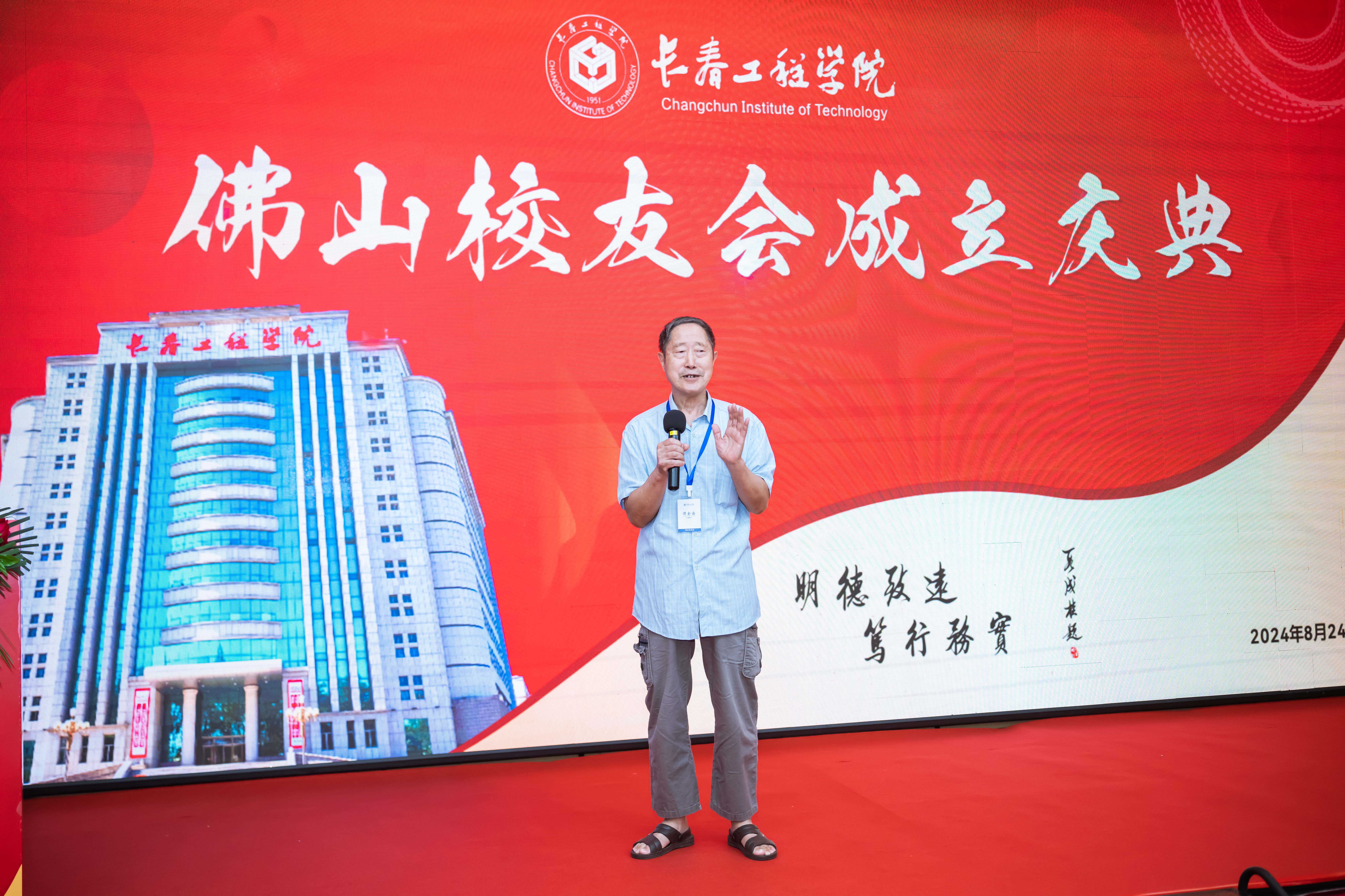 供热通风专业61级、耄耋之年的谭余海校友作为佛山校友代表讲话,他表达了能够亲自见证佛山校友会成立的喜悦之情、对母校的思念和感恩之情,他希望校友们不忘初心,继续努力奋斗,并祝愿校友们在工作岗位上屡创佳绩,祝愿母校的明天更加美好。