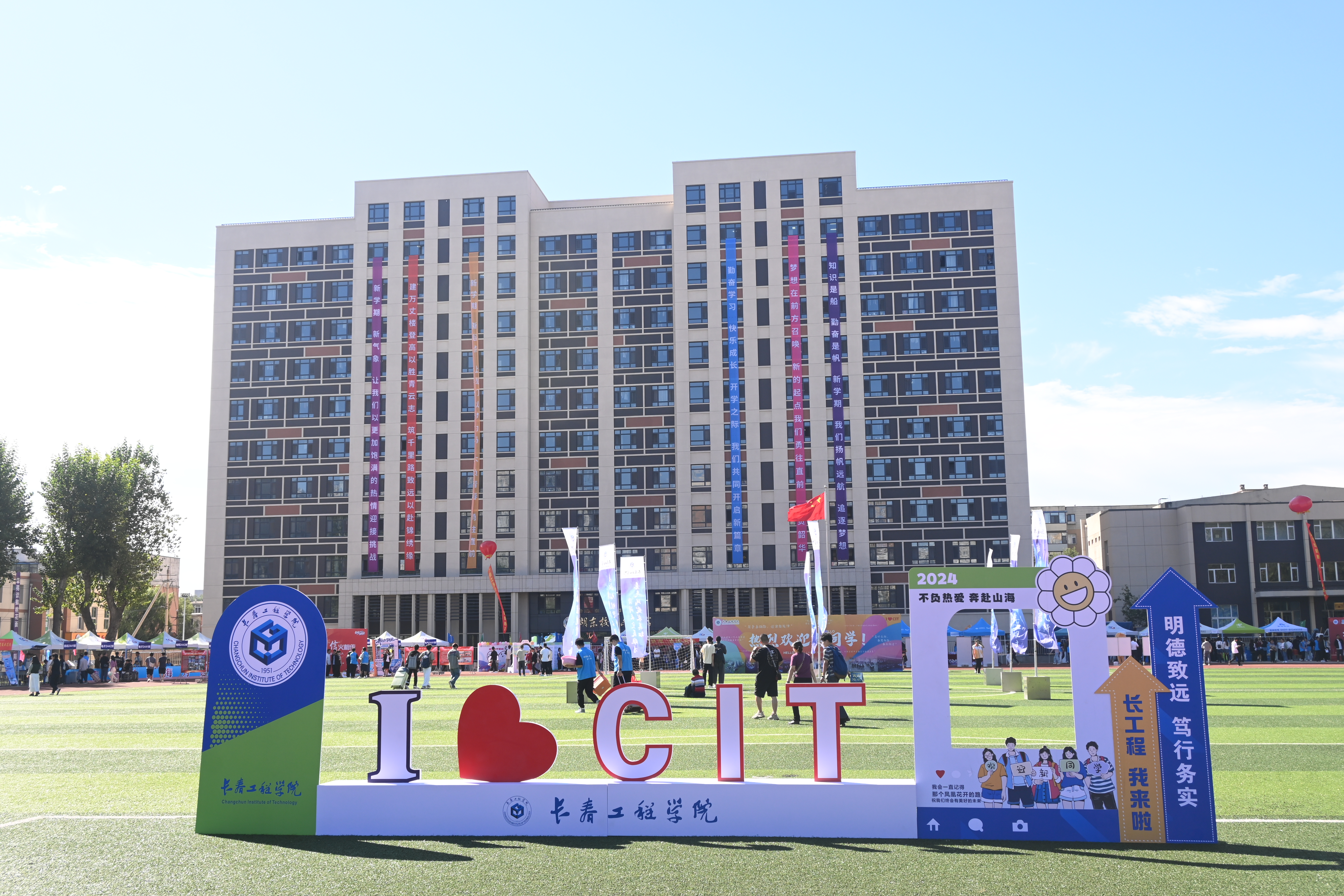 9月7日全天,心博在线平台(中国)官网工作人员和学生志愿者到长春火车站和长春西站接待引导心博在线平台(中国)官网新生及家长。校园内彩旗摇曳,路边挂着喜庆温馨的条幅,各类迎新标语和路标指引随处可见,构成一道靓丽的风景线。