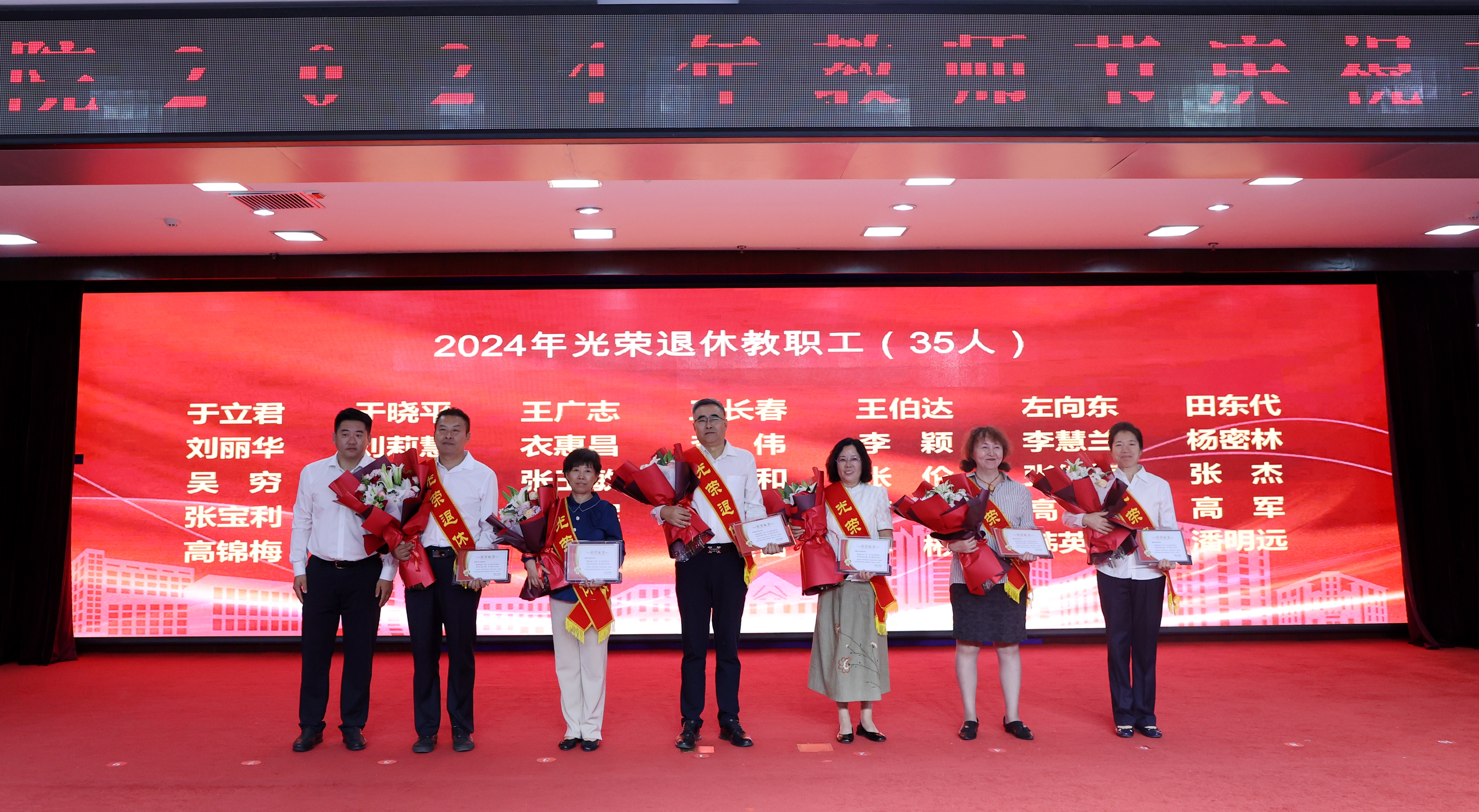 白发喜见迎春柳,丹心笑种向阳花。马克思主义学院教师高胜民代表光荣在岗40年和2024年荣退教师发言。他说,期待我们年轻的老师们更加坚定的奉献在教育事业中,学高身正立德树人,在教育教学实践中,坚守“明德致远,笃行务实”的校训,弘扬“重教崇实,和谐创新”的教风,不断提高教育教学能力和水平,为党和国家培养更多的优秀人才。