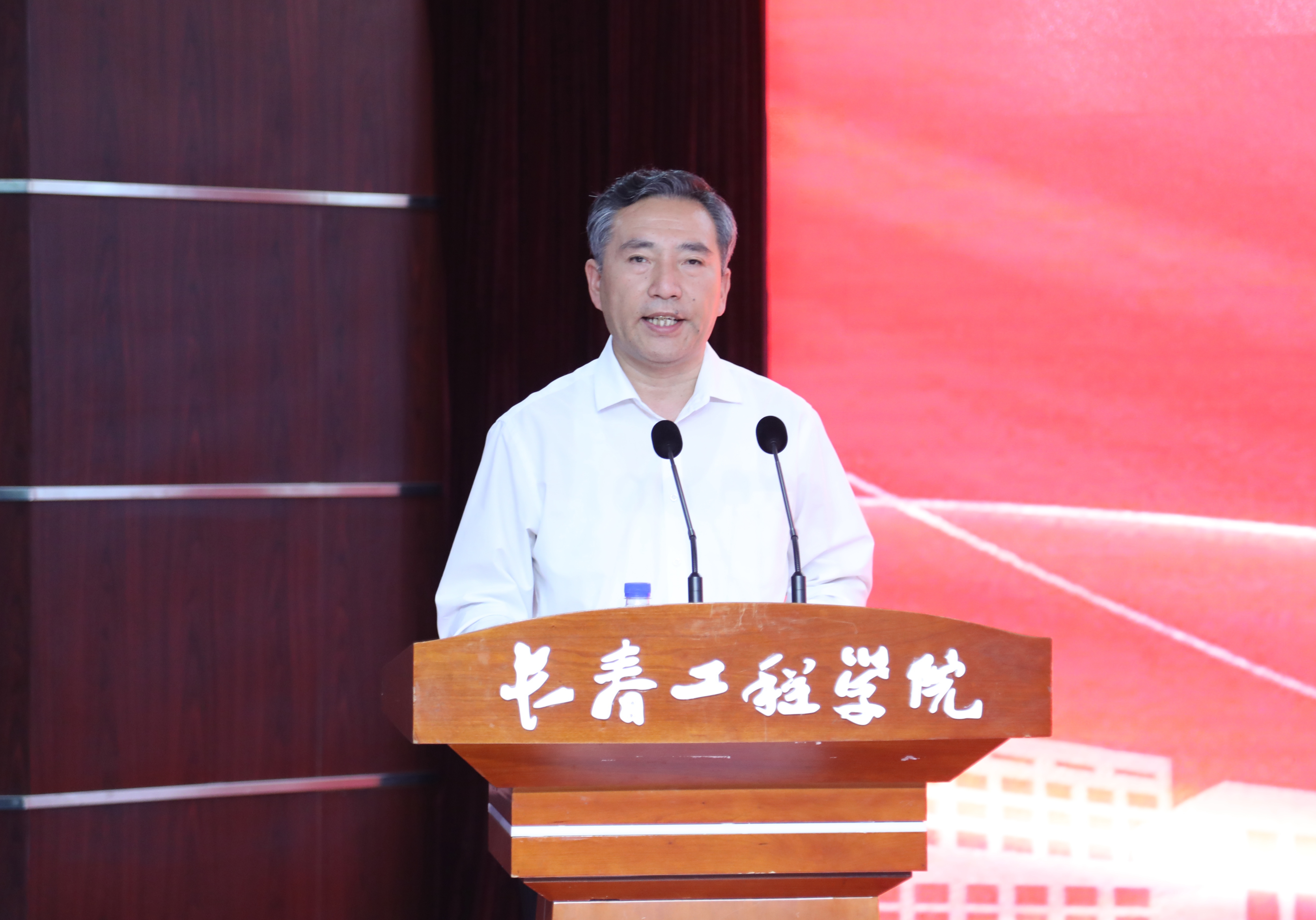 党委书记陈权在会上讲话,他希望,在创建国内一流应用型大学的前行路上,大家都能胸怀“国之大者”,牢记“为党育人、为国育才”的初心使命,躬身践行好新时代“教育家精神”,以创建“国内一流应用型大学”为己任,聚焦“更大申博”的历史性任务,始终铭记“为谁培养人、培养什么人、怎样培养人”这一根本问题,坚定不移用习近平新时代中国特色社会主义思想培养社会主义建设者和接班人,引导学生在为民族复兴、强国建设的不懈奋斗中放飞梦想、绽放青春,做政治坚定、志向高远的理想之师;始终把弘道、传道作为第一要务,胸怀天下、心系苍生、守正创新,遵循教育教学规律、人才成长规律和科学研究规律,深入探究传道授业解惑之道,引导学生以知识分子强烈的社会责任感和理想抱负“为天地立心、为生民立命、为往圣继绝学、为万世开太平”,做思想深邃、理念高明的弘道之师;始终把学习作为终身行动、把读书作为生活自觉,紧跟科技革命和产业变革潮流,主动拥抱数智时代,不断提升数字素养,更新教育教学理念,提高教书育人本领,投身工程一线关键技术研发,引导学生学有所进、研有所成、能有所用,做业务精湛、学问高深的创新之师;始终把修炼师德师风作为职业必修课,自觉涵养教育情怀,提升道德修养,完善人格品质,恪守职业良知,以德立身、以德治学、以德施教,做学生为学为事为人的示范,用师者大爱引导学生把握好人生方向,做行为世范、道德高尚的仁爱之师;始终用阳光乐观的心态去面对工作和生活,管理自我情绪,淬炼和谐身心,提升审美情趣,丰富感性体验,优雅气质礼仪,用平和的内心、真切的情感、坦诚的为人、淡泊的追求,传递人间的真善美,激昂学生的精气神,以自身幸福的从教生活引导学生奠基创造幸福的人生,做洒脱通达、气质高雅的幸福之师。
