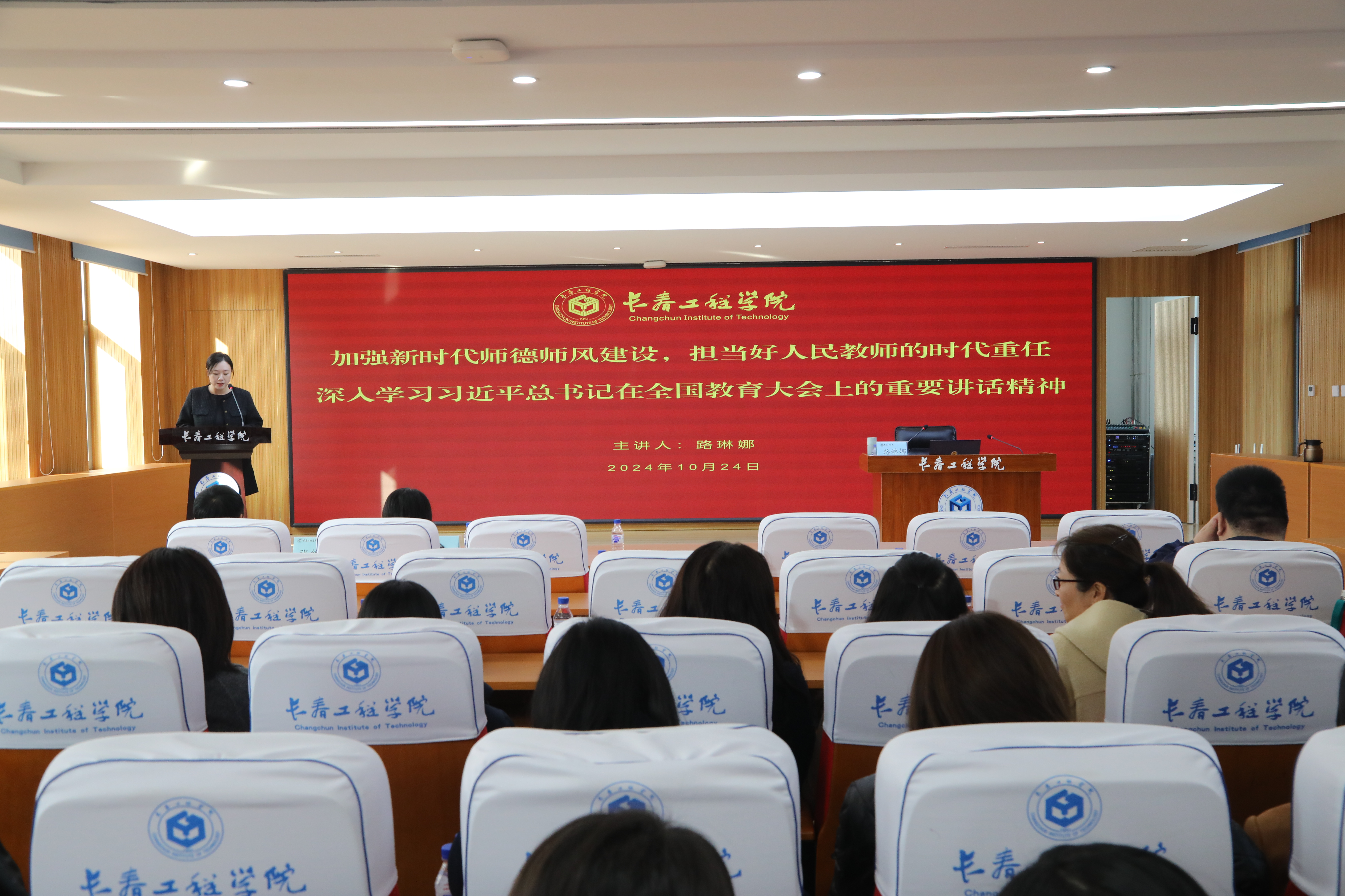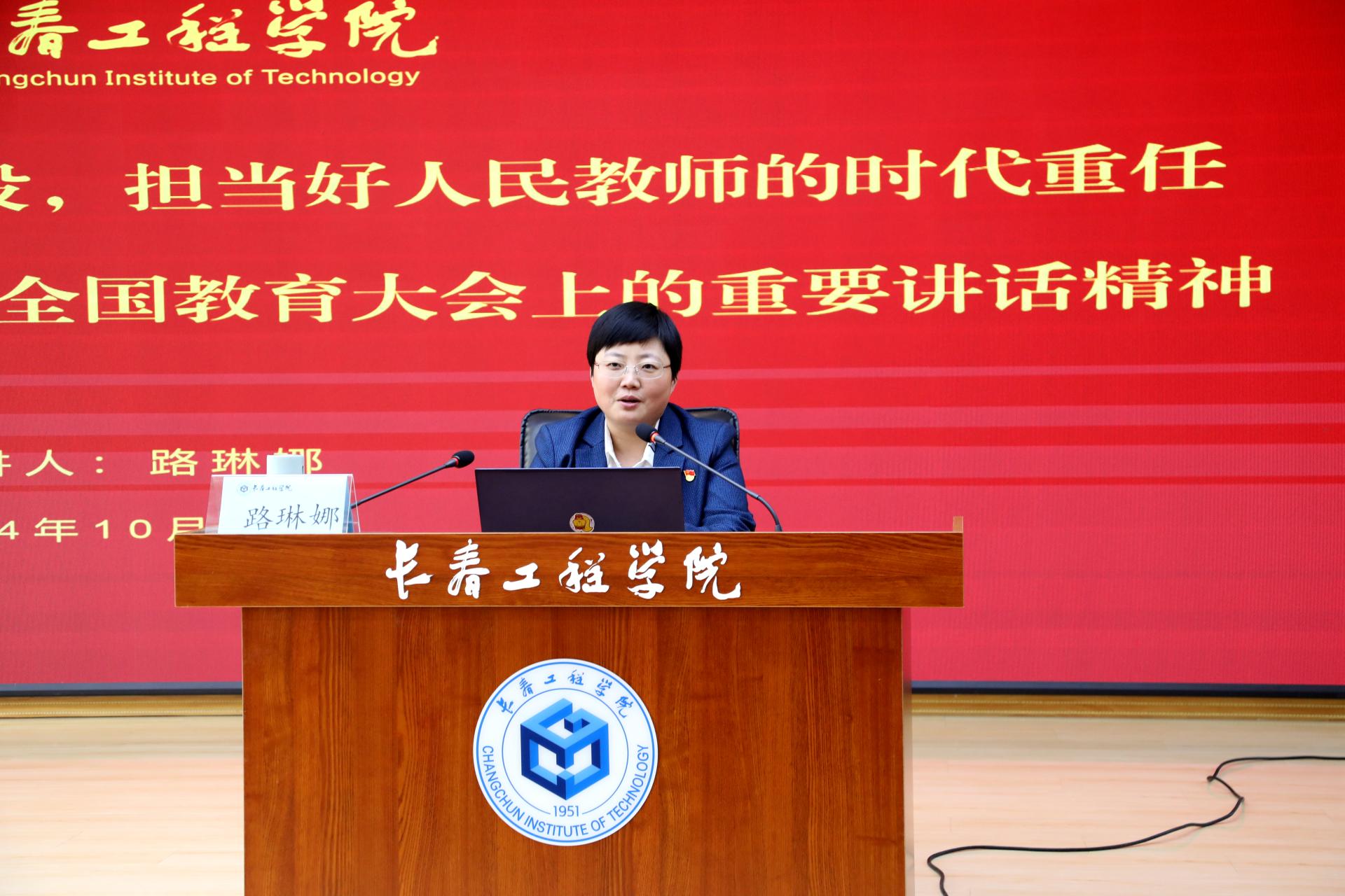 10月24日,由党委学生工作部、党委教师工作部主办的学习全国教育大会精神专题培训在第一报告厅召开。会议邀请到中共长春市委党校哲学教研部副教授、吉林省青年讲师团成员路琳娜,作题为《加强新时代师德师风建设,担当好人民教师的时代重任——深入学习习近平总书记在全国教育大会上的重要讲话精神》的专题培训,心博在线平台(中国)官网专兼职辅导员、班主任及新入职教师参加了此次培训。