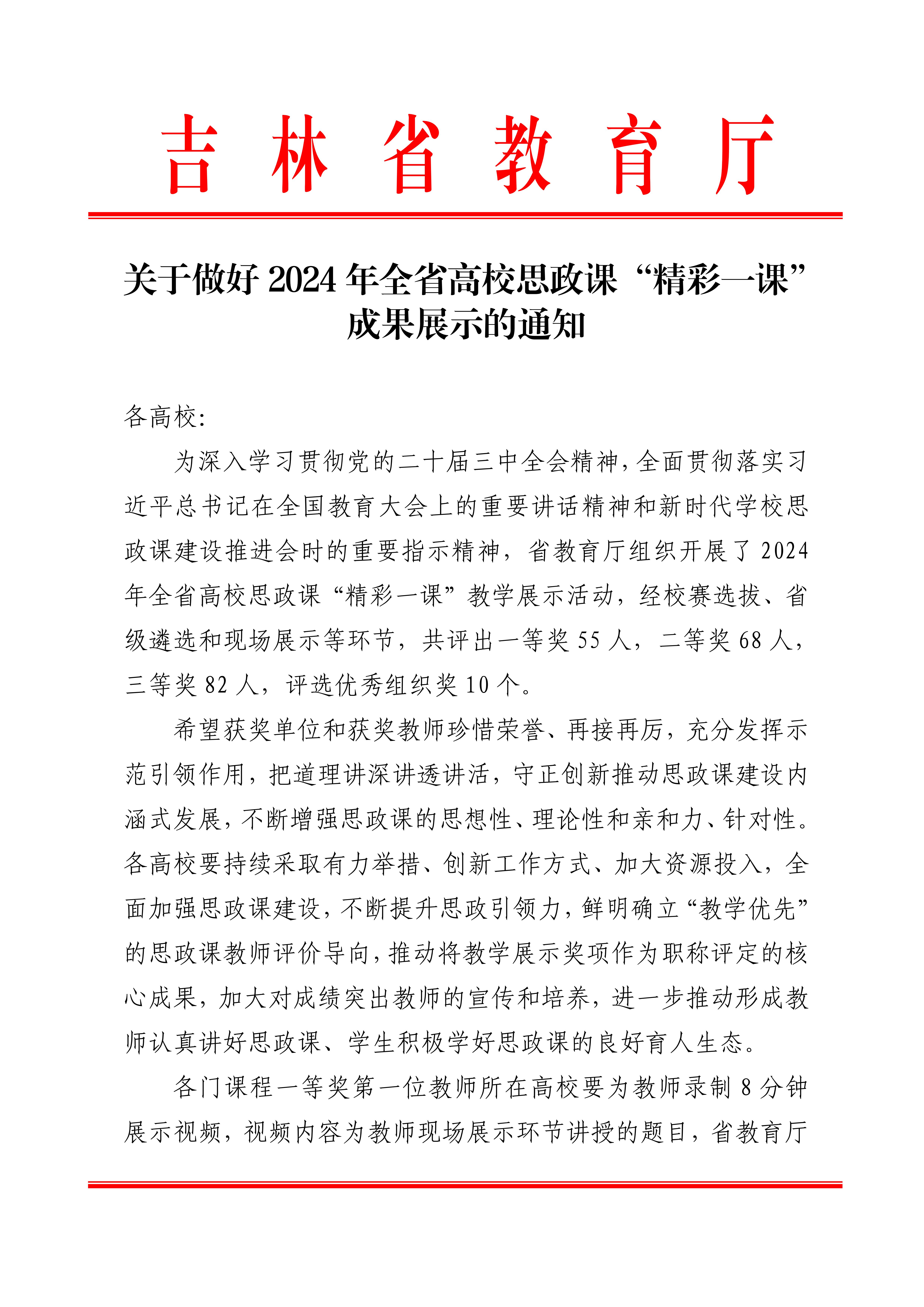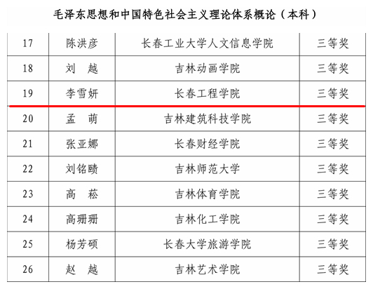 近日,吉林省教育厅发布了2024 年全省高校思政课“精彩一课”教学展示获奖教师和单位名单,我校教师王欣欣获《中国近现代史纲要》组一等奖,李雪妍、田雨泽分别获《毛泽东思想和中国特色社会主义理论体系概论》《形势与政策》组三等奖。
