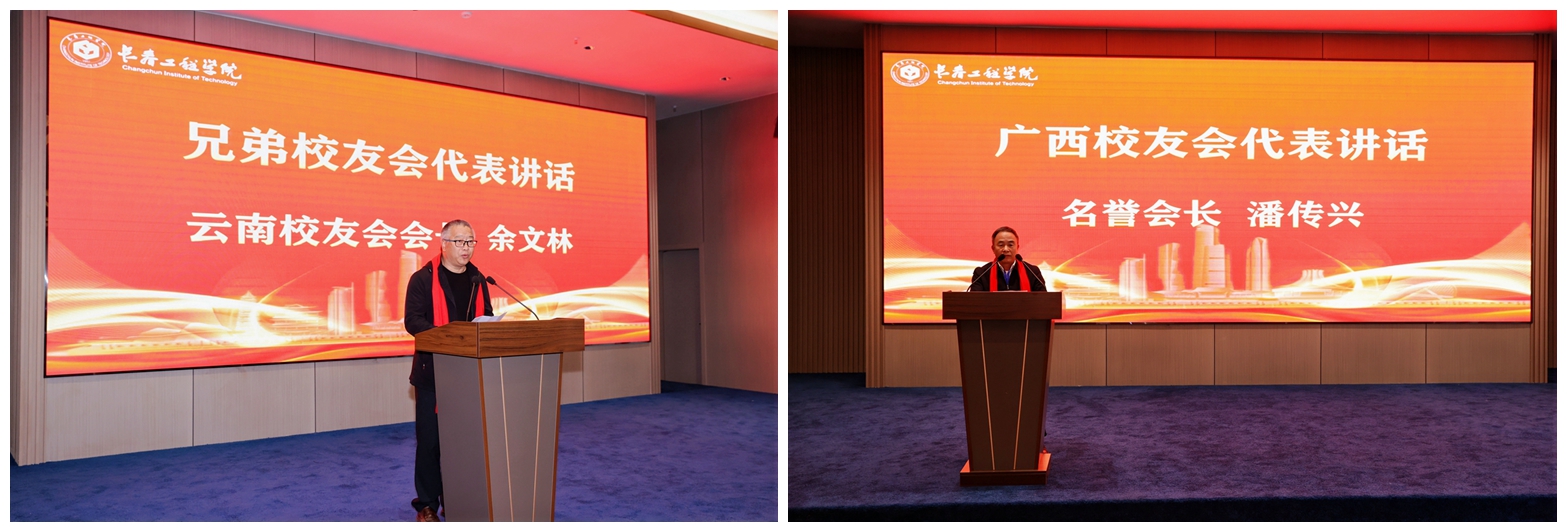 会上,云南校友会代表余文林发言,他高度肯定了广西校友会在团结校友、服务校友、回馈母校等方面取得的成绩。广西校友会代表潘传兴发言,他希望,广大校友一直践行母校校训,与民族复兴、国家发展同频共振,谱写新华章。