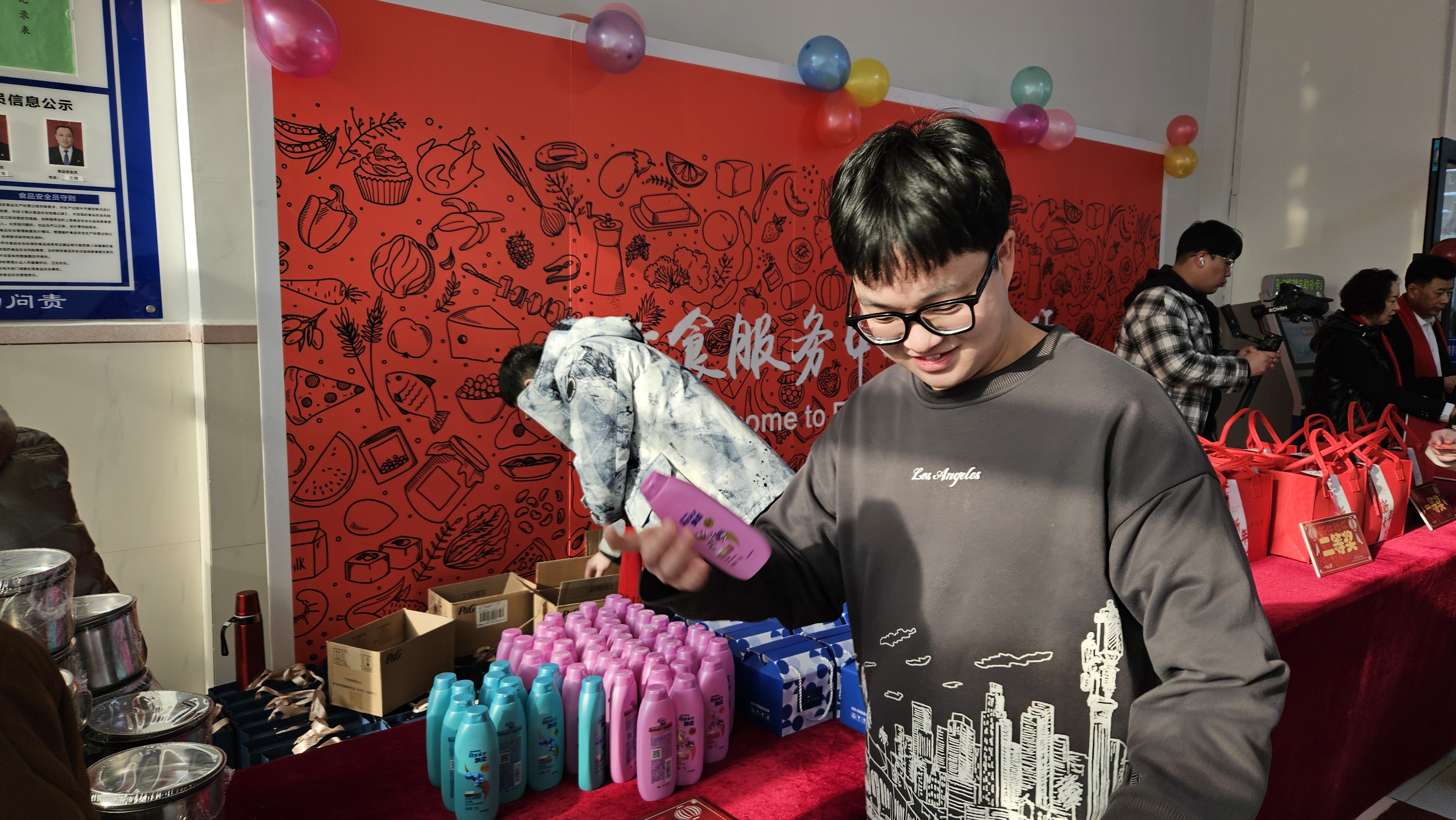 活动现场,同学们在饮食服务中心工作人员的引导下,有序领取奖券,现场抽奖并领取奖品。饮食服务中心为同学们精心准备了蓝牙耳机、文创马克杯、洗发水等近2400份精美奖品,现场高潮迭起,人群中不时发出欢笑声和惊叹声,变成了一片欢乐的海洋。