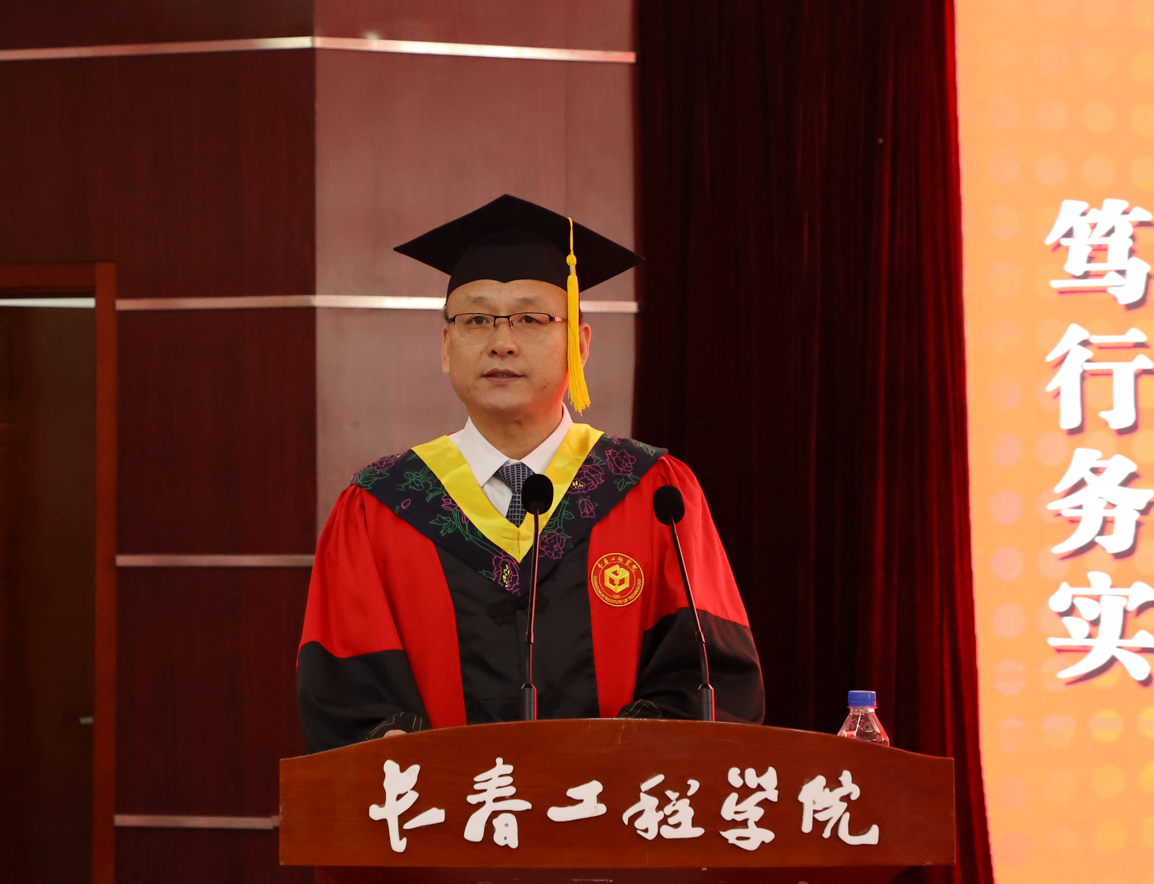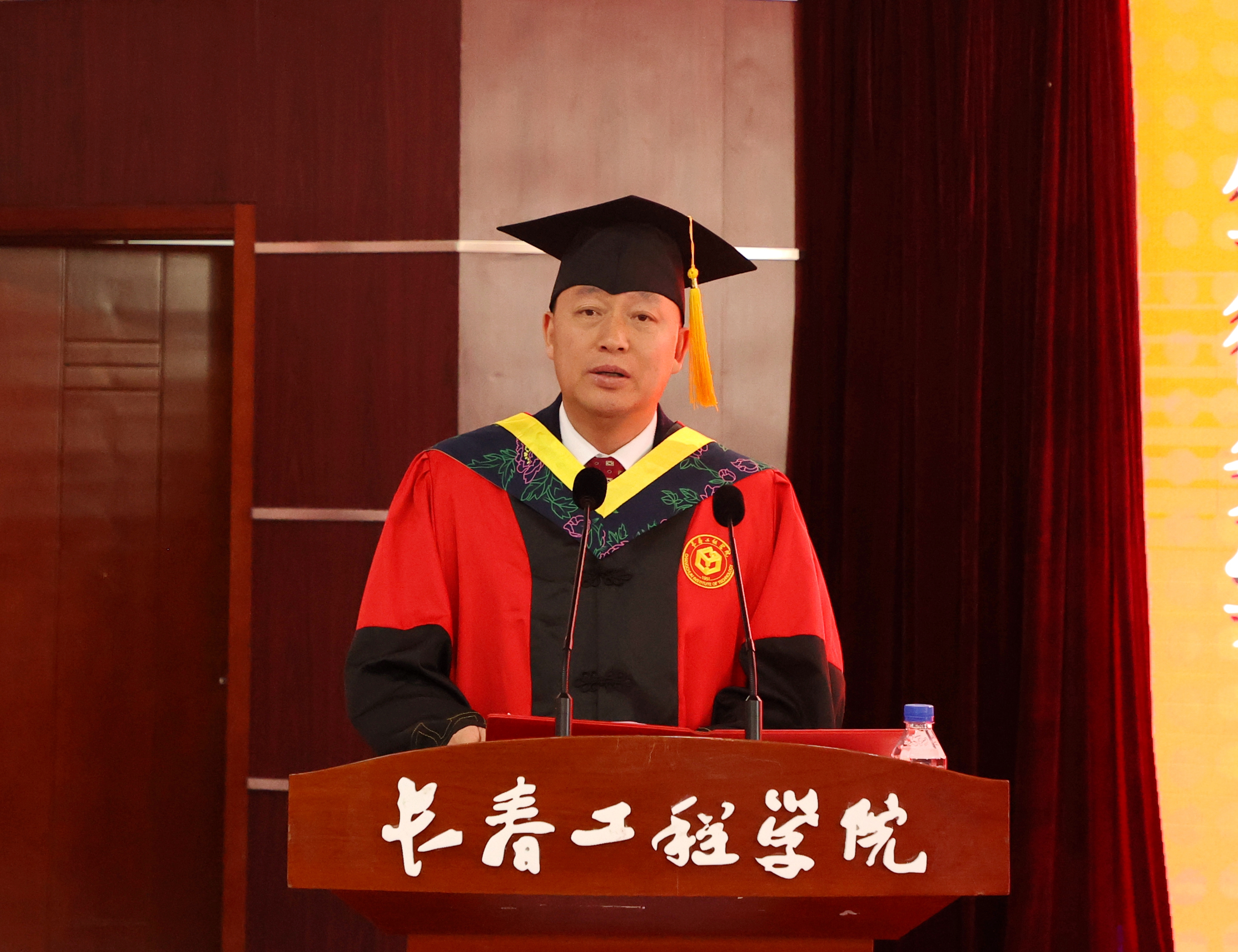 宋立军校长在讲话中饱含深情地寄语毕业生,并对同学们提出三点希望:一是勇于面对挑战,不负青春韶华。每个人,特别是年轻的同学们未来都有自己的发展机遇,但也要面对生活的挑战,都要在自己所处的时代大背景下,创造属于自己的人生阅历,书写属于自己的人生意义。二是希望同学们走上工作岗位后,继续传承长工程人“工程报国、矢志不渝”的精神特质,肩负时代使命、勤勉敬业,将个人成长奋斗与国家事业发展紧密相连,立志成为一名卓越的工程师和卓越的工程管理人才。三是直面科技创新,主动应变求变。期待同学们以自己的学科特长为舟,插上人工智能等新技术的风帆,在科技浪潮汹涌澎湃的时代,做勇敢的冲浪者,在广袤的祖国大地上镌刻出属于长工程人的辉煌印记。
