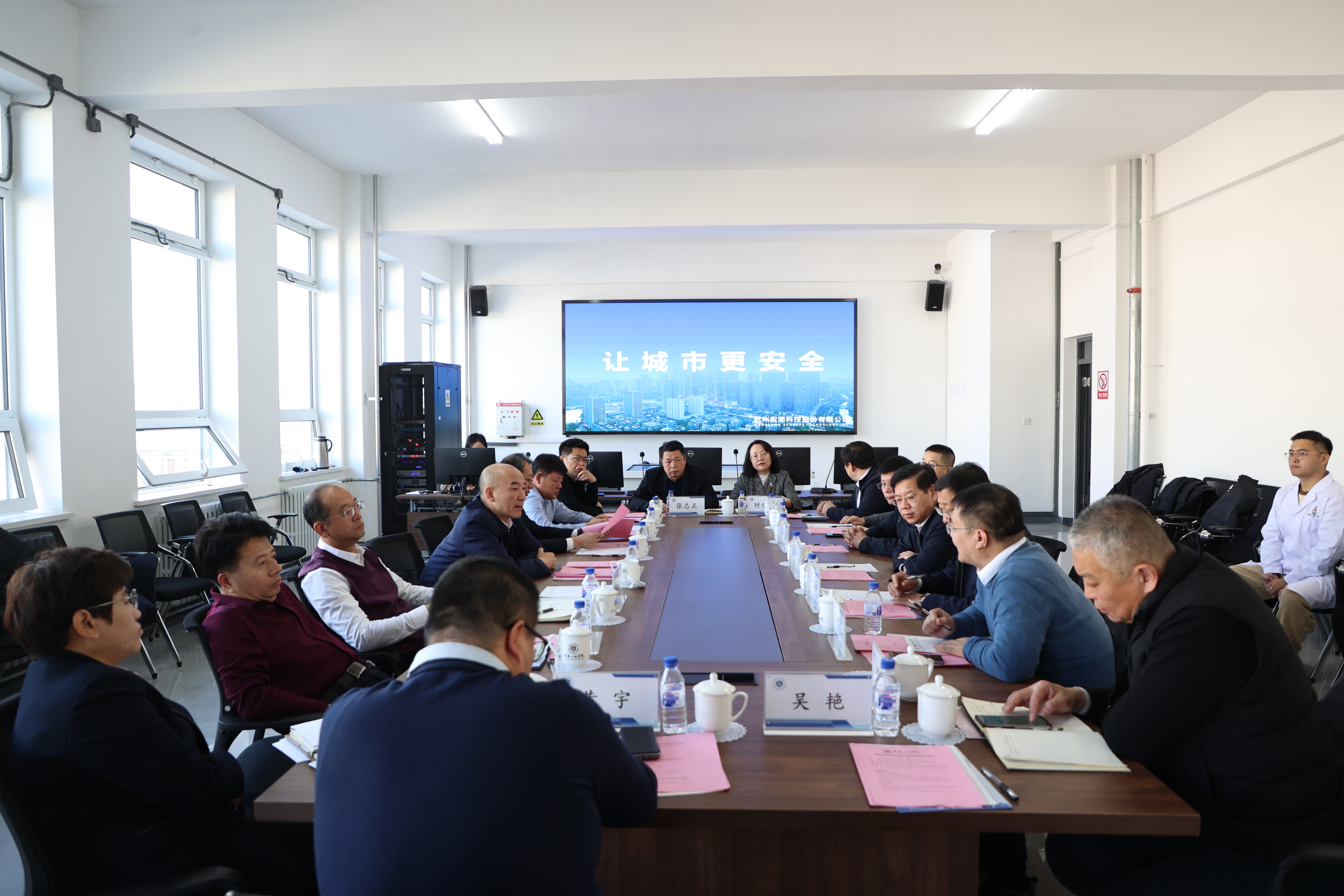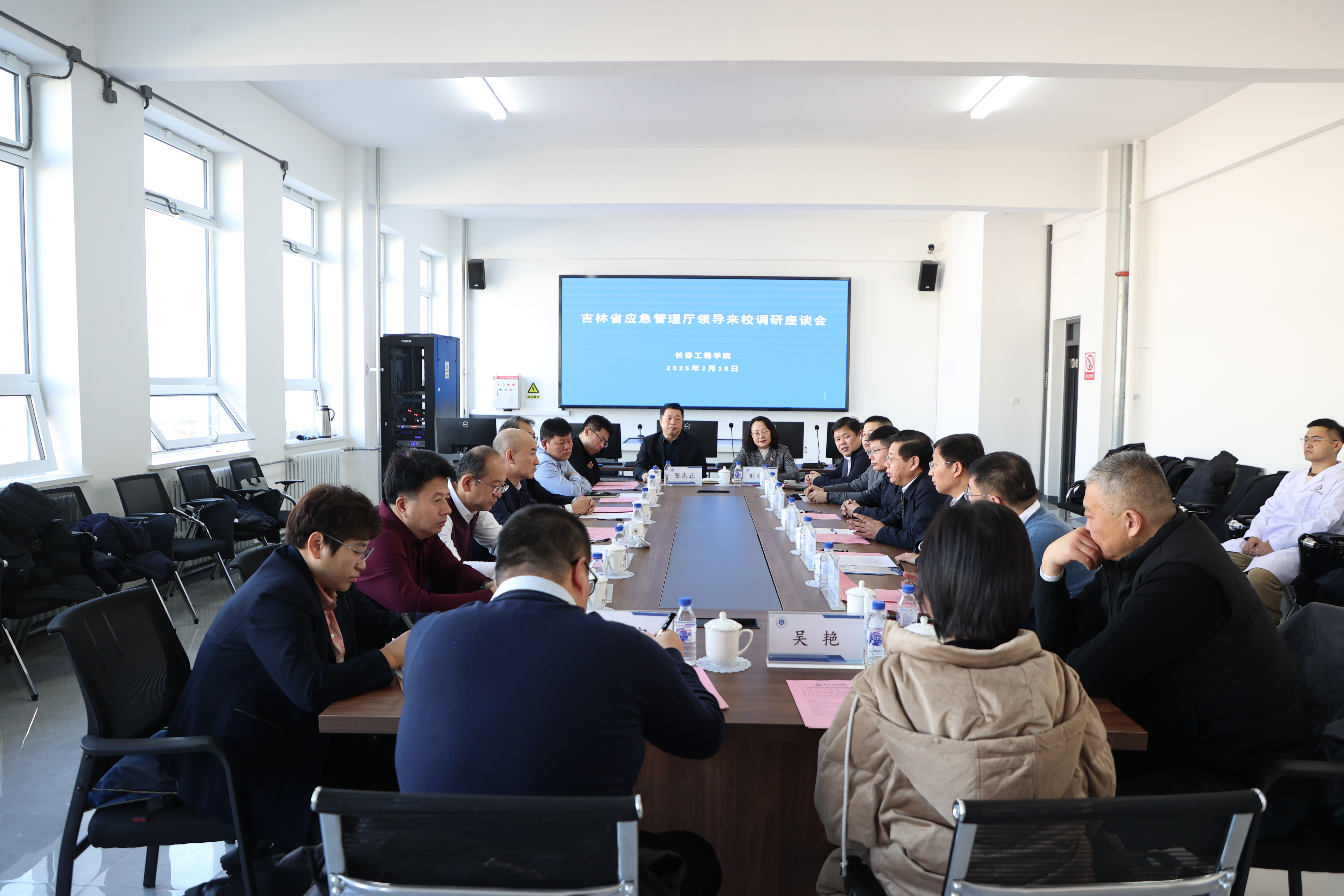 2月18日,吉林省应急管理厅厅长吕海强一行到我校吉林应急管理学院调研交流,产学研合作单位杭州叙简科技股份有限公司董事长金国庆一行同时参加会议。学校党委书记陈权、校长宋立军、副校长尹志刚参加座谈。座谈会由校党委书记陈权主持。