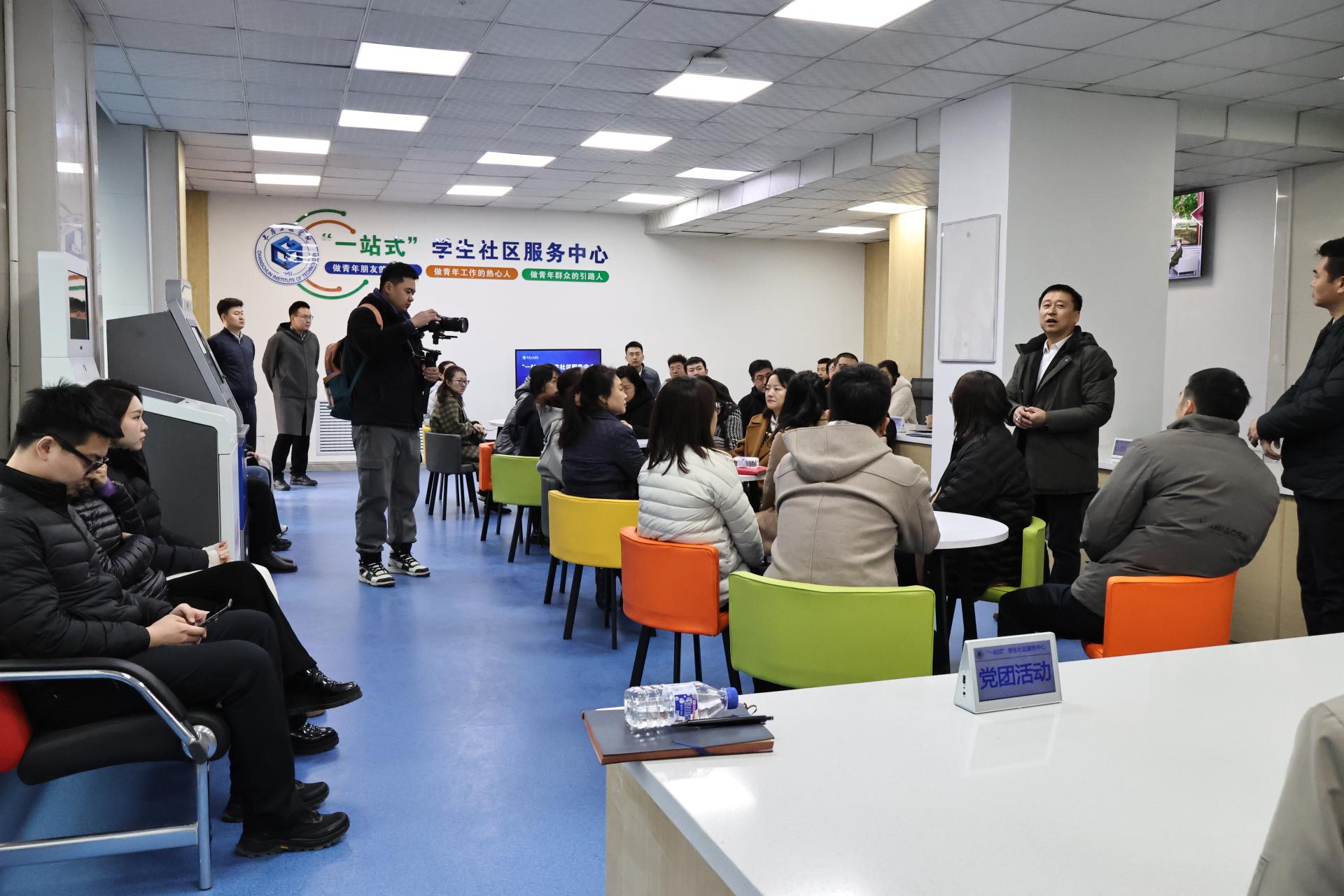 会议结束后,全体辅导员前往“‘一站式’学生社区服务中心”实地走访,并针对新增业务开展了集中培训学习。