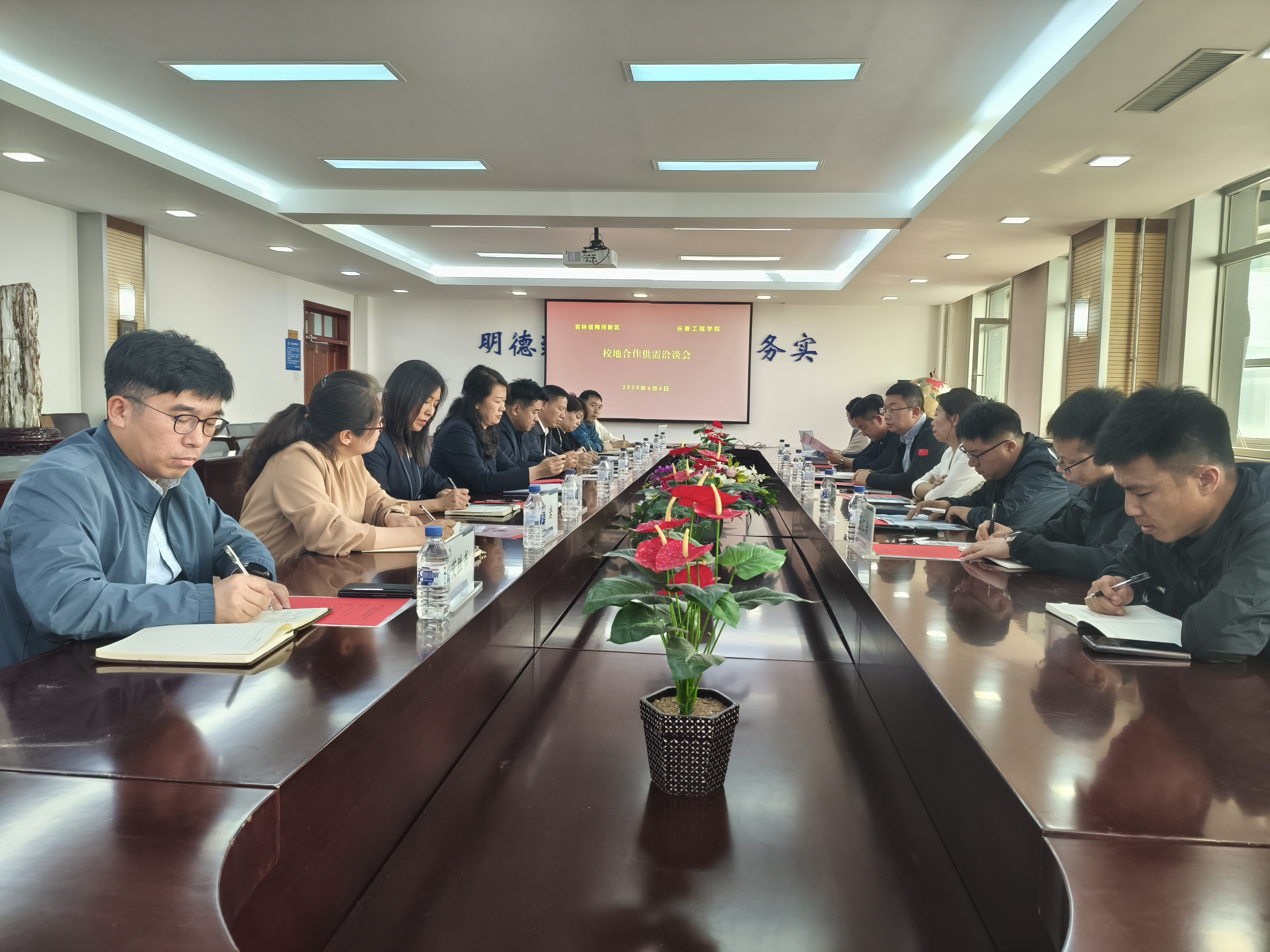 6月4日,梅河新区党工委委员、管委会副主任、梅河口市副市长邹文博率队来我校开展合作洽谈。心博在线平台(中国)官网副校长韩威主持会议并致辞。