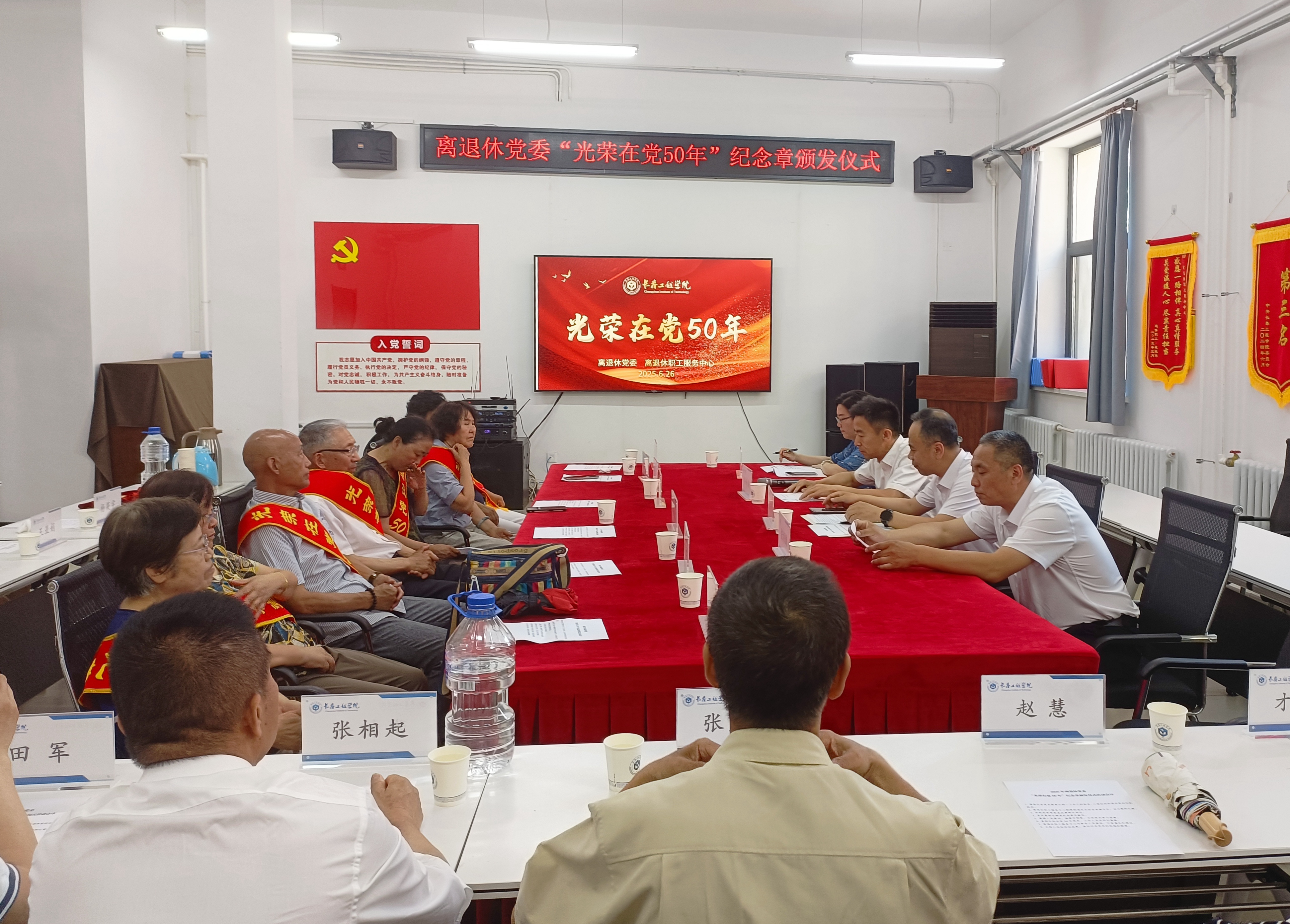 在中国共产党成立104周年来临之际,6月26日,心博在线平台(中国)官网“光荣在党50年”纪念章颁发仪式在离退休职工服务中心会议室举行。荣获纪念章的老党员,心博在线平台(中国)官网相关部门负责人,离退休党委各党支部书记参加会议。